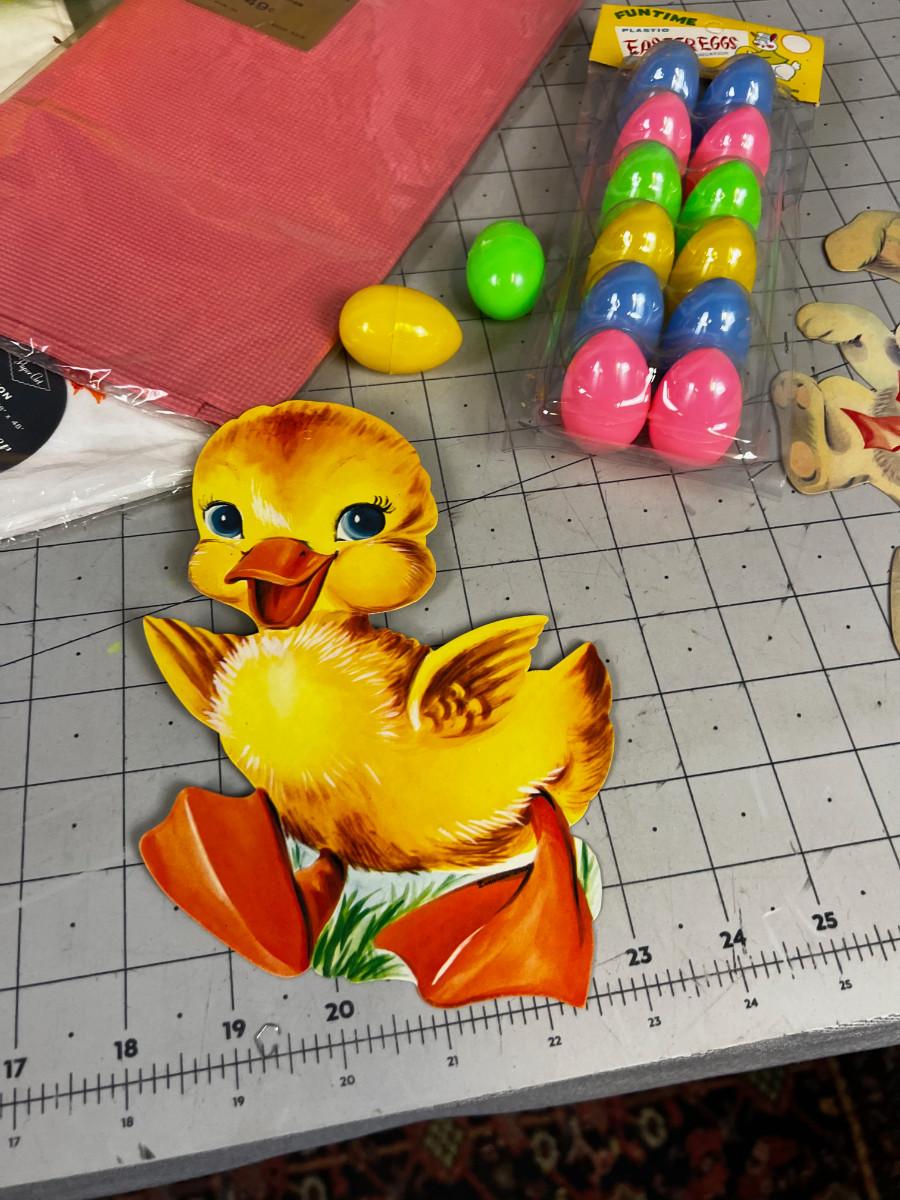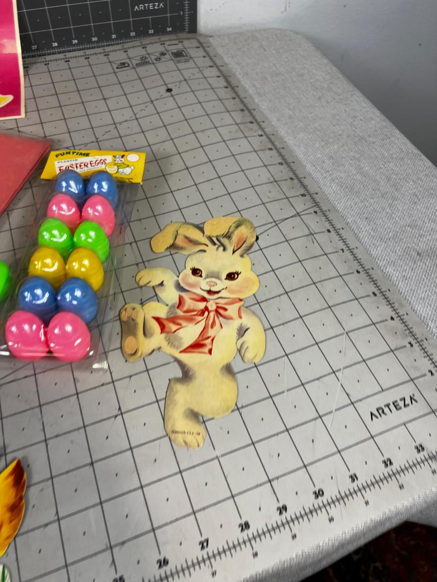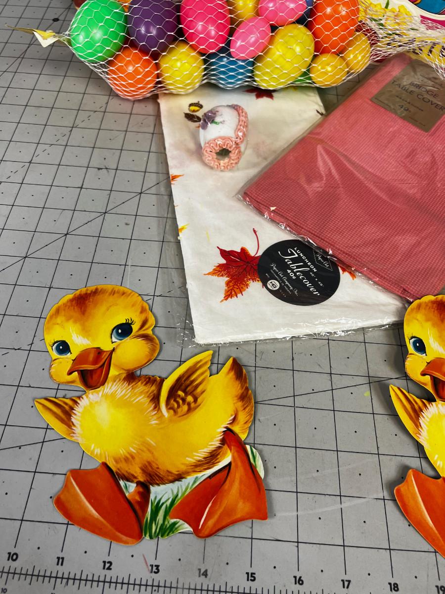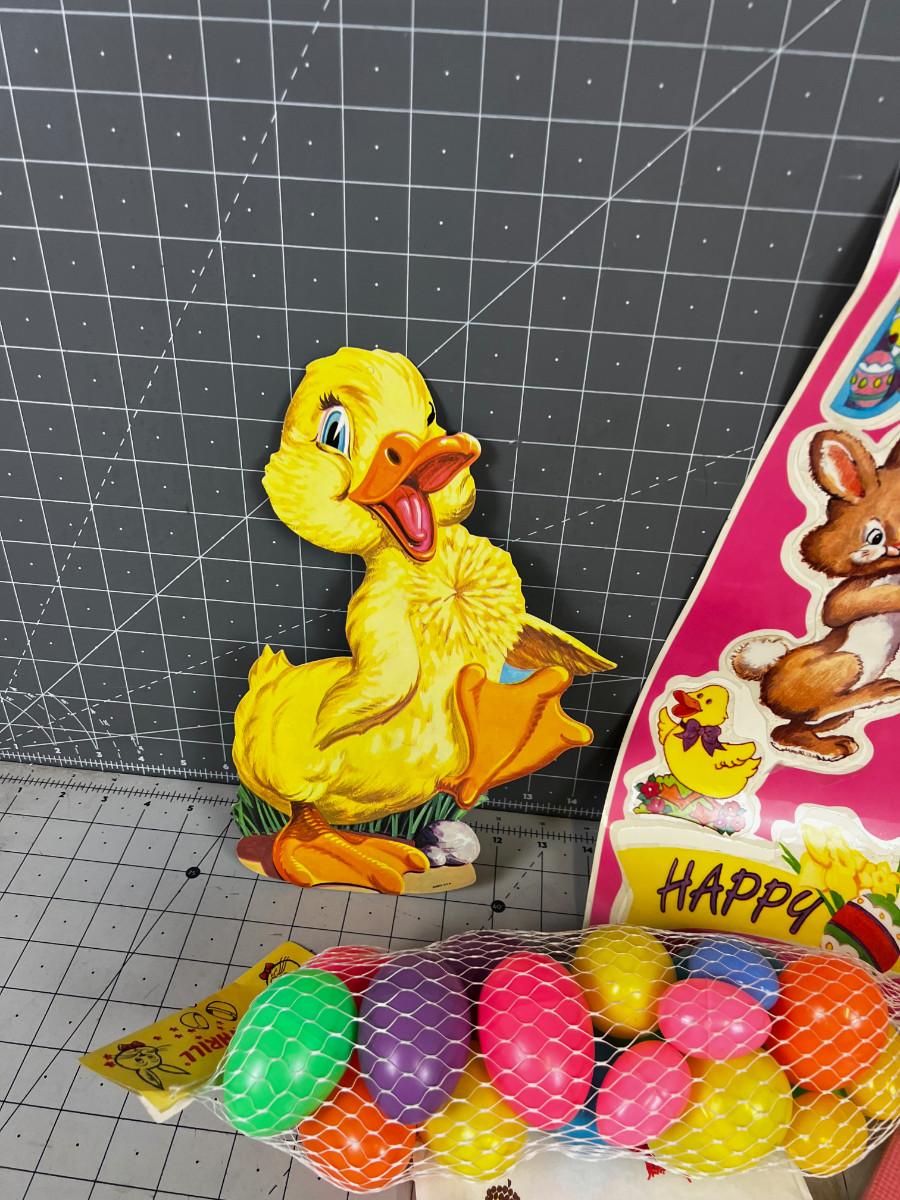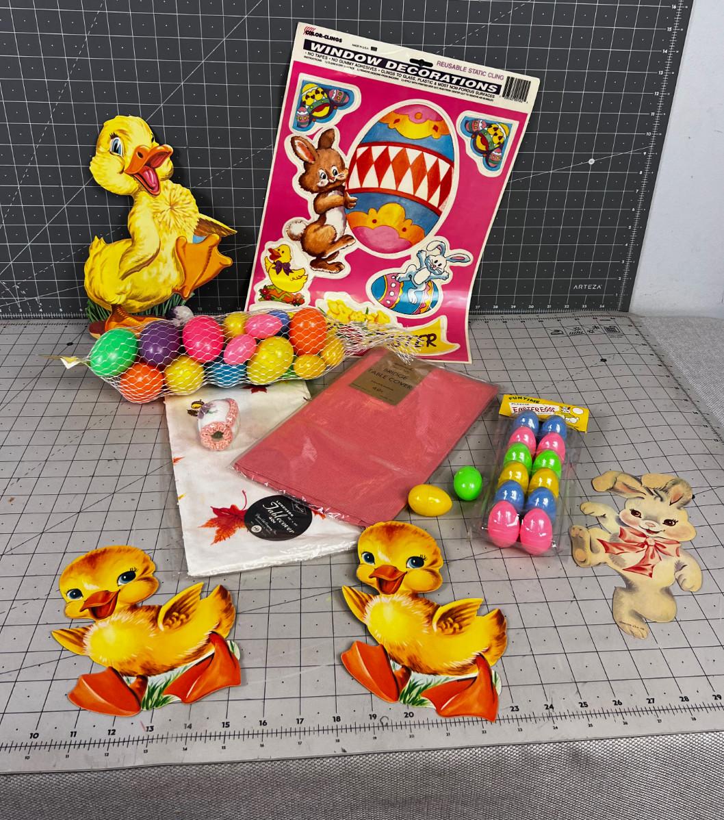 Vintage Easter Lot of Décor': Eggs, Cut outs, Window and Table Cloth