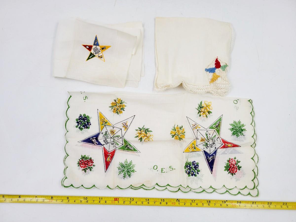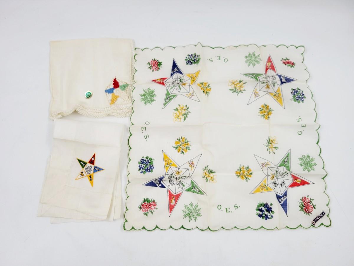 VINTAGE EASTERN STAR HANKIES -  MASONIC- 3 PC