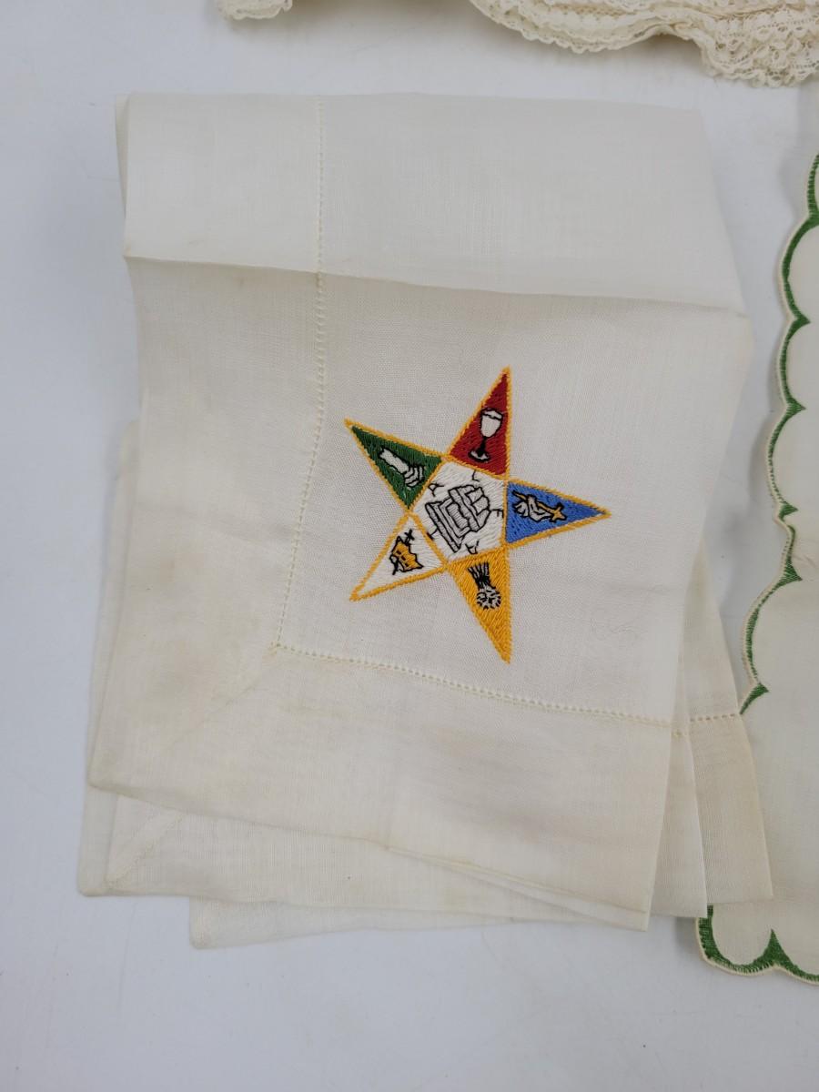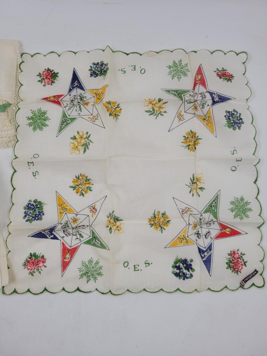 VINTAGE EASTERN STAR HANKIES - MASONIC- 3 PC