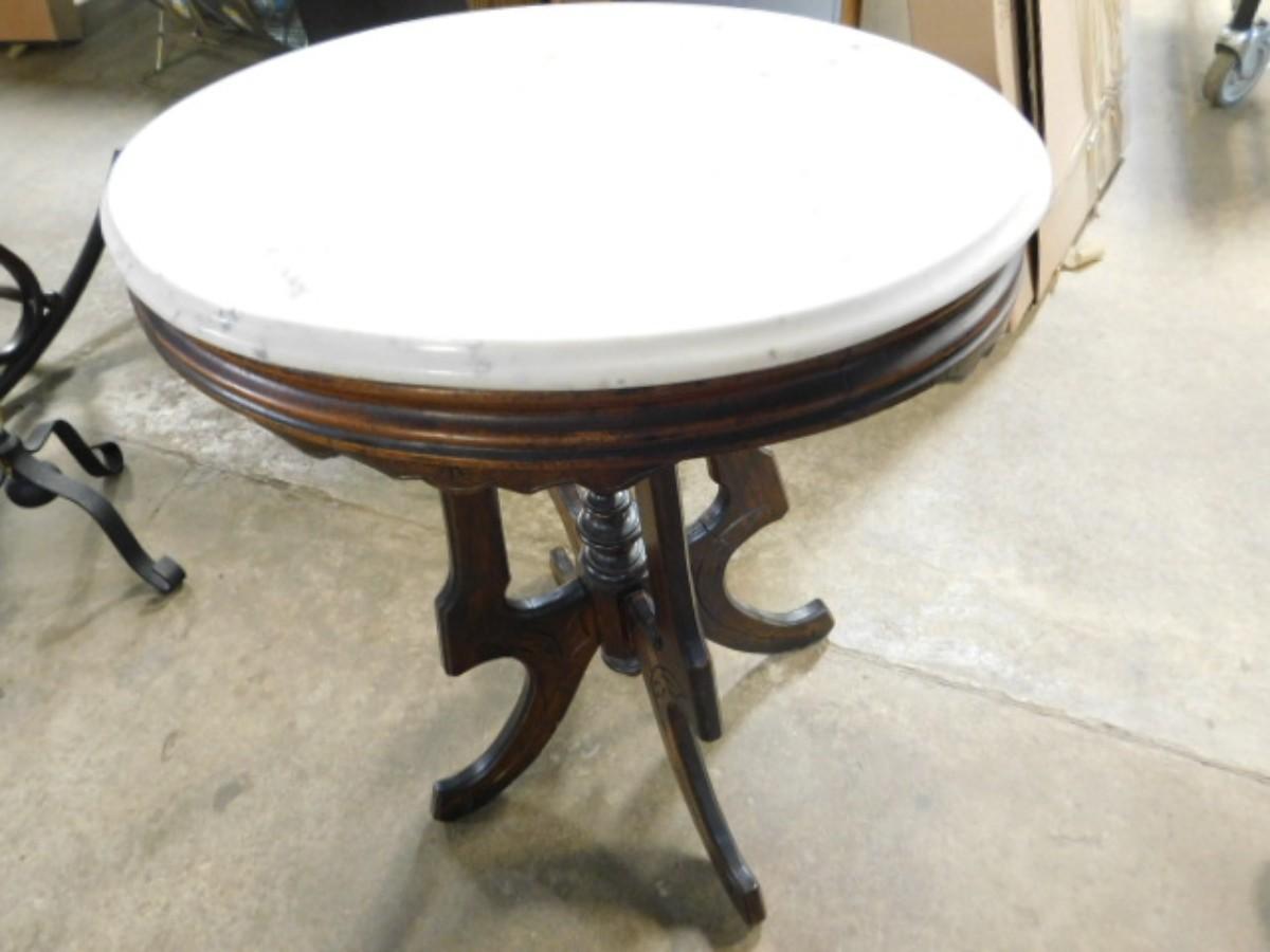 Vintage Eastlake Mable Top Table Oval one side of marble top has a chip as shown