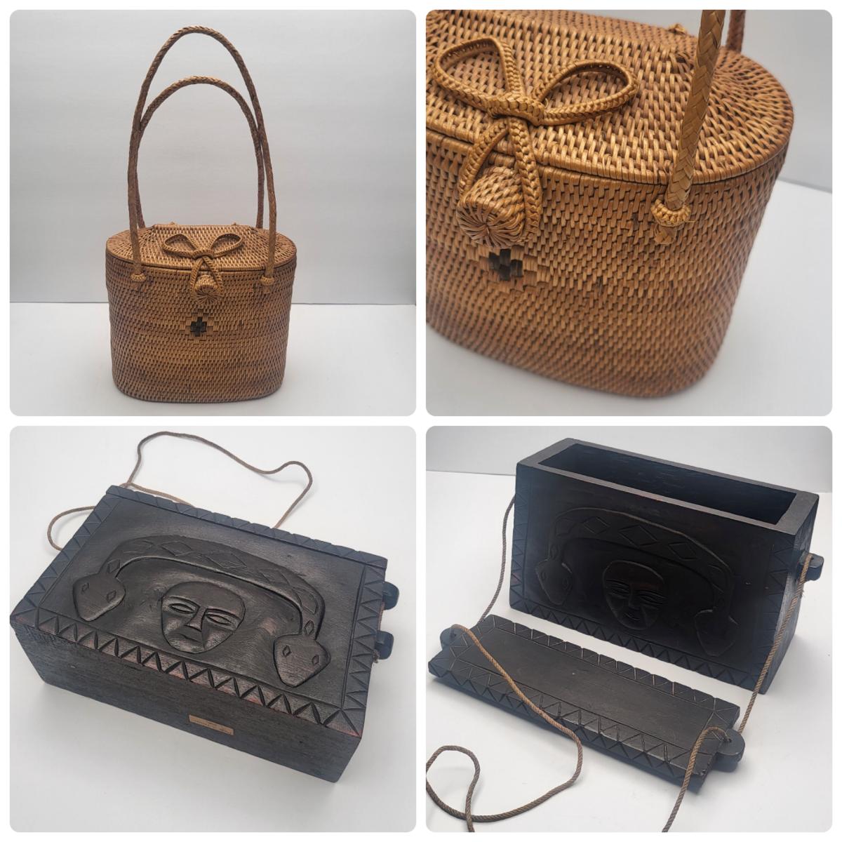 Vintage Seibu Ebony Wooden Box & Nantucket Rattan Purse