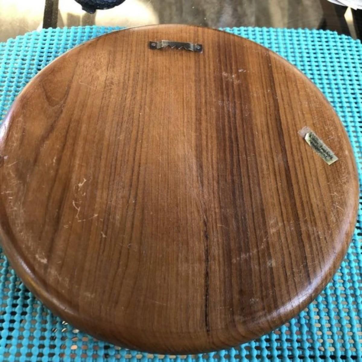 Vintage Echtes Teakholz Handgeformt Hand Painted Wooden Plaque 10" Diameter from an Estate. $15 DOMESTIC SHIPPING.