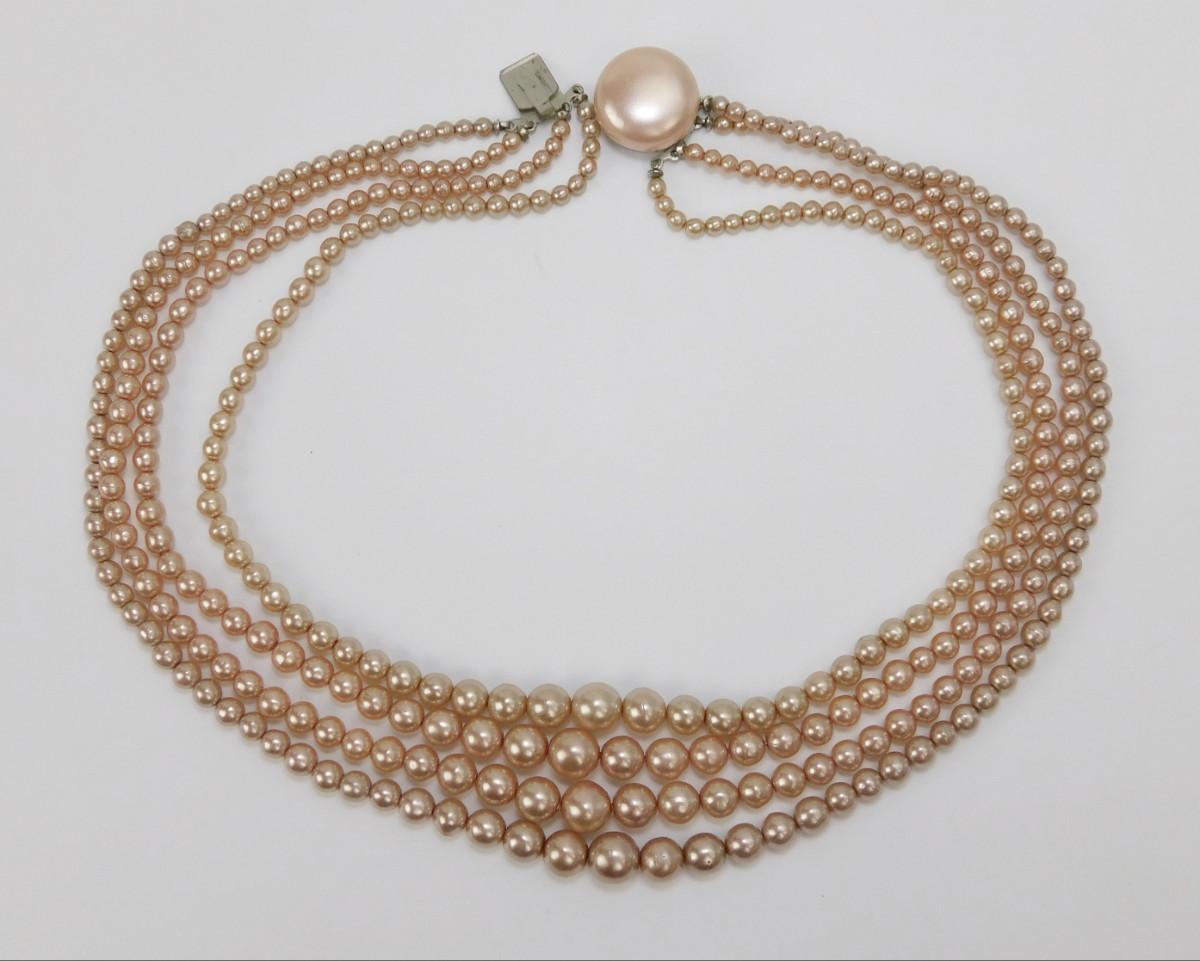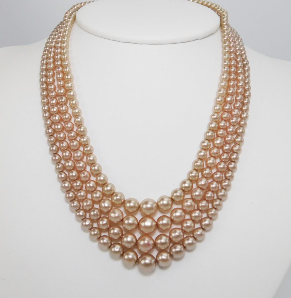 Vintage Ecru Colored Four Strand Pearl Bead Necklace