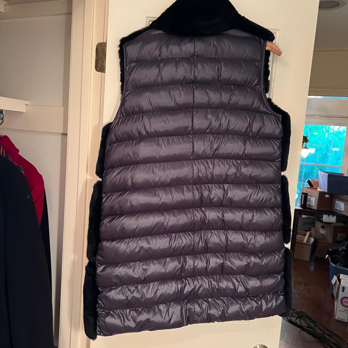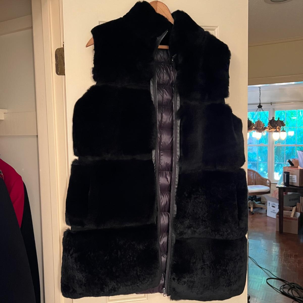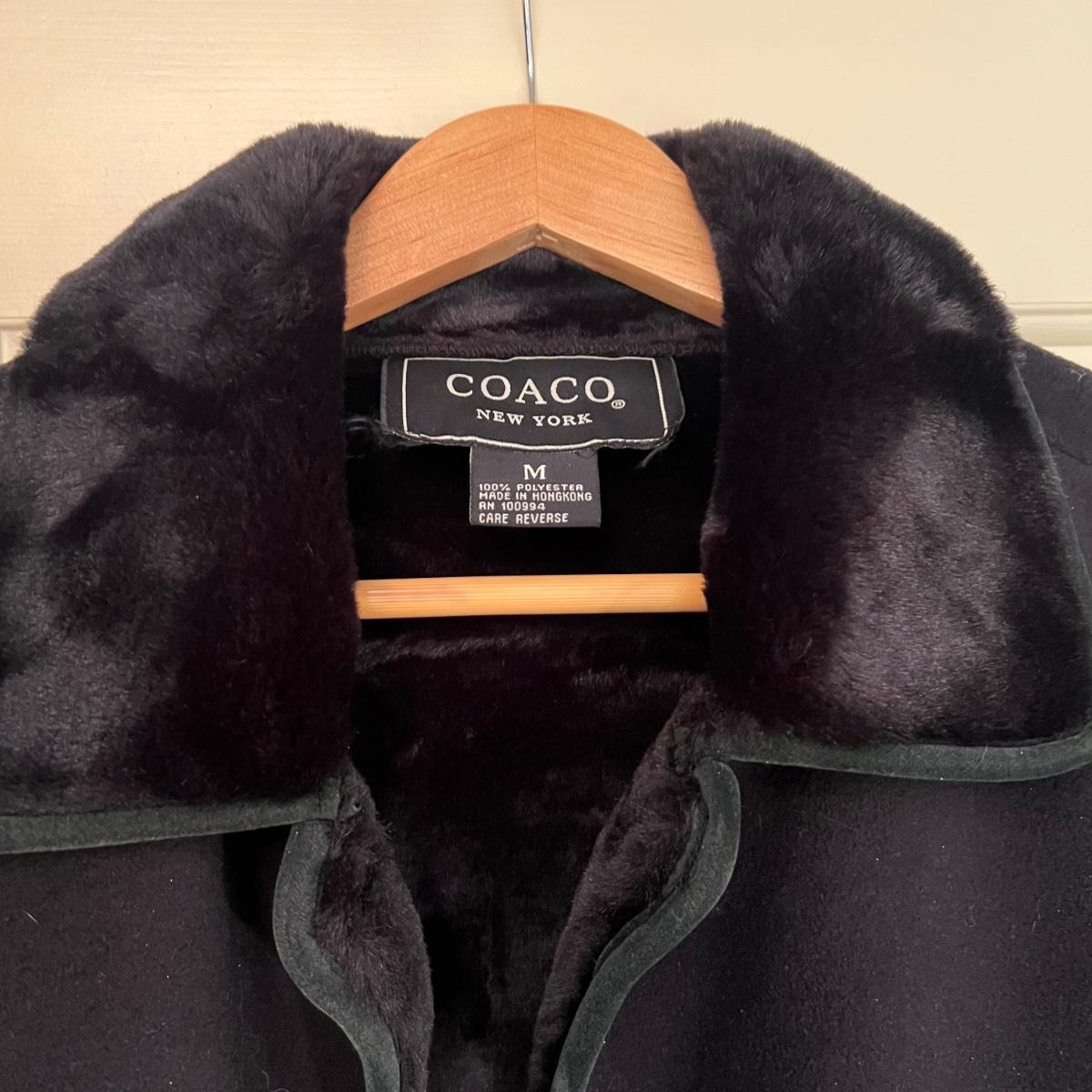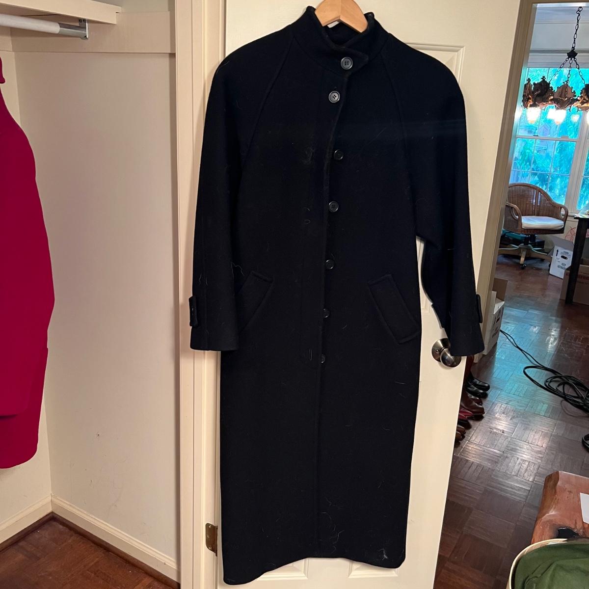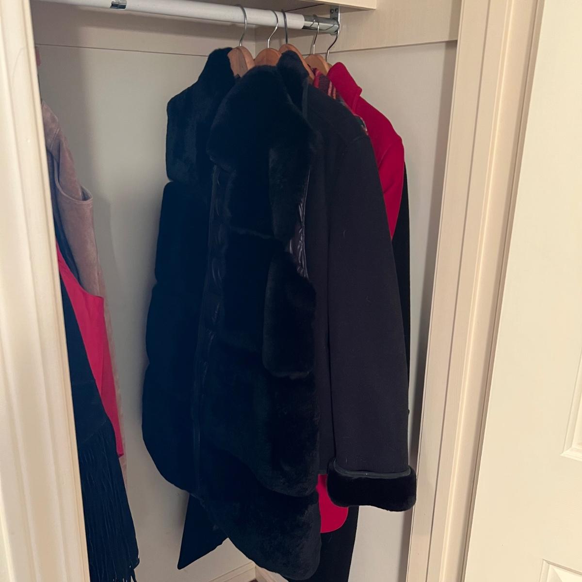 Three wool coats and a black vest features one Eddie Bauer tartan toggle coat. The label for the red jacket is faded, but it appears to be wool. See photos for sizes & brands.