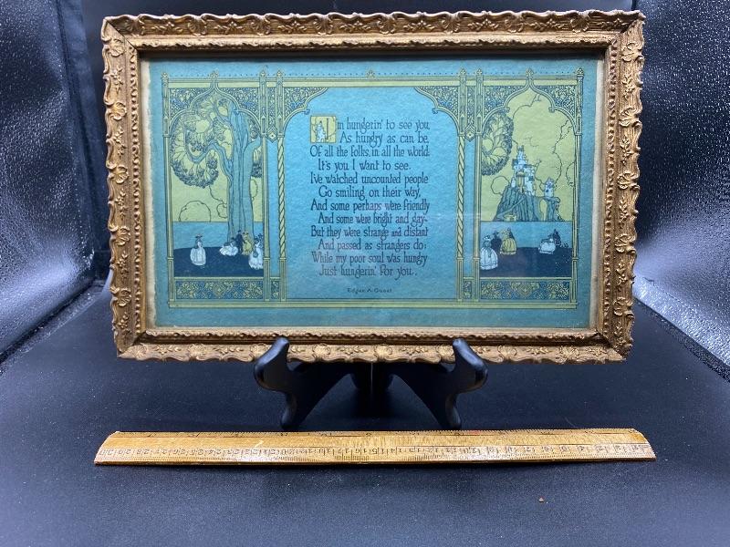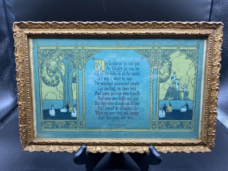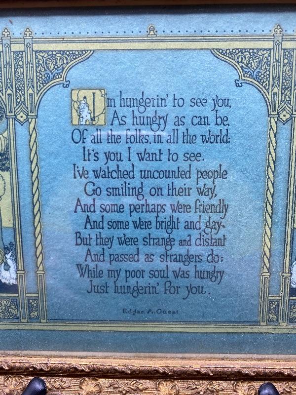 Vintage Edgar A Guest poetry framed art. Victorian Art Nouveau look. Frame has small damage to corner. 12" wide.