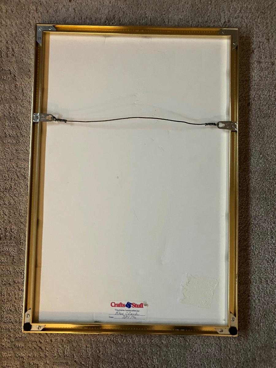 - Size: Image approx. 11x18"; overall framed 14" wide x 21" high (gold wood frame, ready to hang).