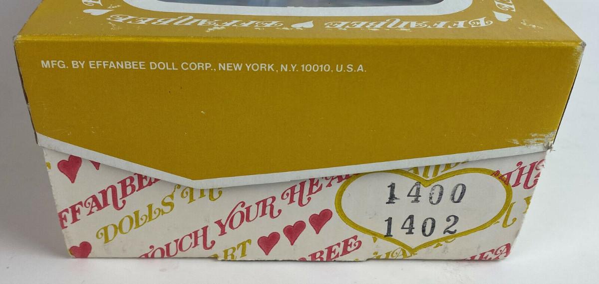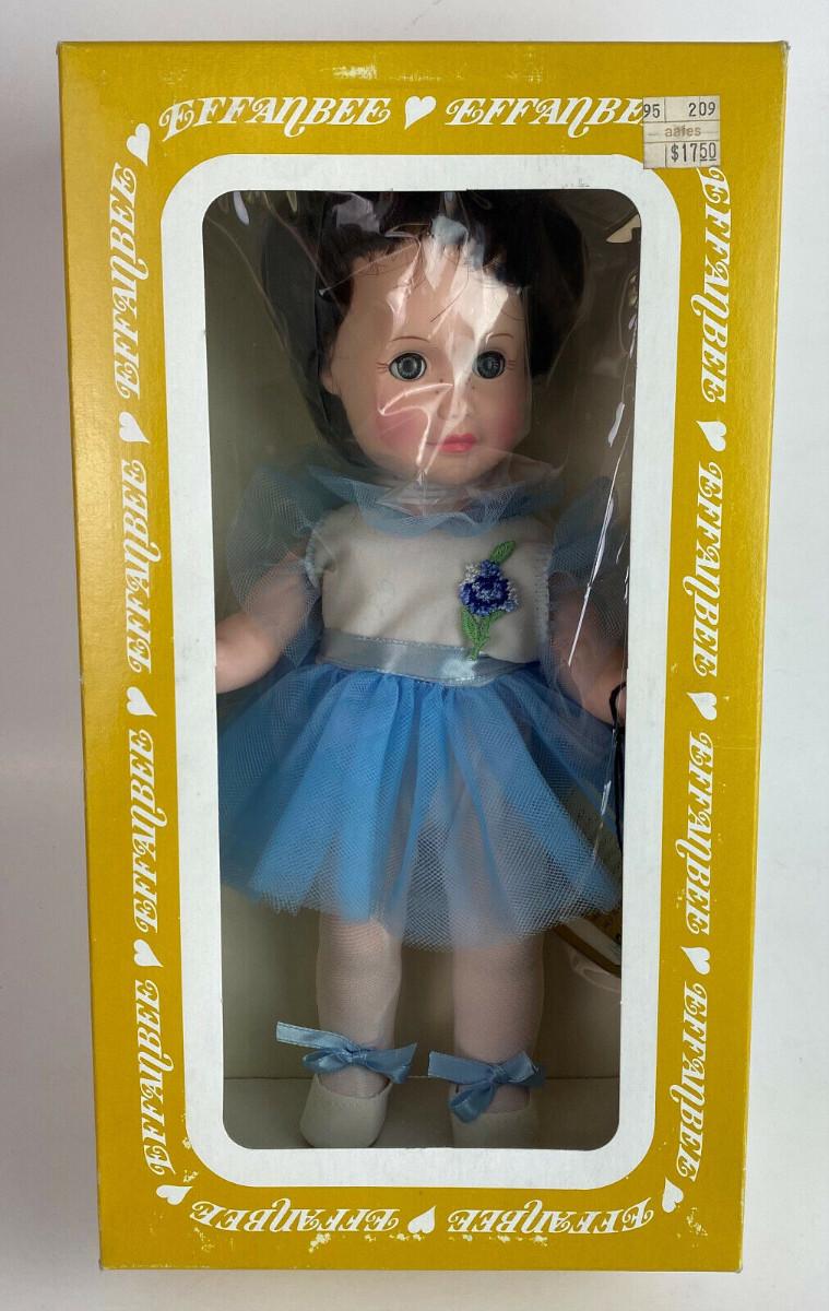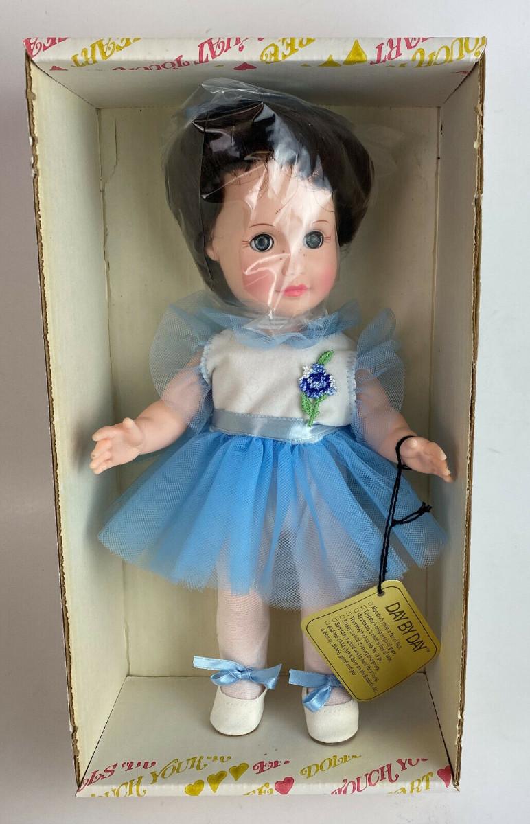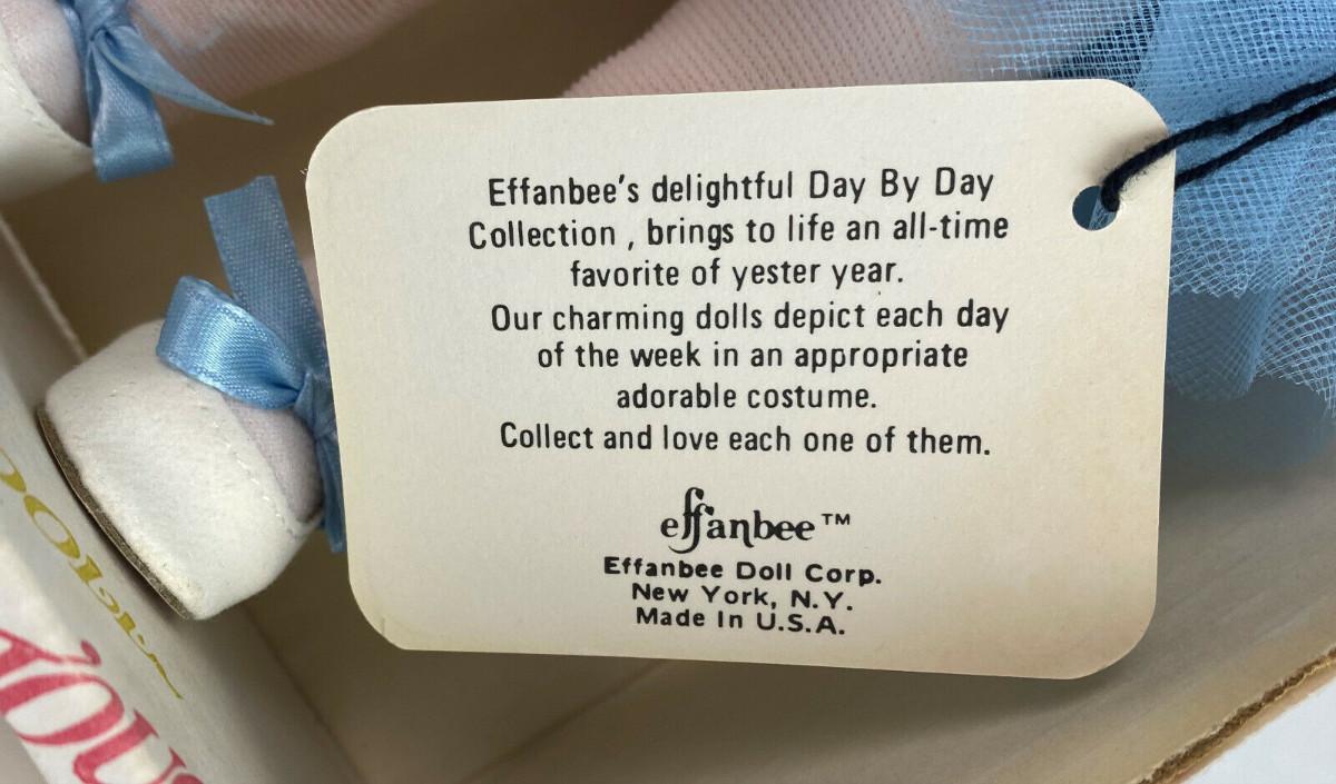 With box and tag here is an Effanbee Day by Day Collection vinyl 11" doll..#1400/1402...'Tuesday's Child is Full of Grace...Circa 1980...All original clothing...Excellent condition...From a collector's estate“🦆