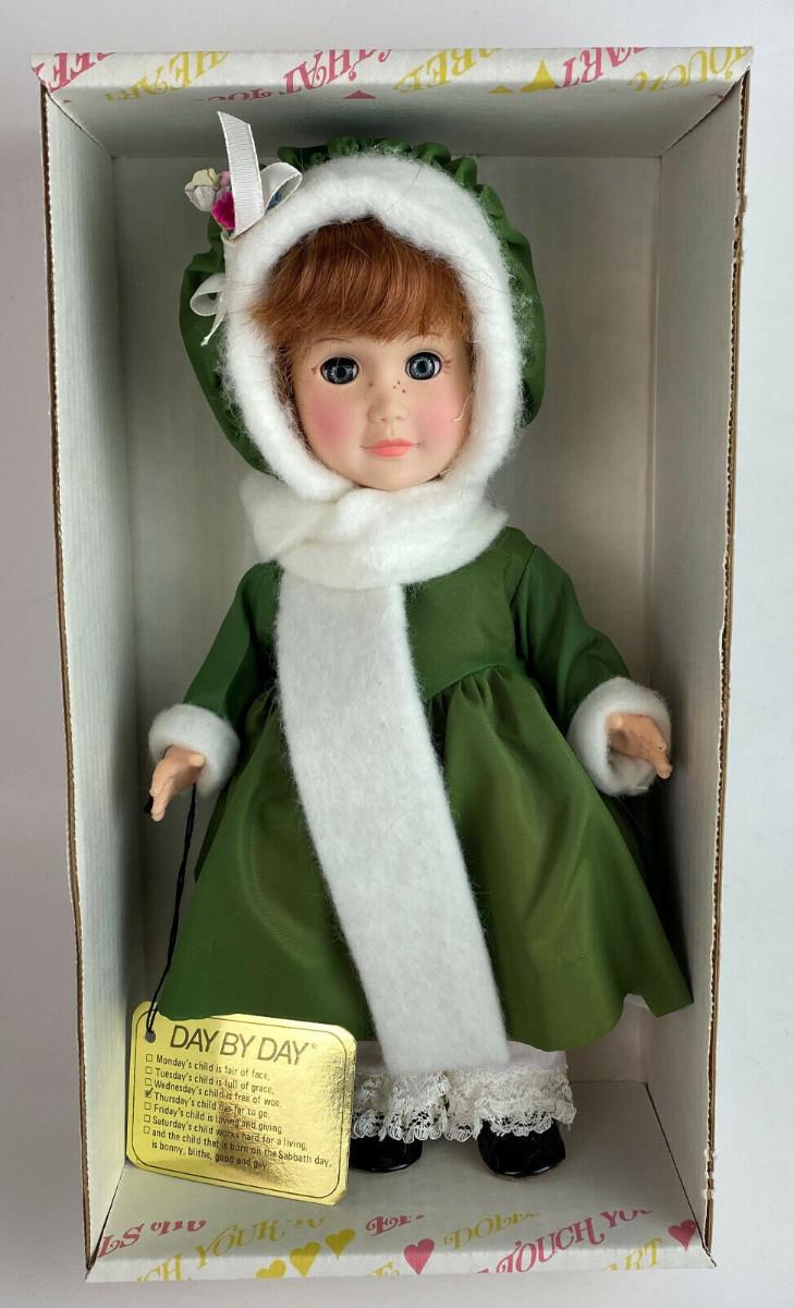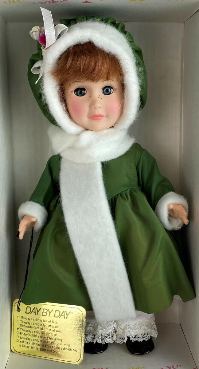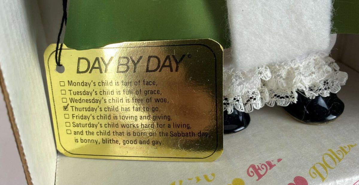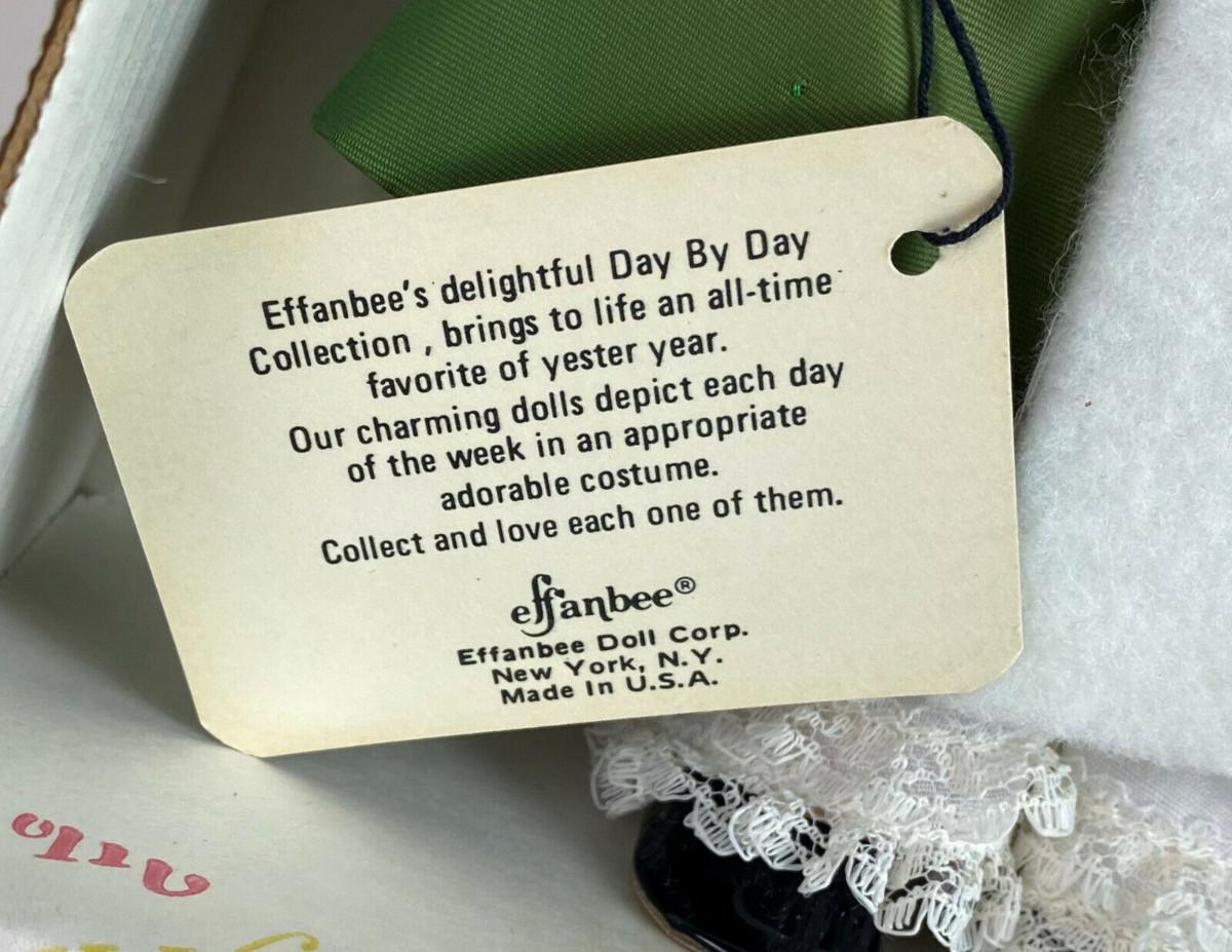 With box and tag here is an Effanbee Day by Day Collection vinyl 11" doll..#1404...Thursday's child has far to go'...Circa 1980...All original clothing...Excellent condition...From a collector's estate“🦆