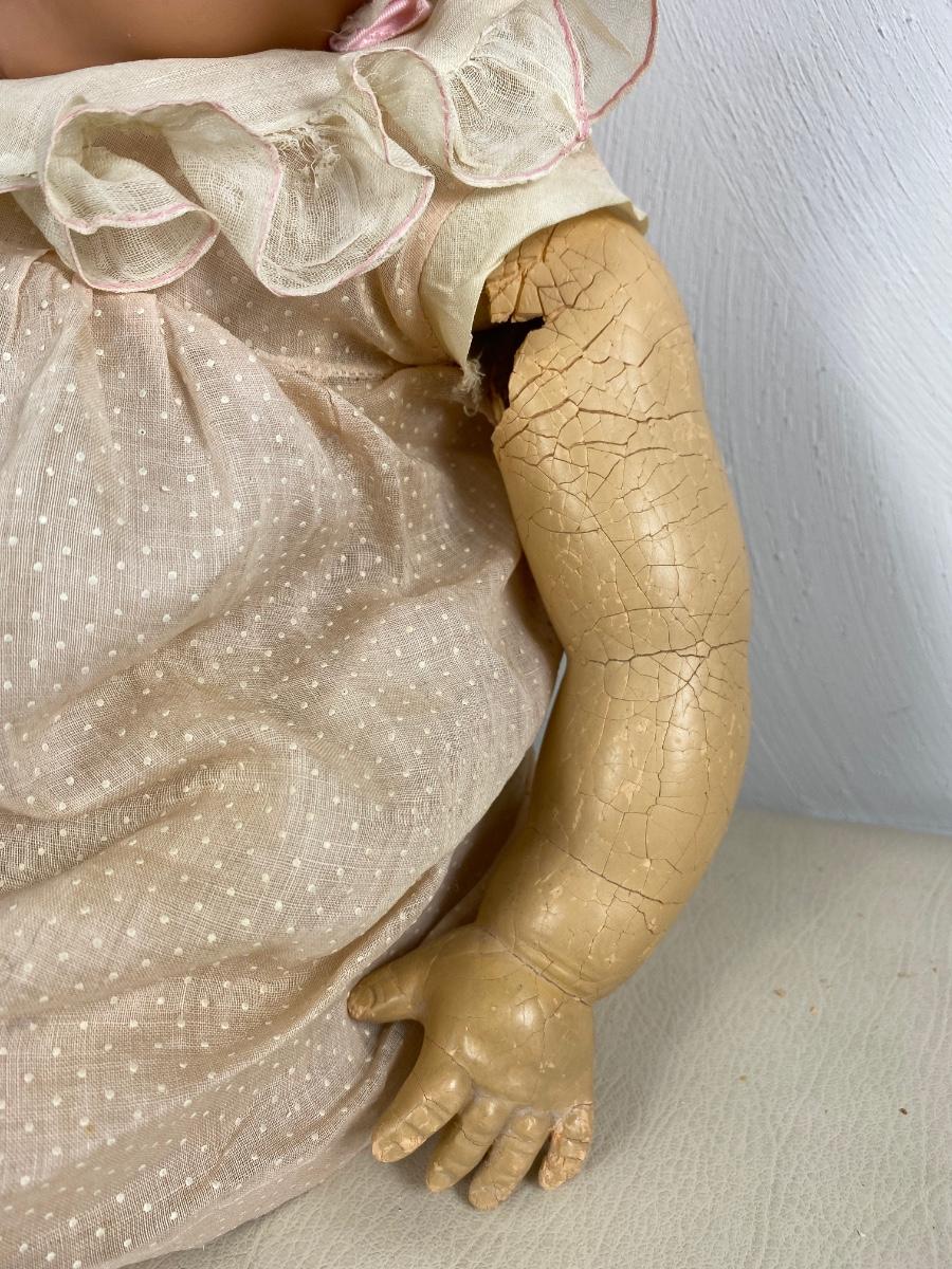 This sweet baby melted my heart when I saw her. A nice little estate find. She’s large and feels quite life-like. She has issues but is ready for her new mom to love her.