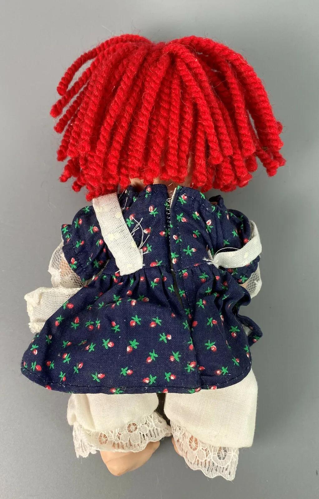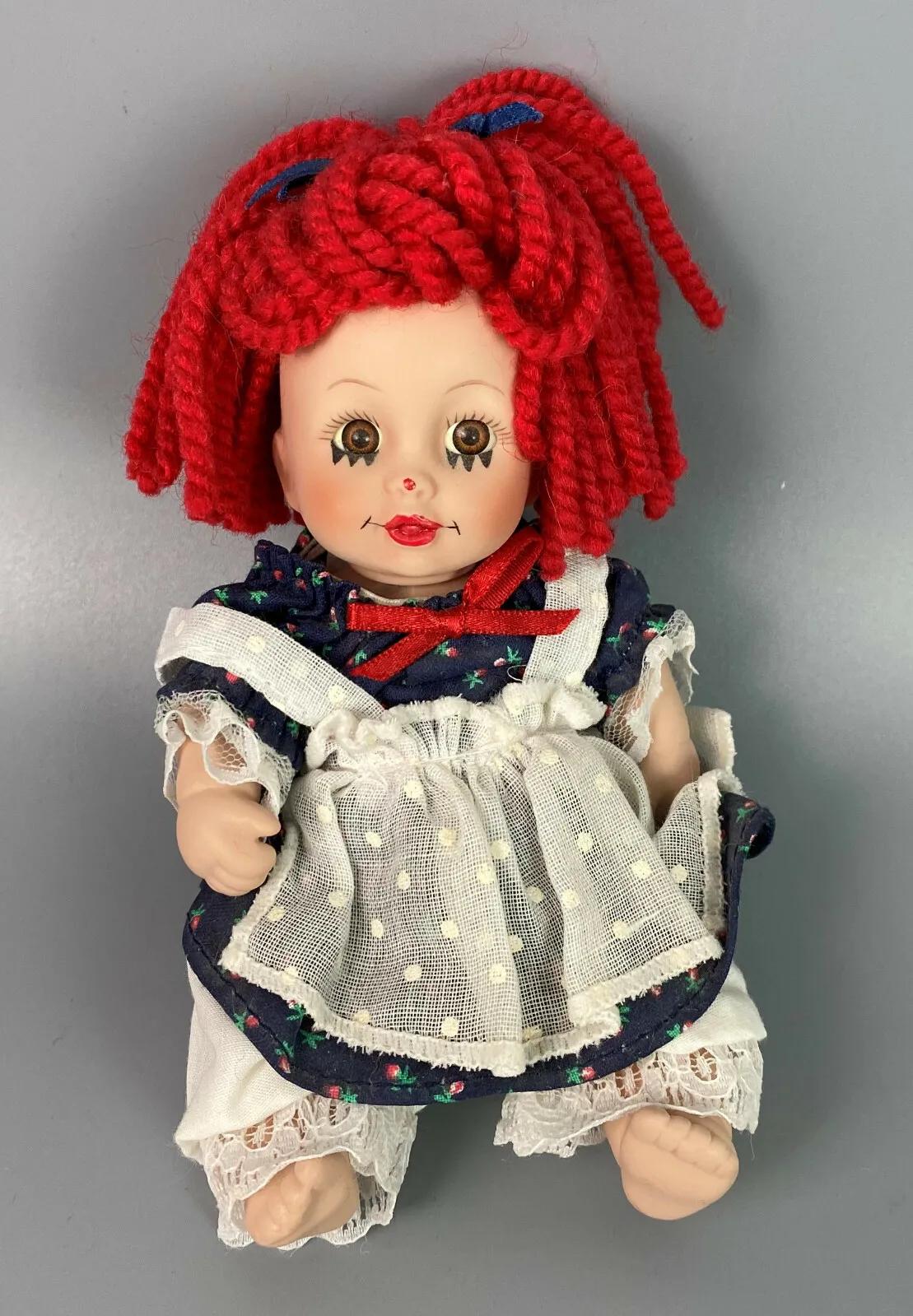 From a collector's estate, in excellent condition here is a 6" poseable porcelain Raggedy Ann doll from effanbee...Hand painted..Fully jointed..Yarn hair..Cotton dress and bloomers...As shown.