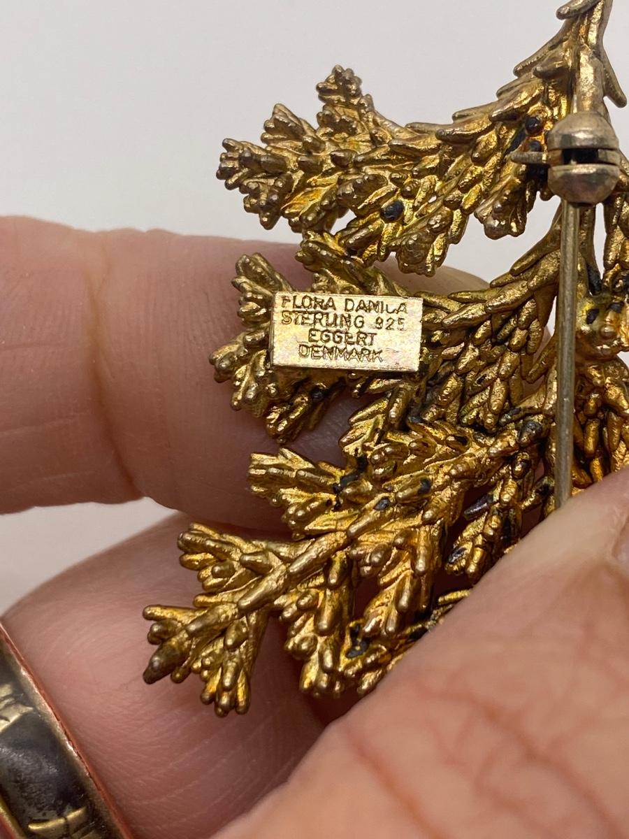 Vintage Eggert Denmark 925 Sterling Flora Danica Gold Gilt Botanical Brooch Pin
