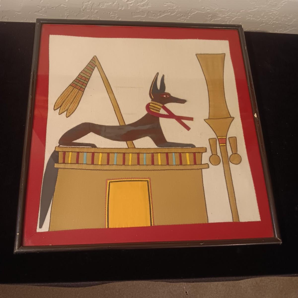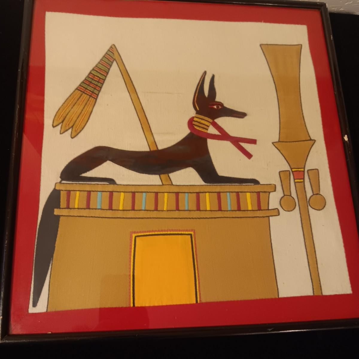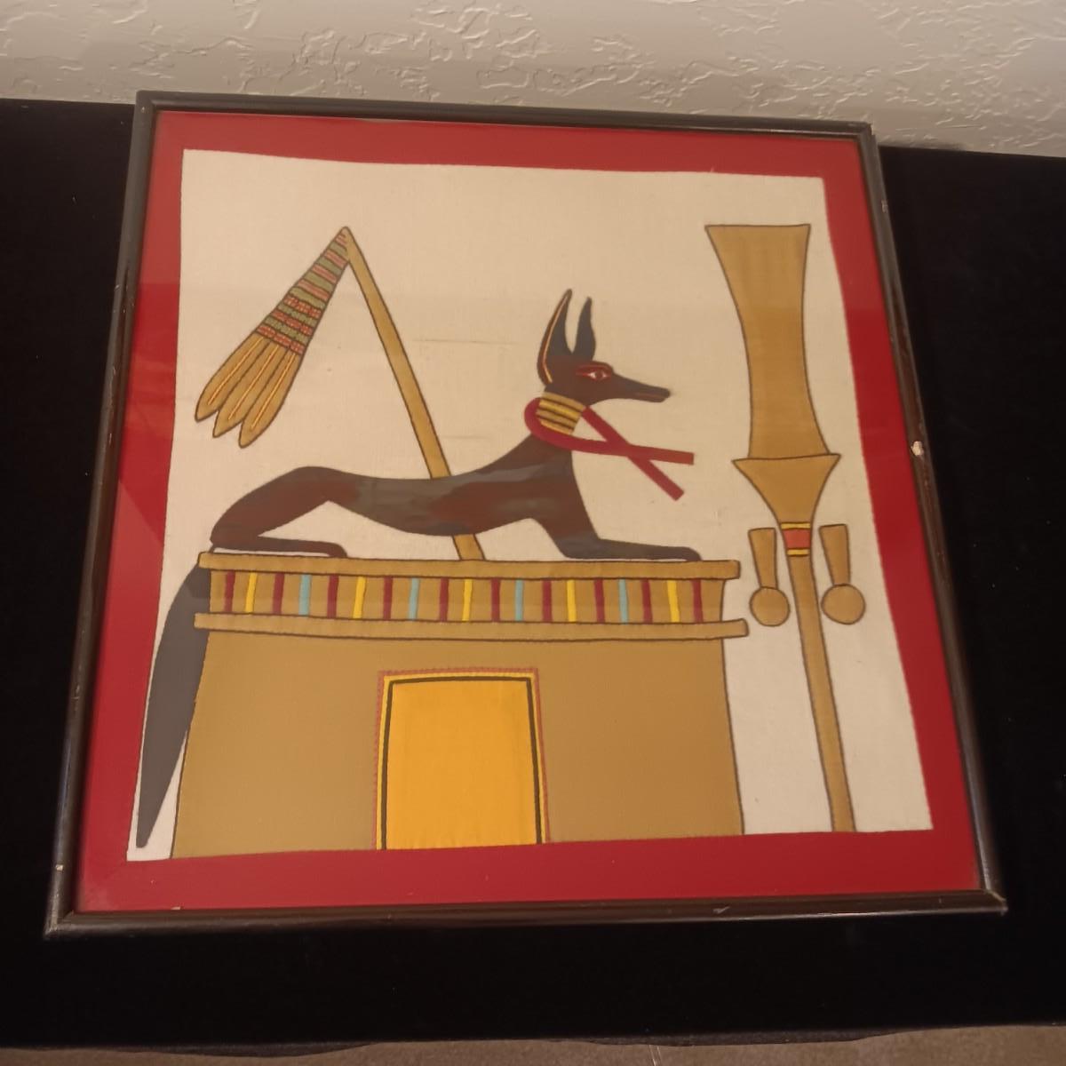 VINTAGE EGYPTIAN ANUBIS HAND STITCHED CLOTH TAPESTRY