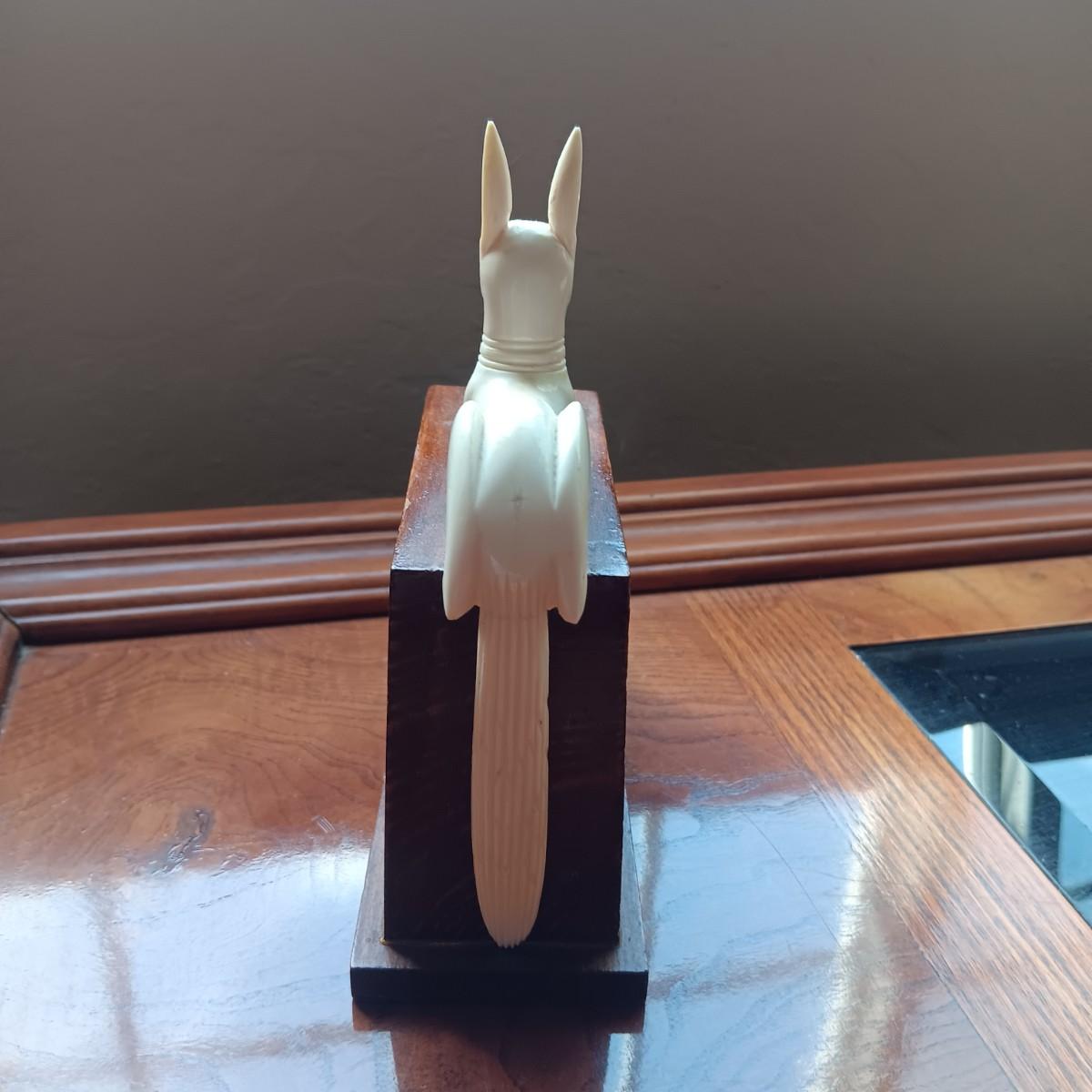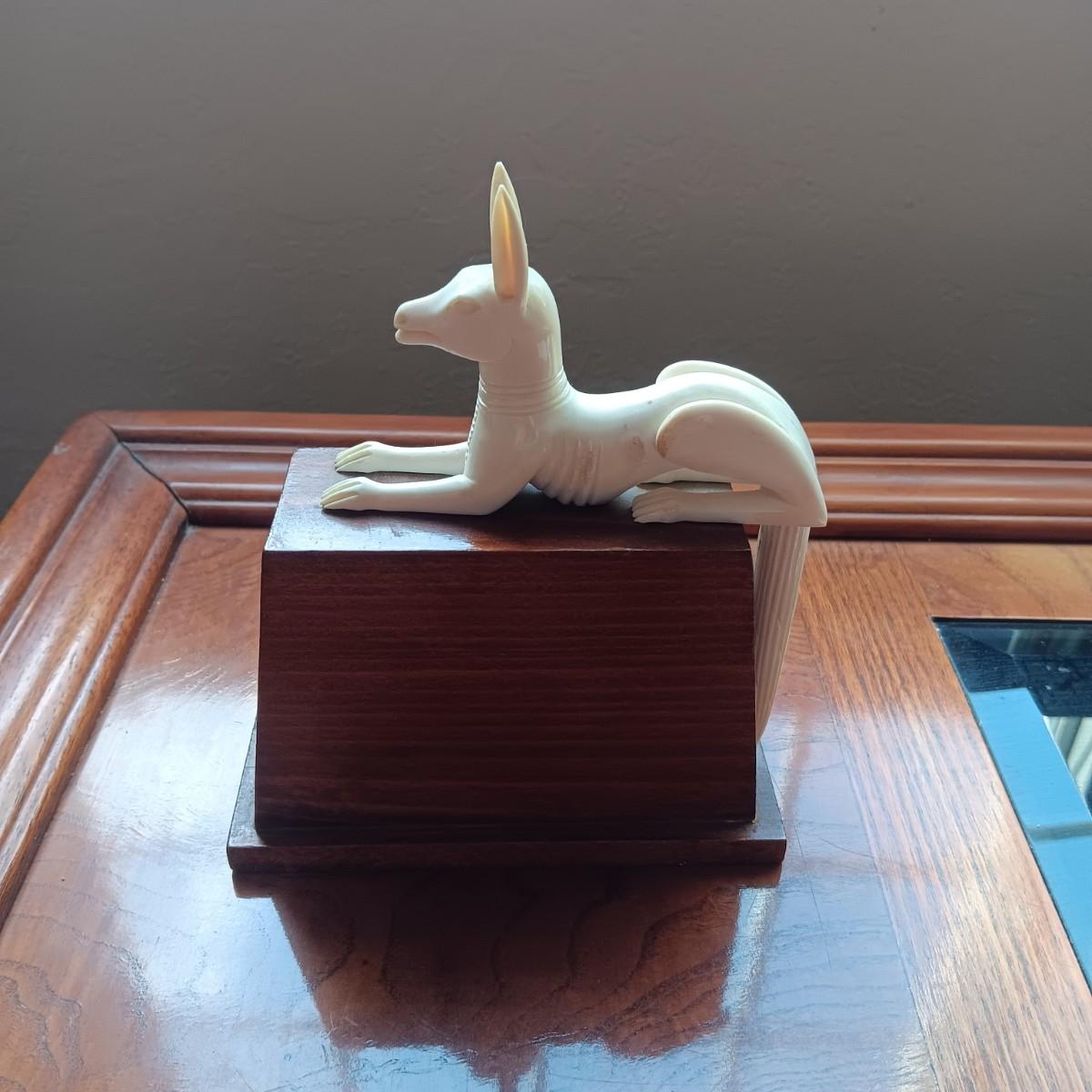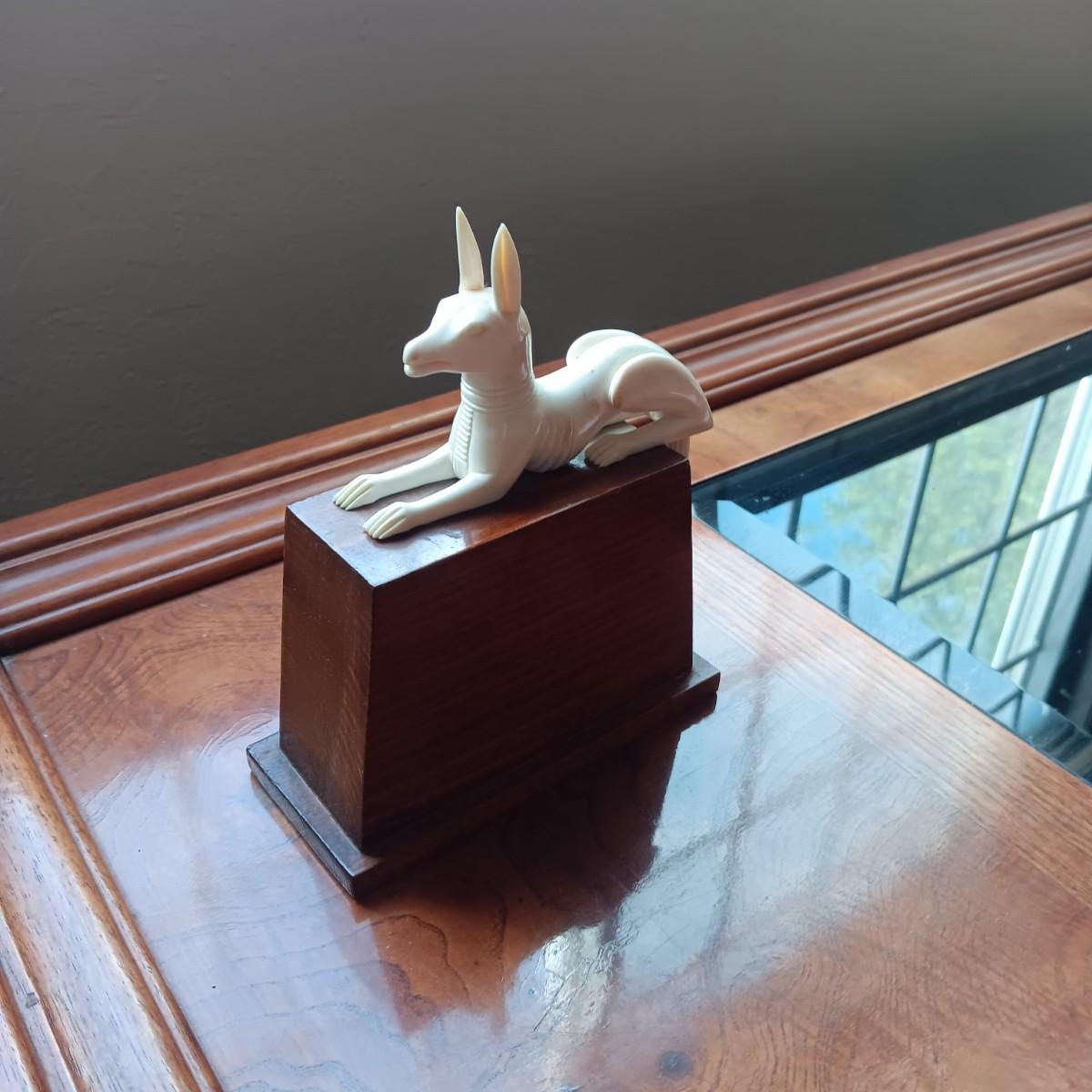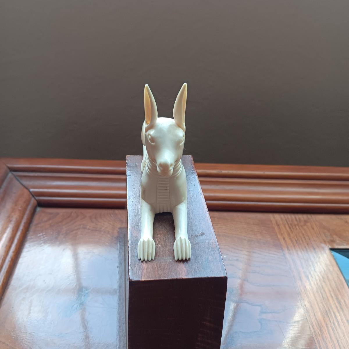 VINTAGE EGYPTIAN ANUBIS MOUNTED ON A BLOCK OF WOOD