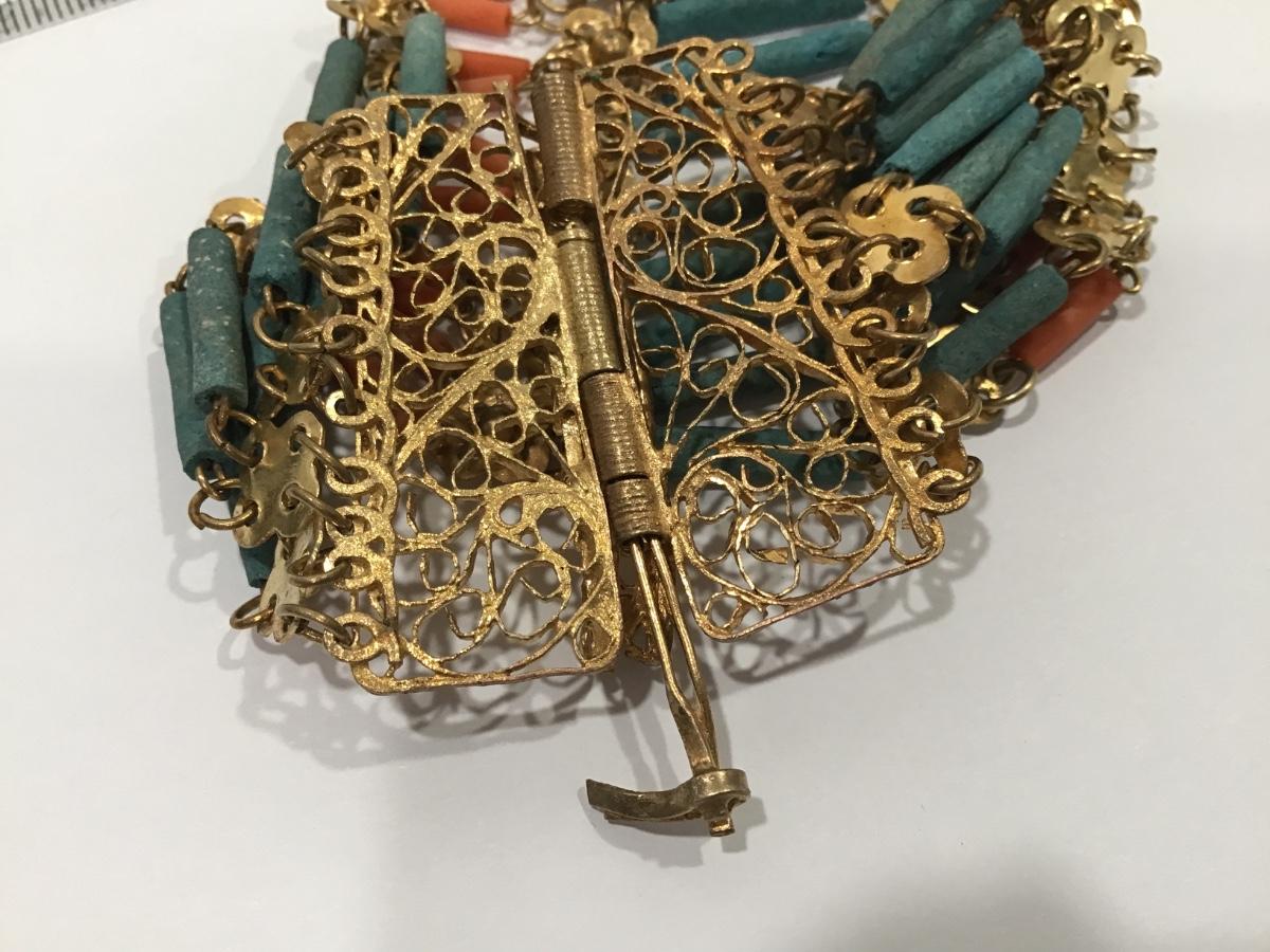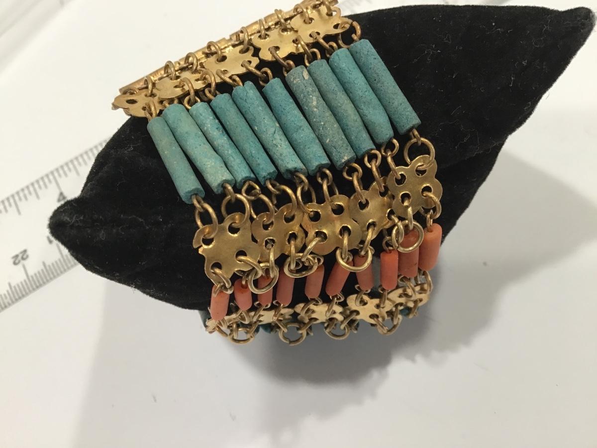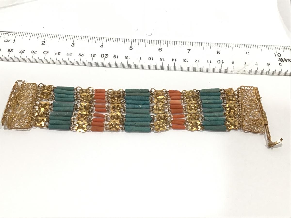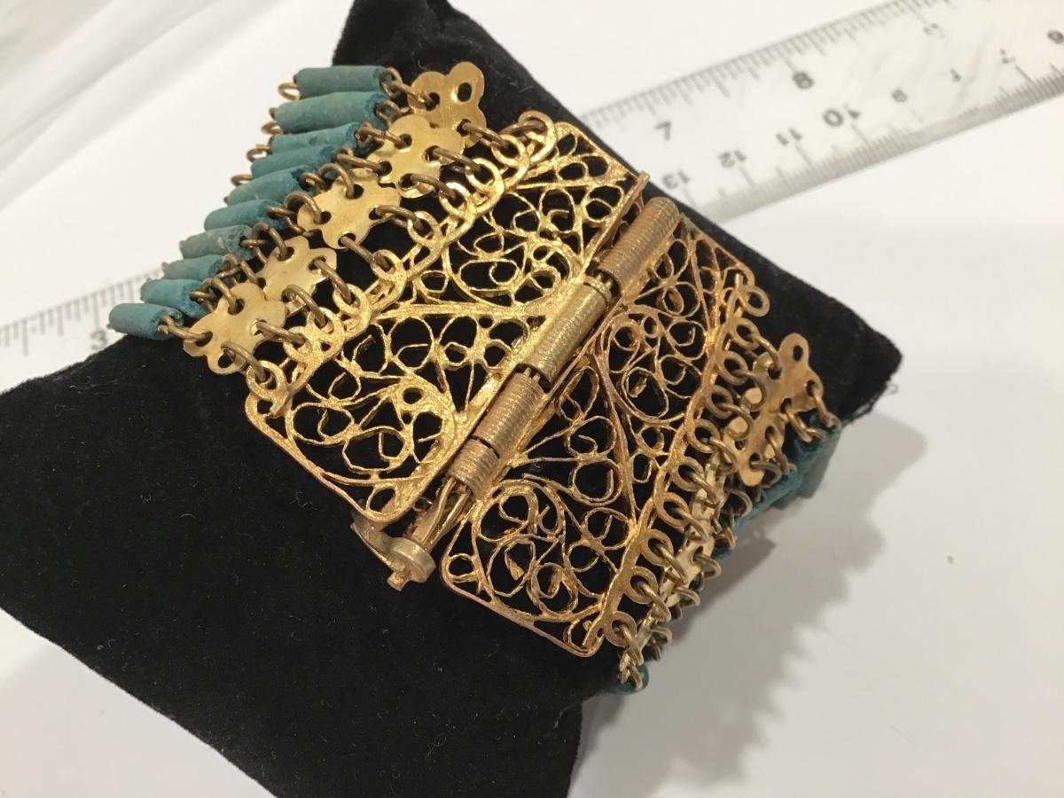 Vintage Egyptian Revival Faience Stone Type Bead Bracelet Filagree