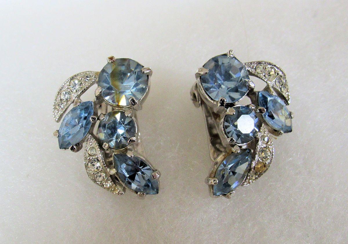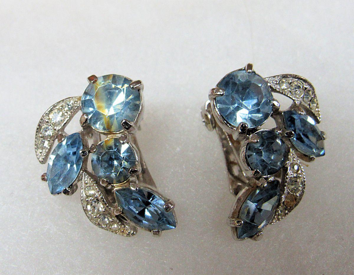 Vintage Eisenberg Blue Rhinestone Earrings, Read Description