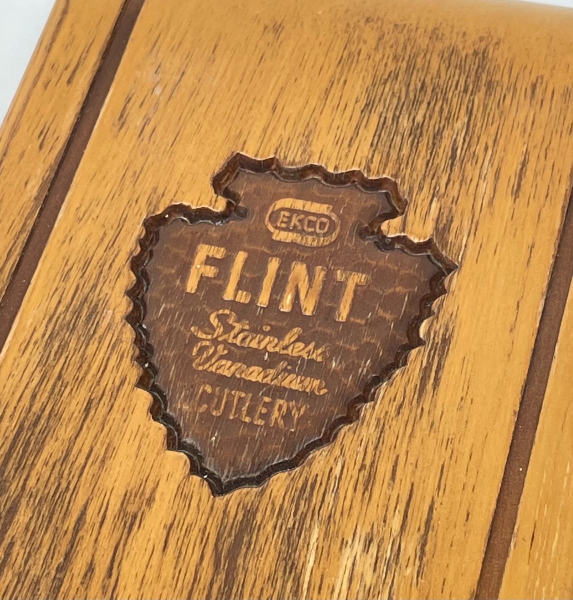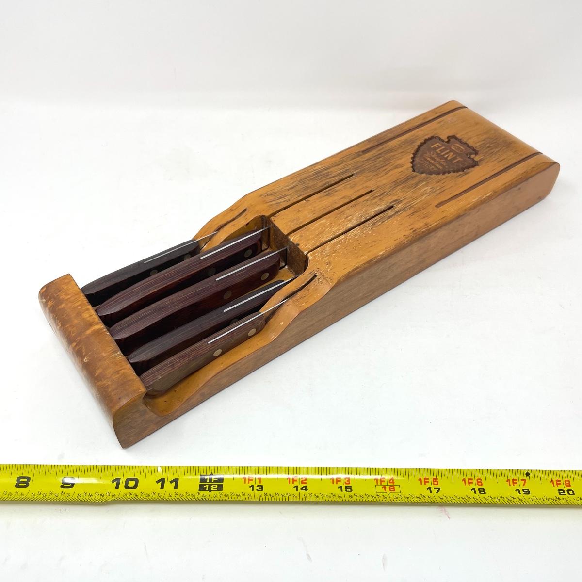 VINTAGE EKCO FLINT STAINLESS VANADIUM CUTLERY SET OF 5 KNIVES AND WALL HOLDER