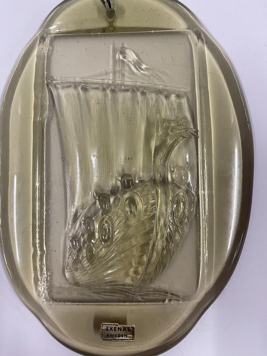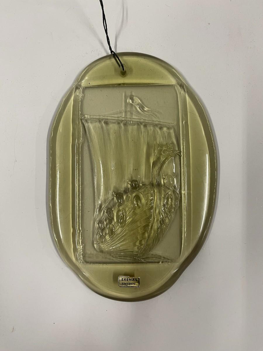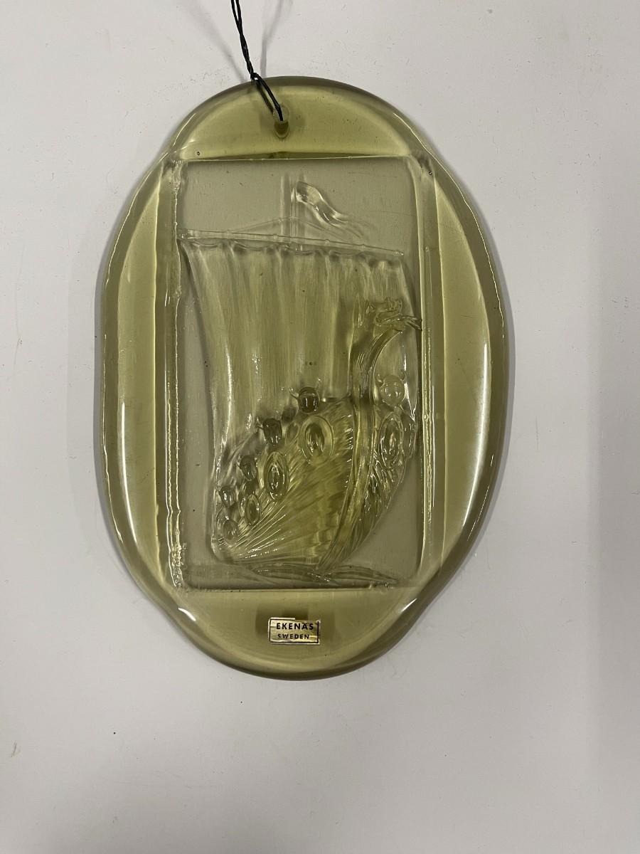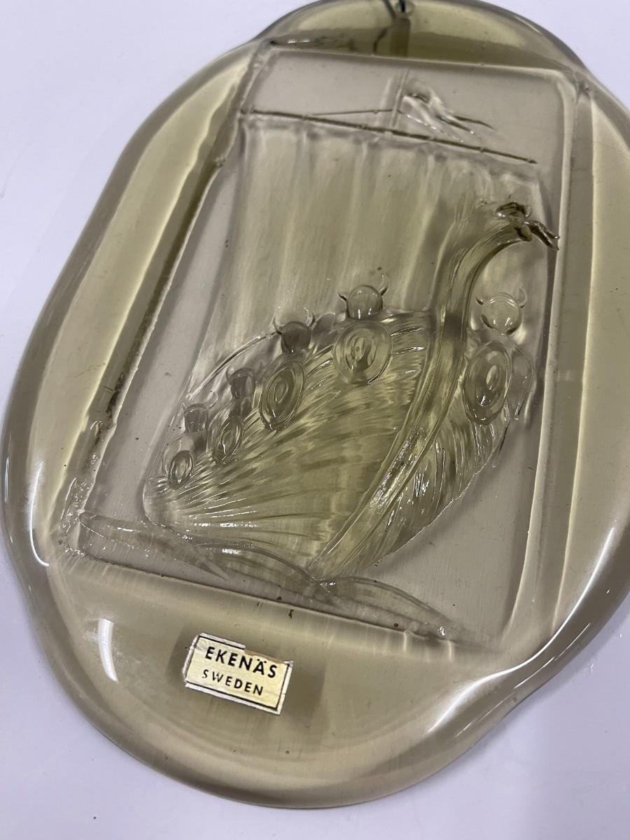 Vintage Ekenas Sweden Art Glass Relief