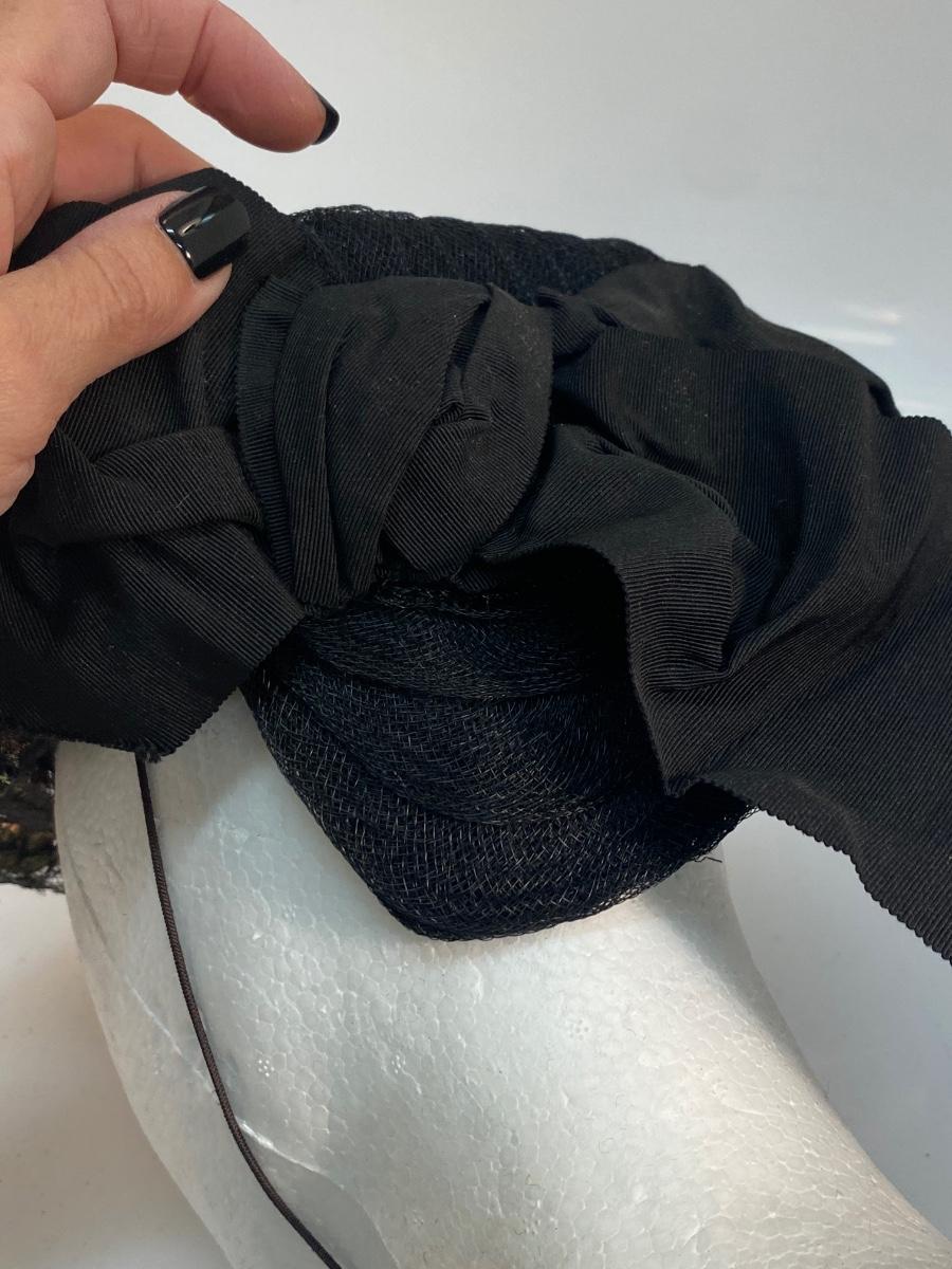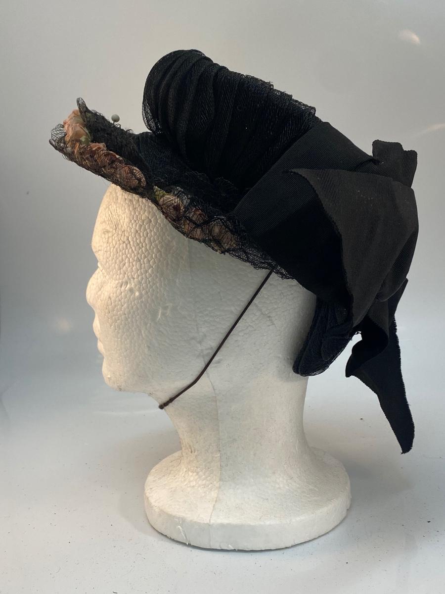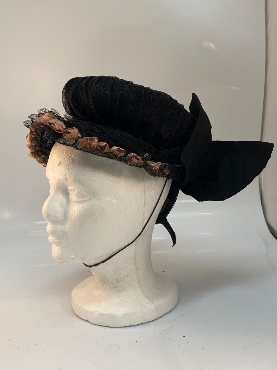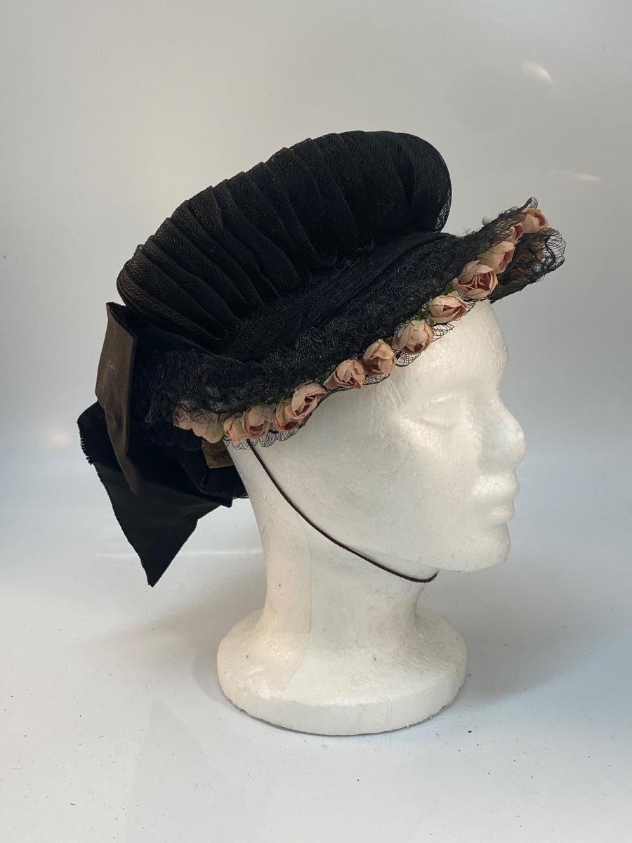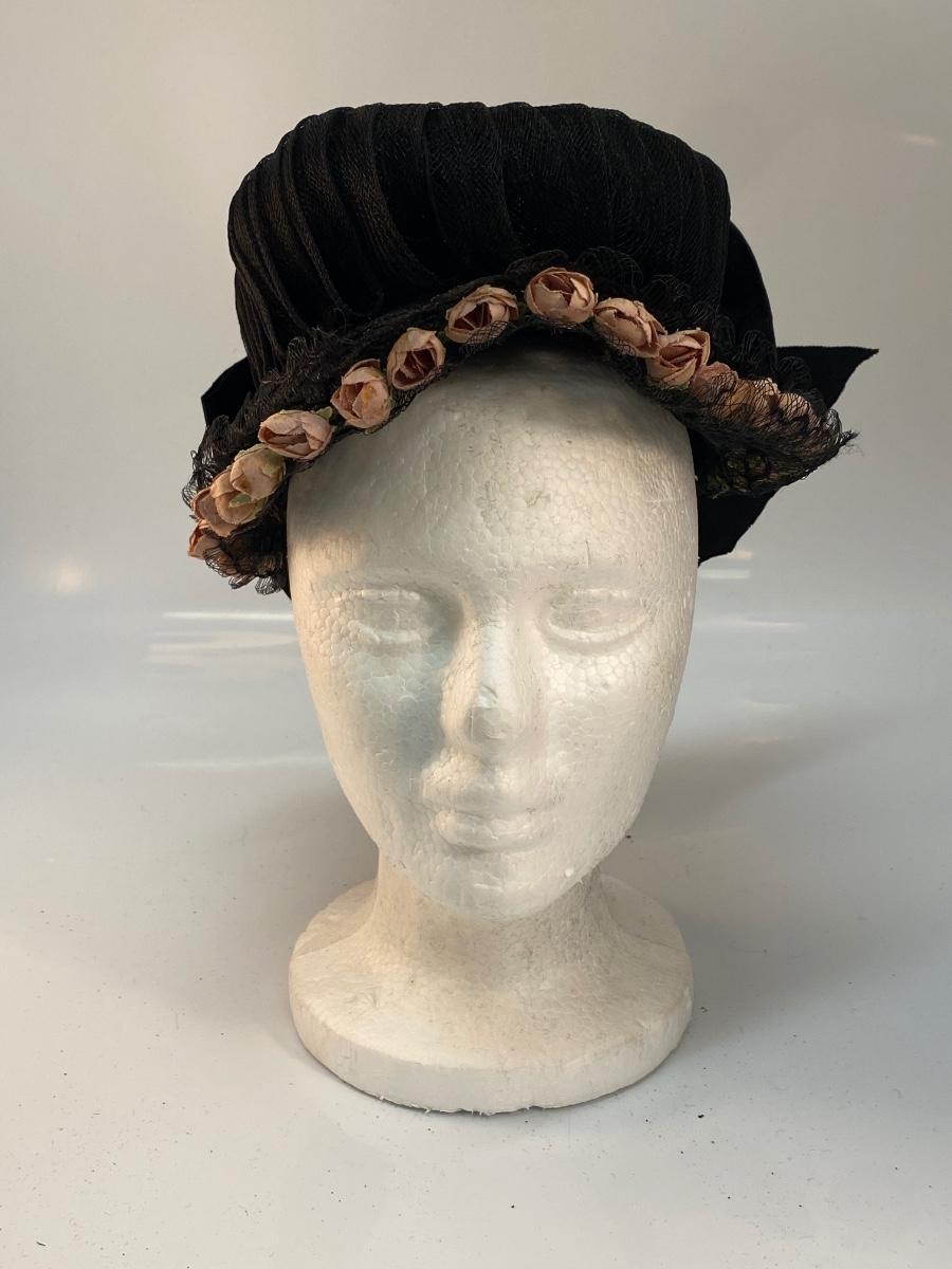 Vintage El - Marie Santa Ana Black Mourning Rose Flower Trim Womens Cap