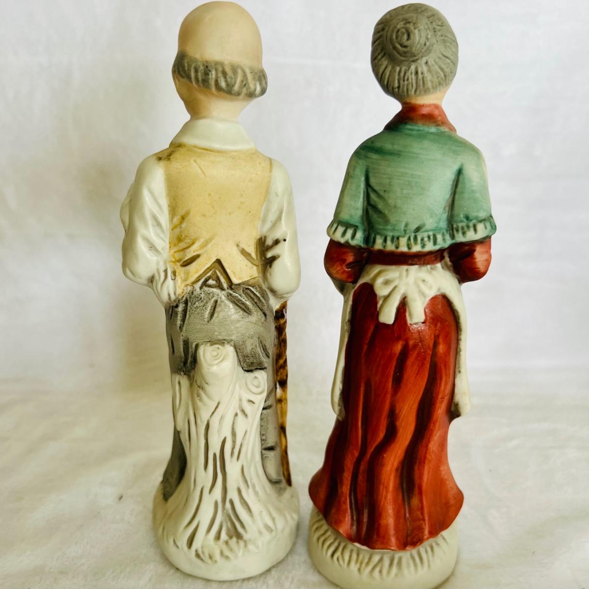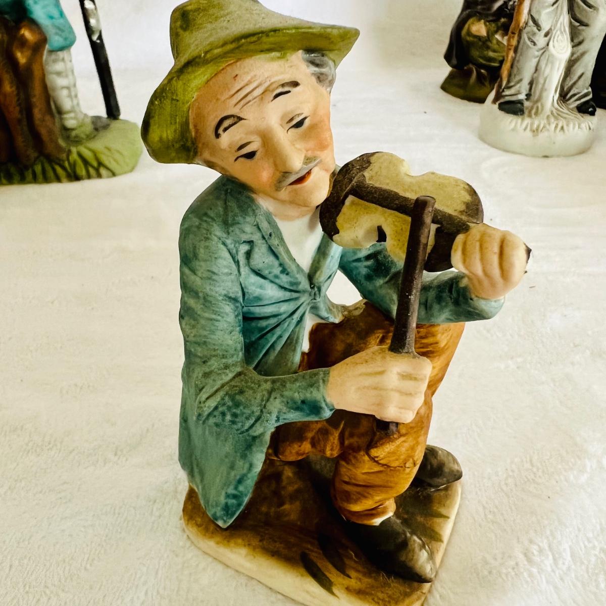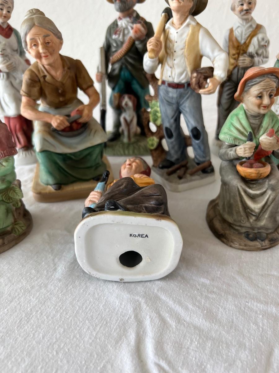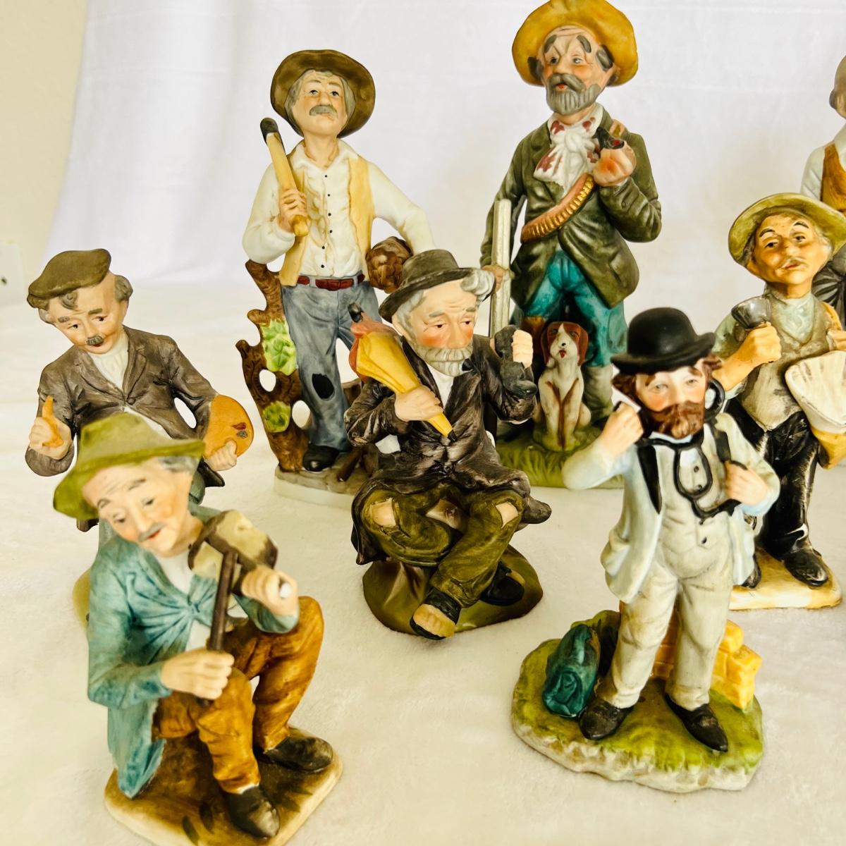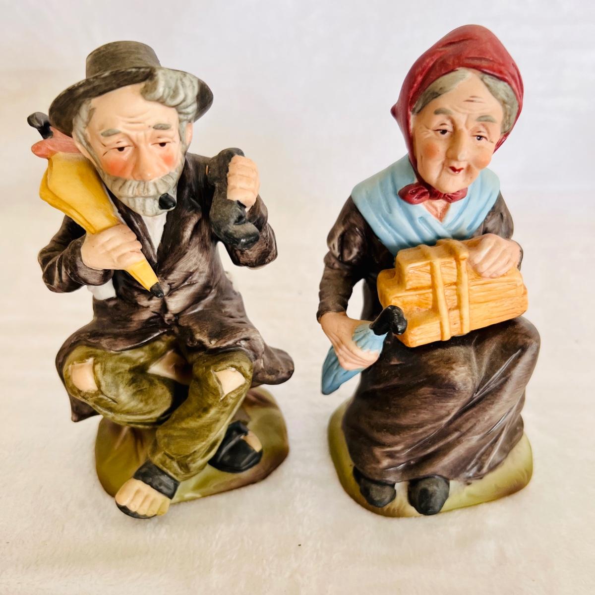 Vintage porcelain figurines of elderly men and women. figurines that are approximately 6” tall to 12” tall. No boxes. (LR-JM)