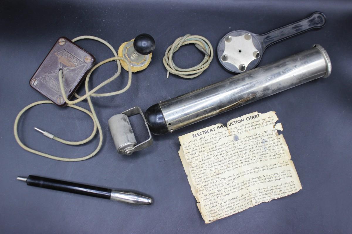 Vintage Electreat Electrotherapy Massager Pain Reliever Medical Device, there is some wear to the device, but there is no significant damage and is in overall fair condition. Also comes with the attachments and instructions, check pictures for more details.