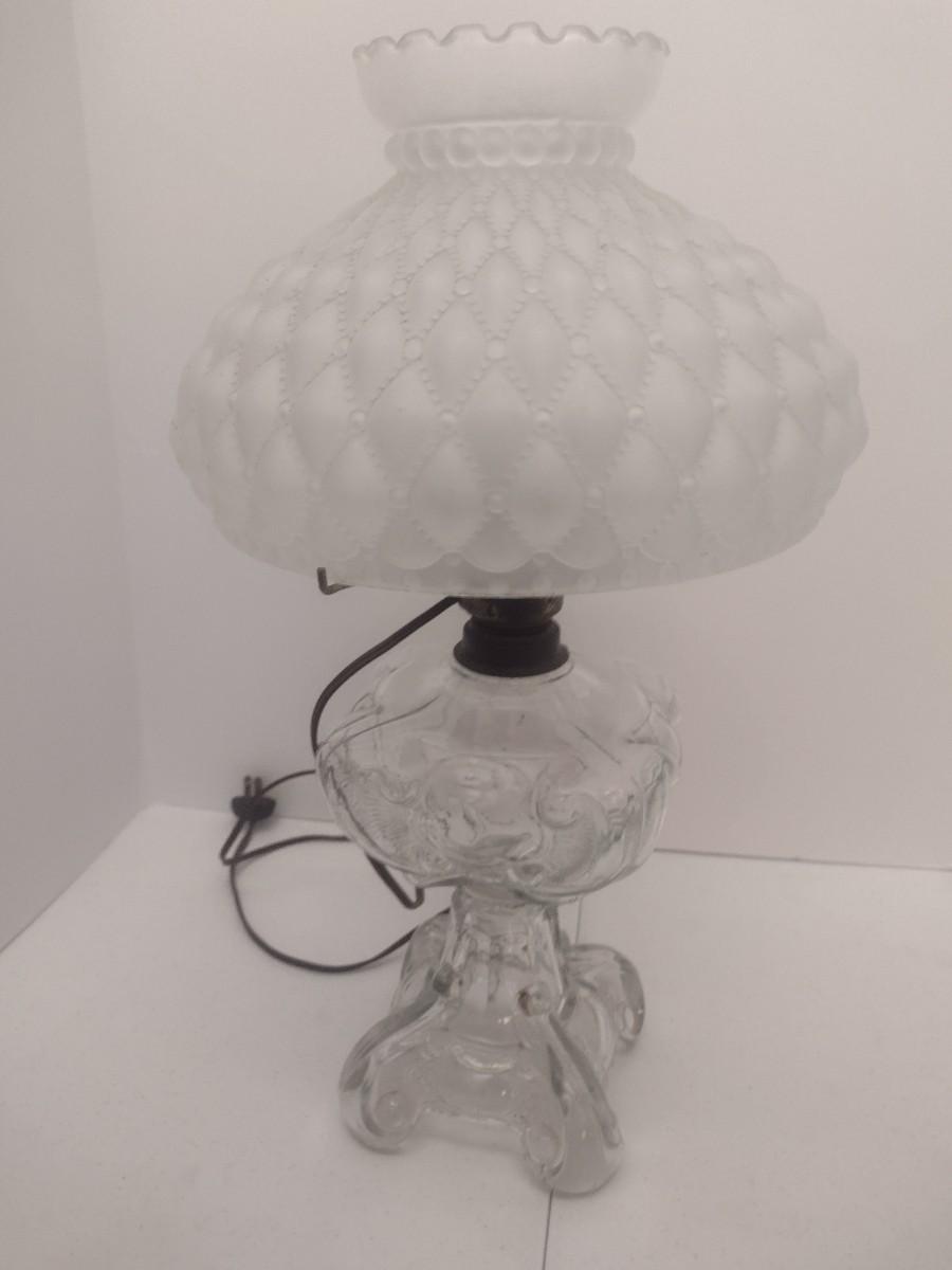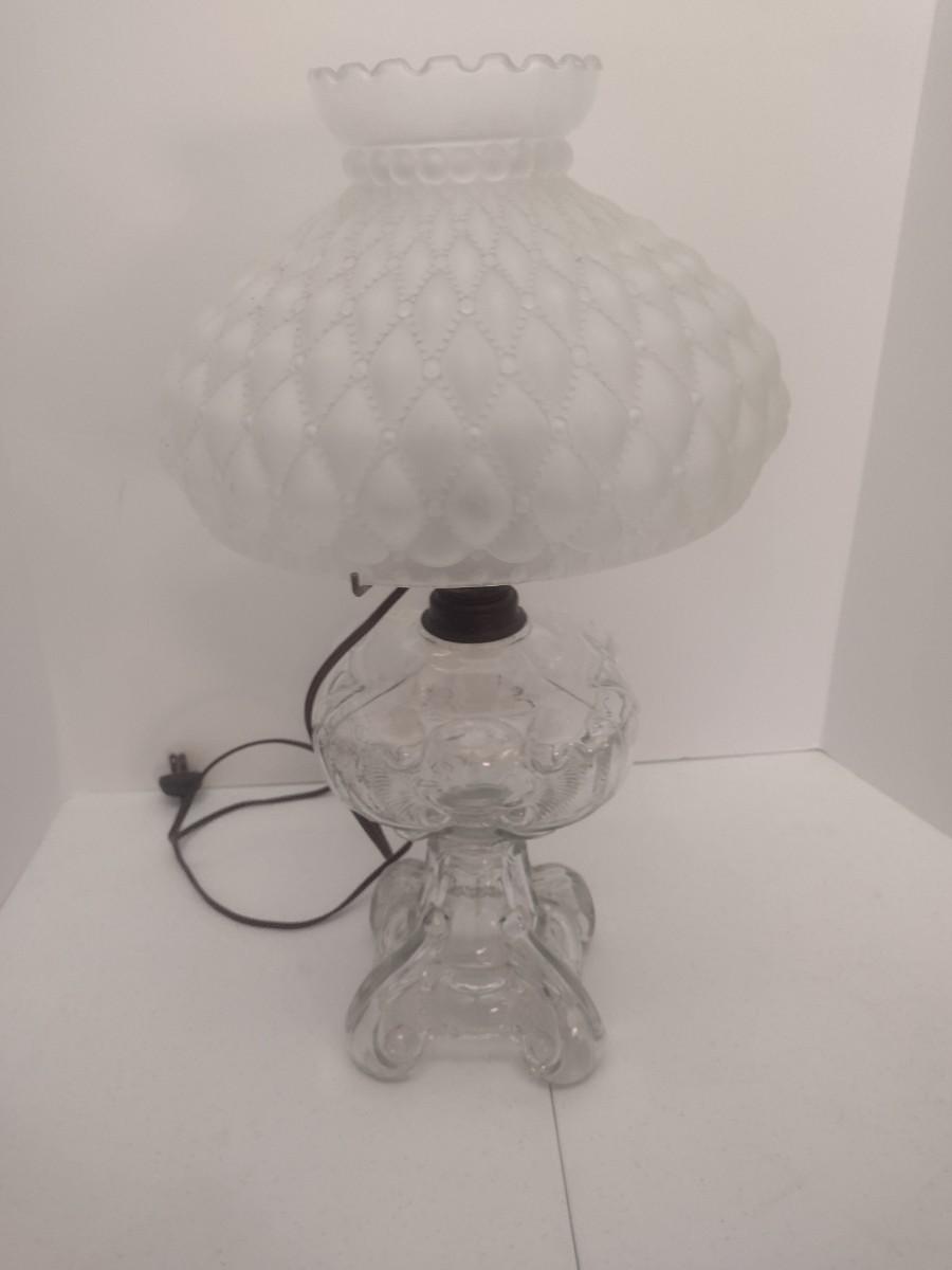 Vintage Electric Glass Table Lamp with Tufted Design Glass Shade