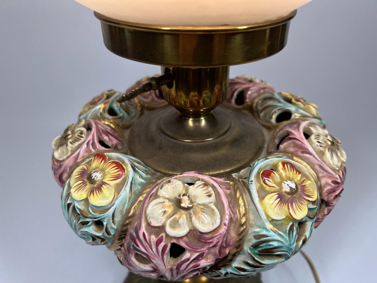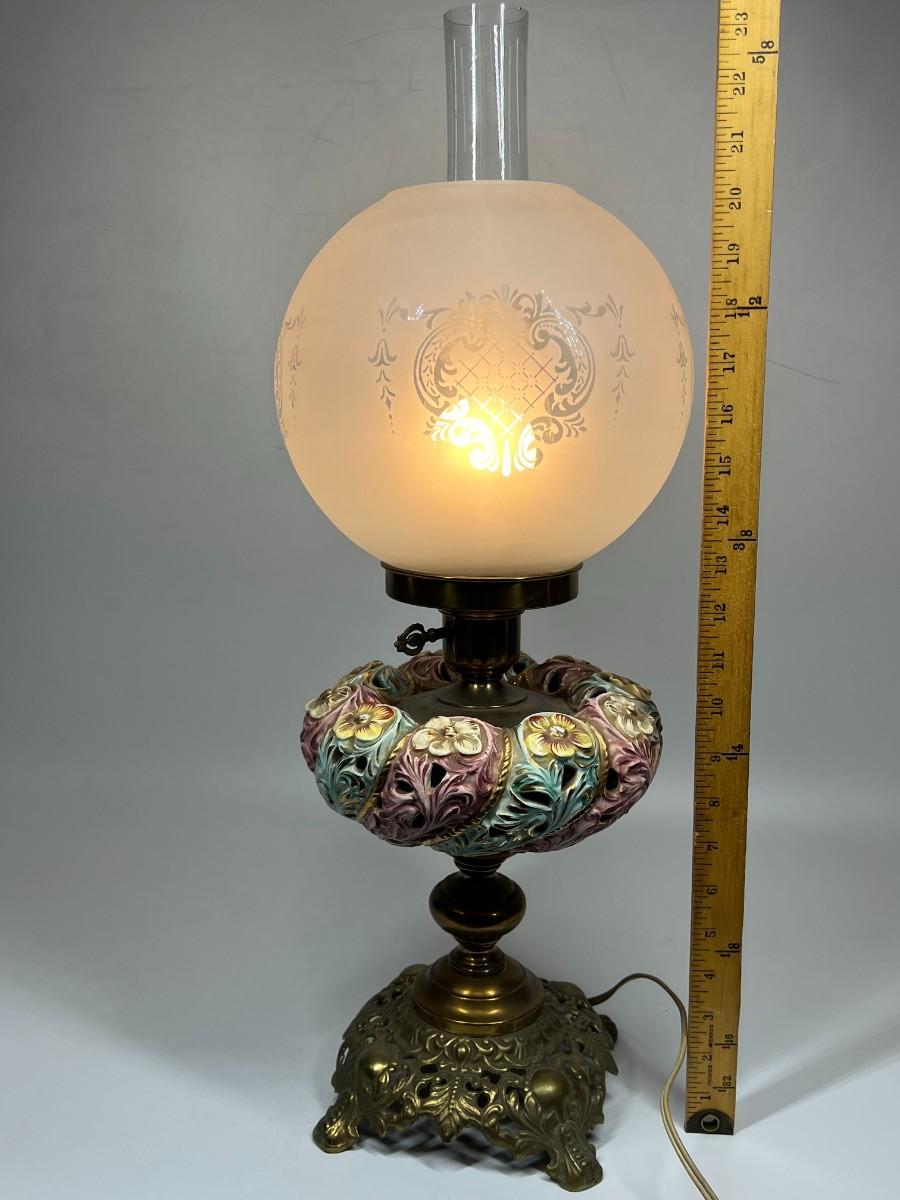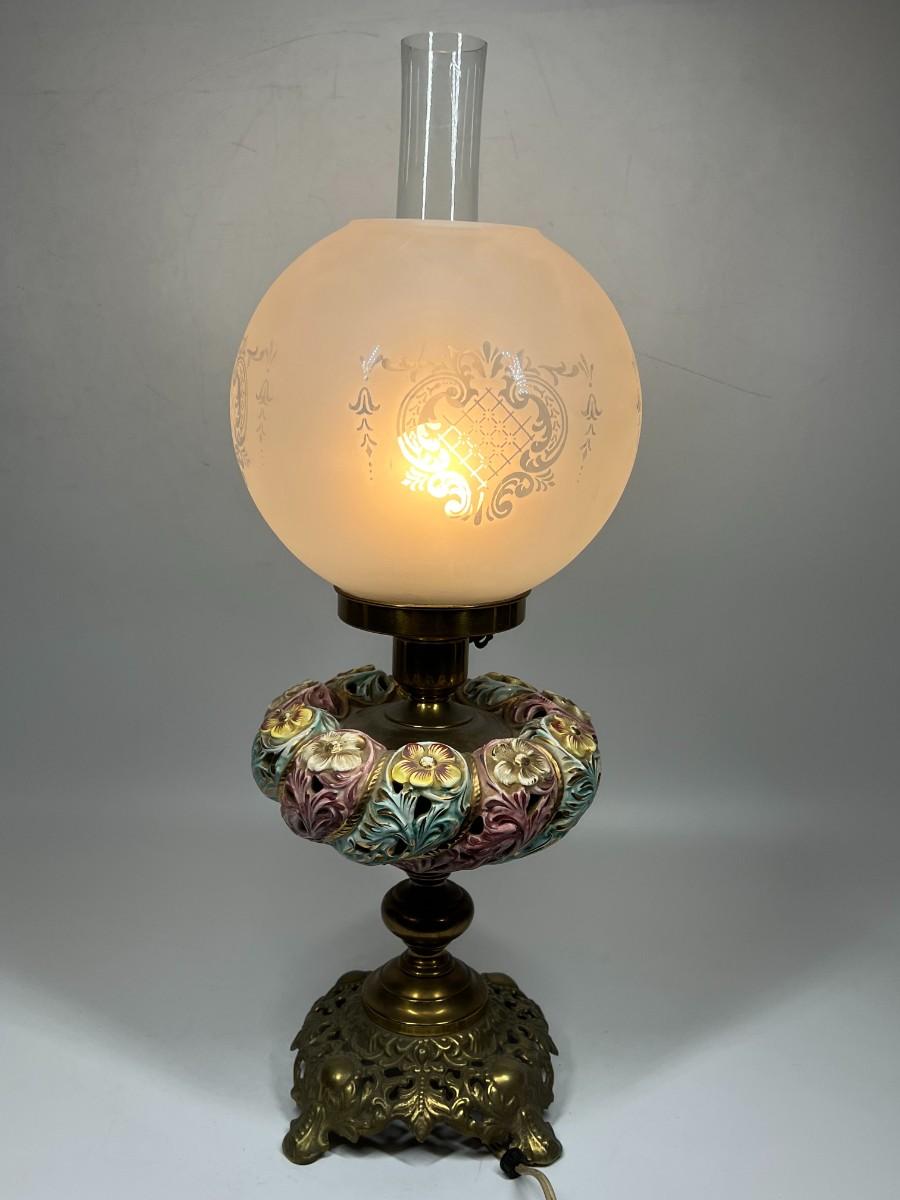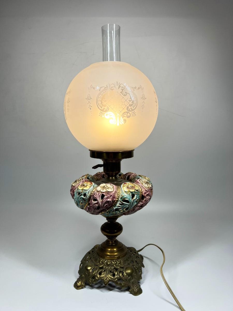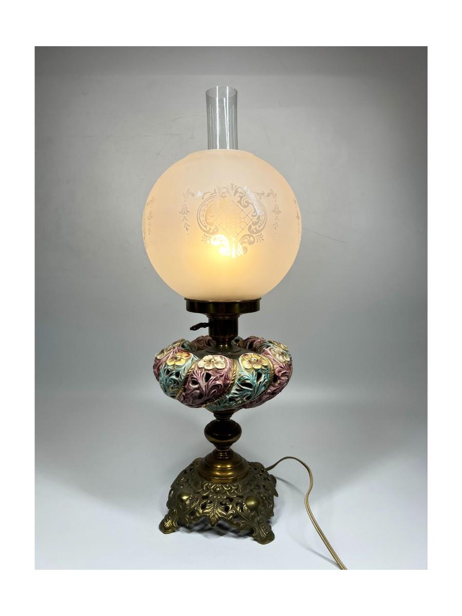 Table Lamp Vintage Glass Globe Electric Oil Lamp Brass French Styled Colorful Flowers Desk