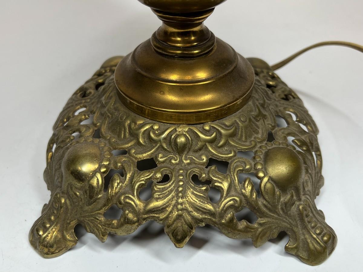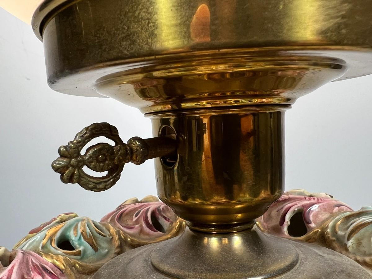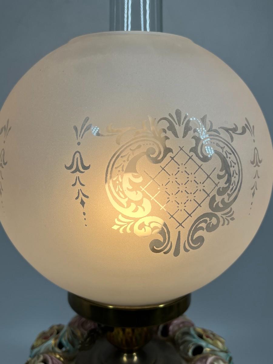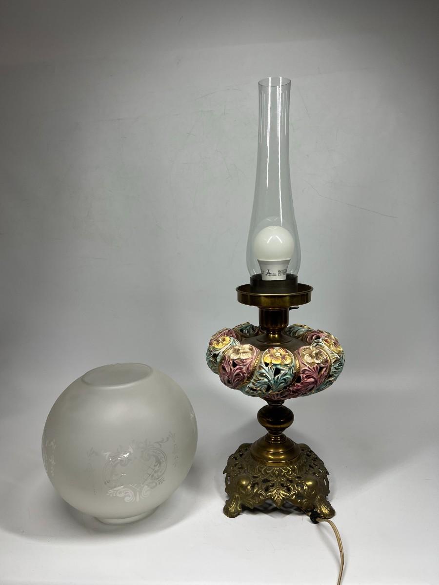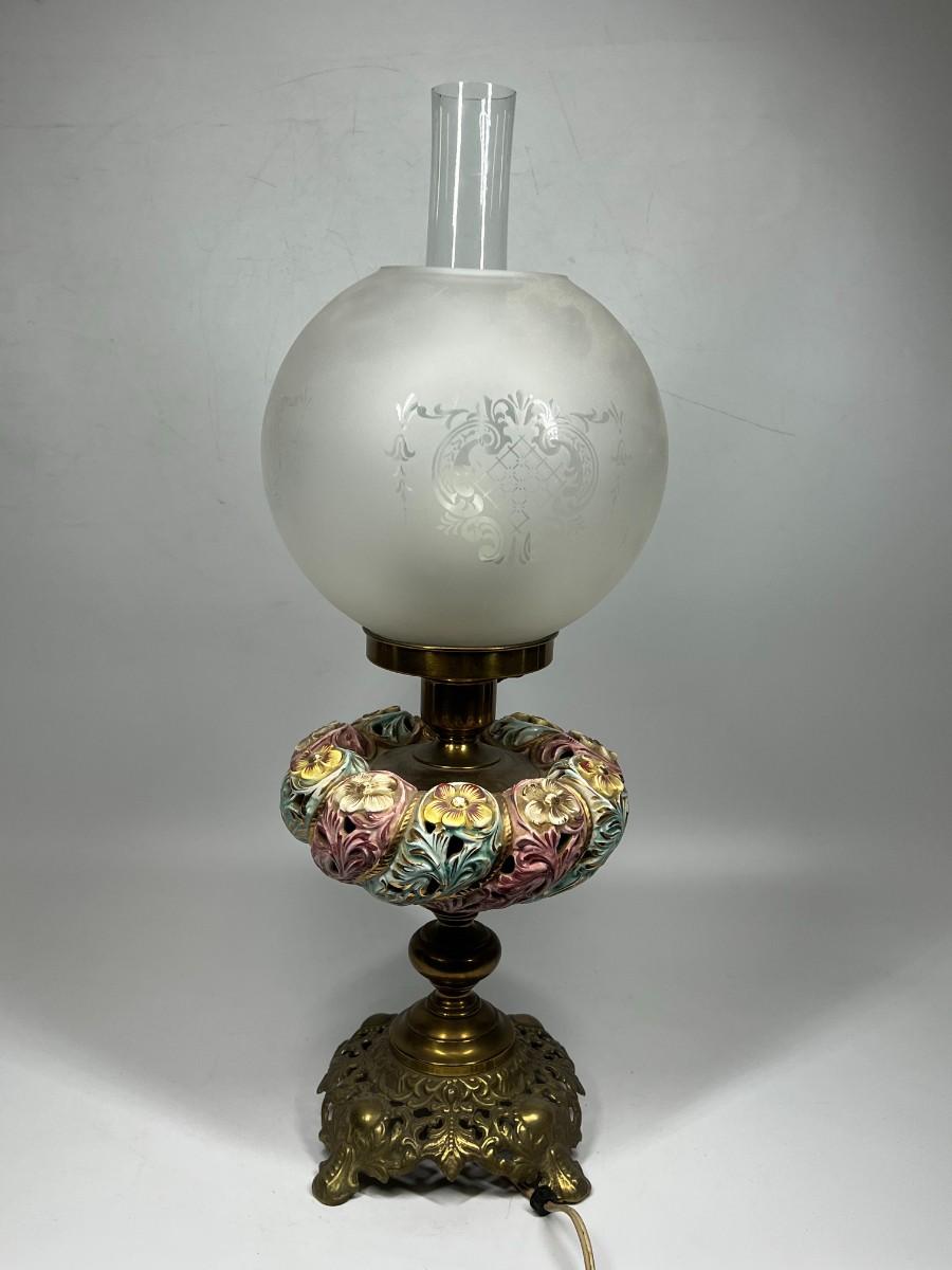 Table Lamp Vintage Glass Globe Electric Oil Lamp Brass French Styled Colorful Flowers Desk