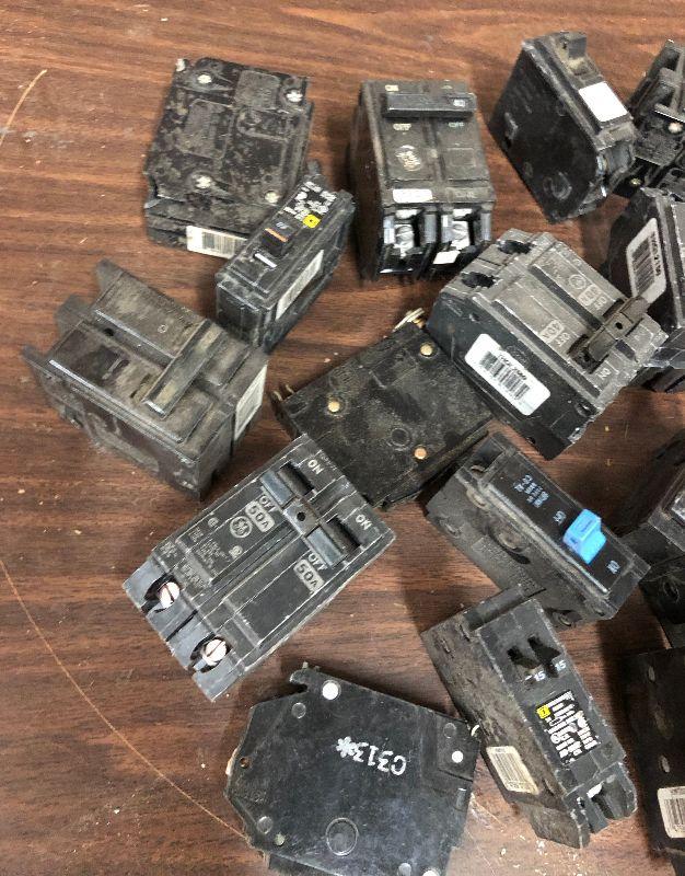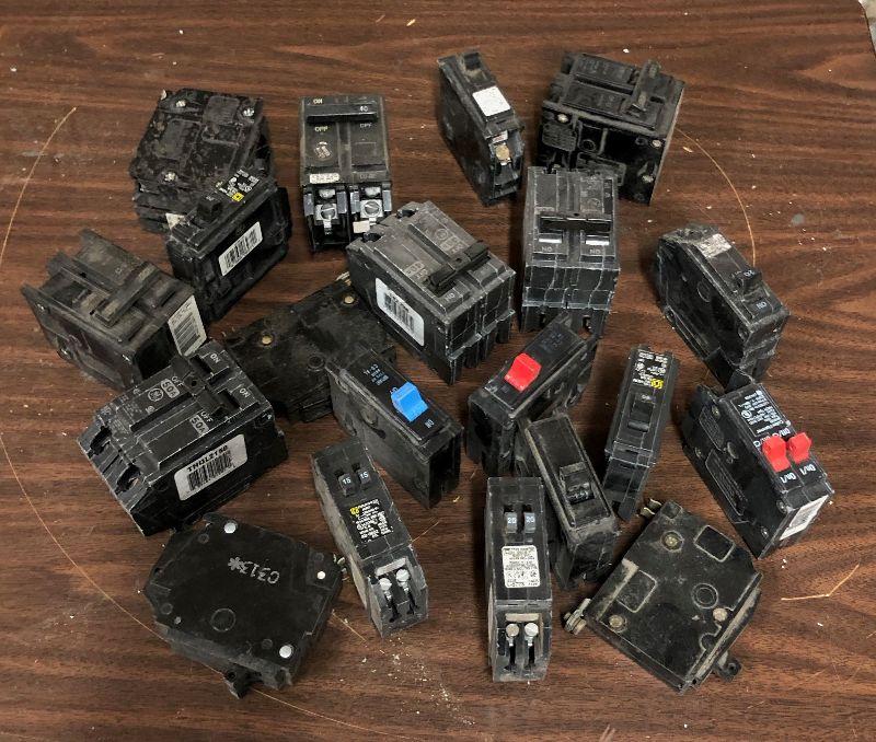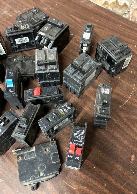 Here is a lot of GE and Square D electrical circuit breakers...as shown...