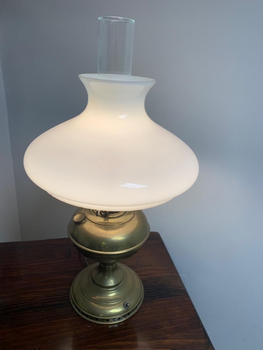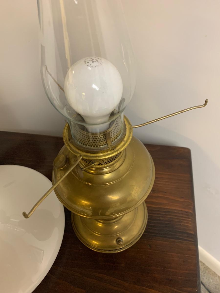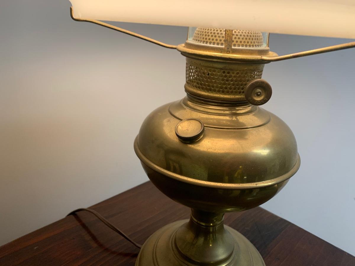 Vintage Electrified Brass Glass Shade Large Oil Lamp