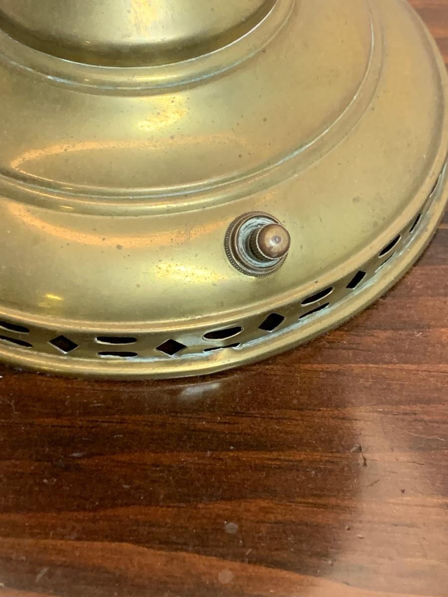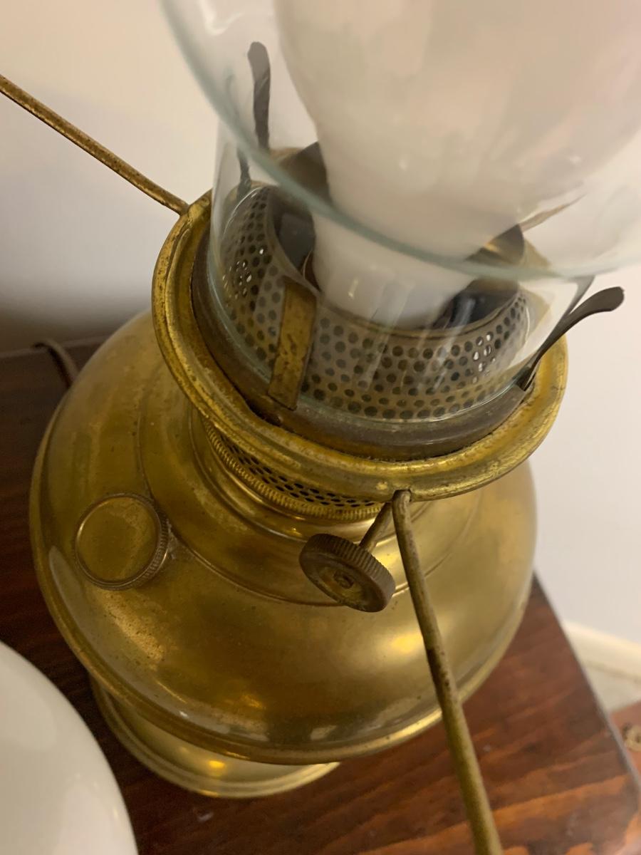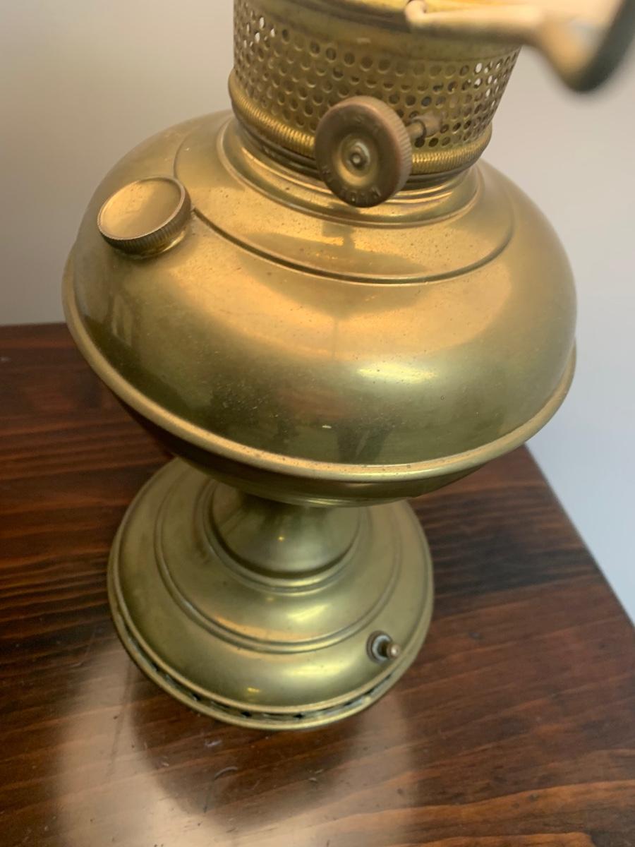 Vintage Electrified Brass Glass Shade Large Oil Lamp