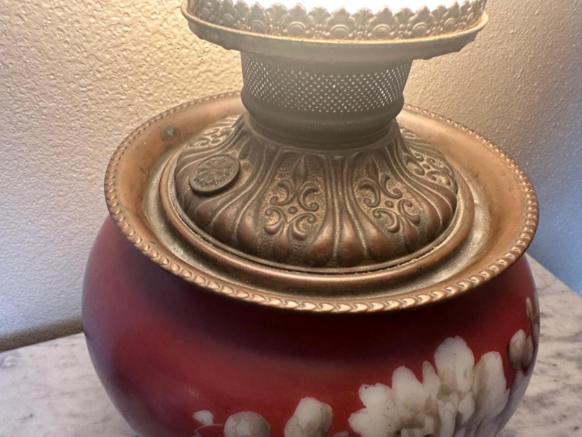 Vintage Electrified Parlor Lamp with Hand-Painted Floral Glass