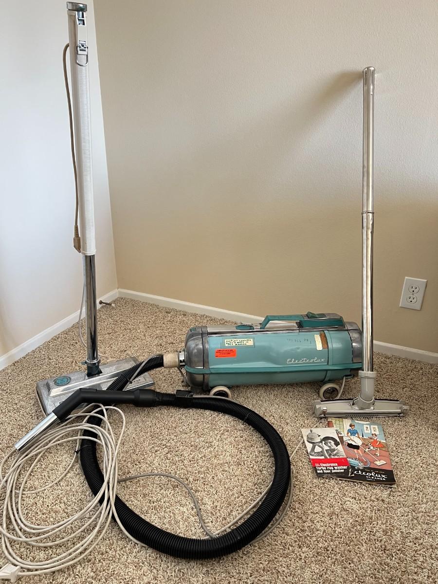 Vintage Electrolux Automatic Model G Canister Vacuum Cleaner with Attachments & Instructions
