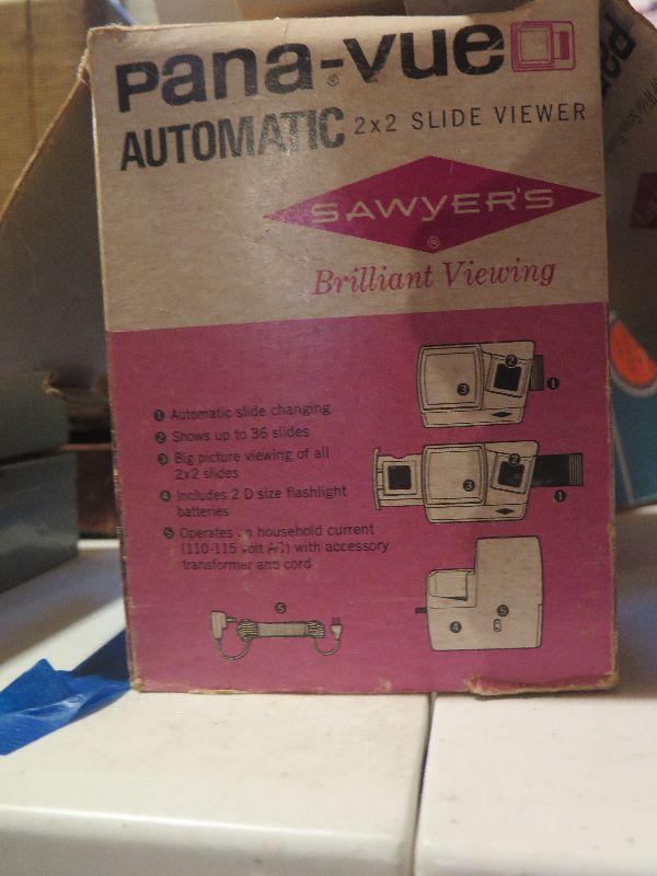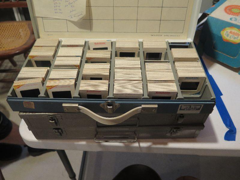 Slide projector, lights, slides and cases, and more. Untested. **Please read Terms and Conditions before placing a bid. Pick up is Wednesday July 31st, from 2 pm to 7pm in Sicklerville. All sales are final. All sales are as is, where is. Please review all photos. Any props included in photos are not included in listing. All measurements are approximate.