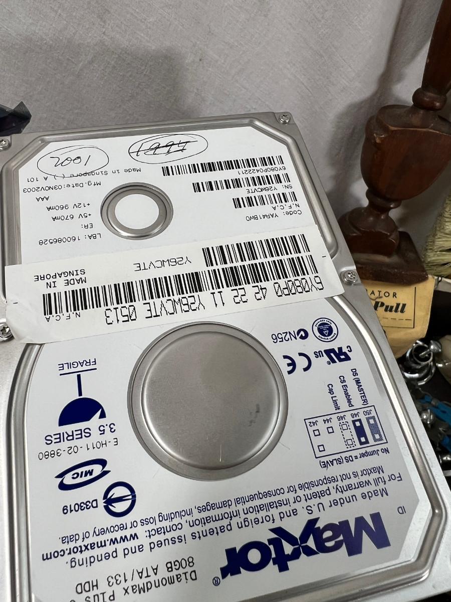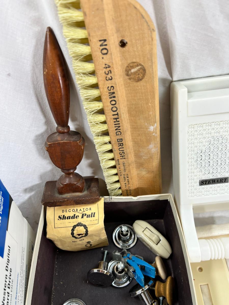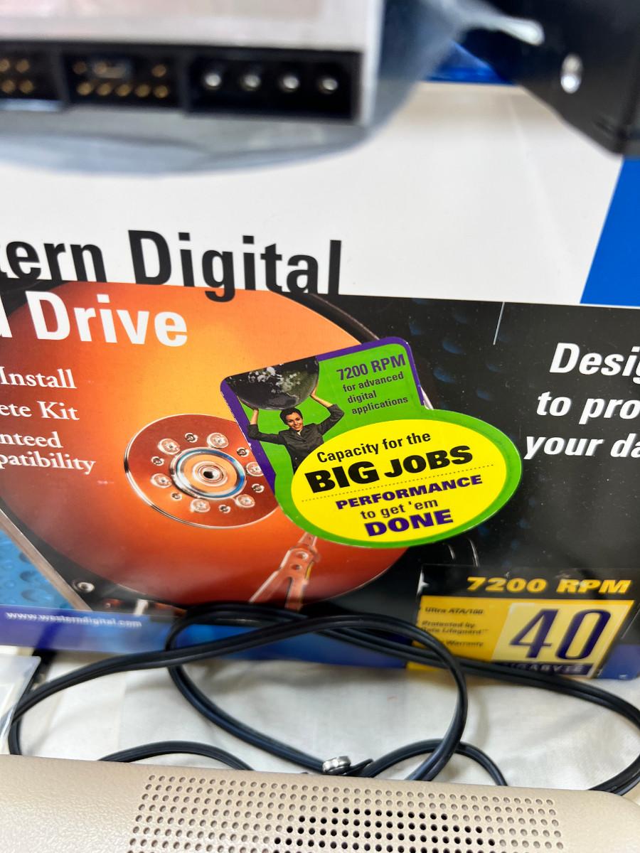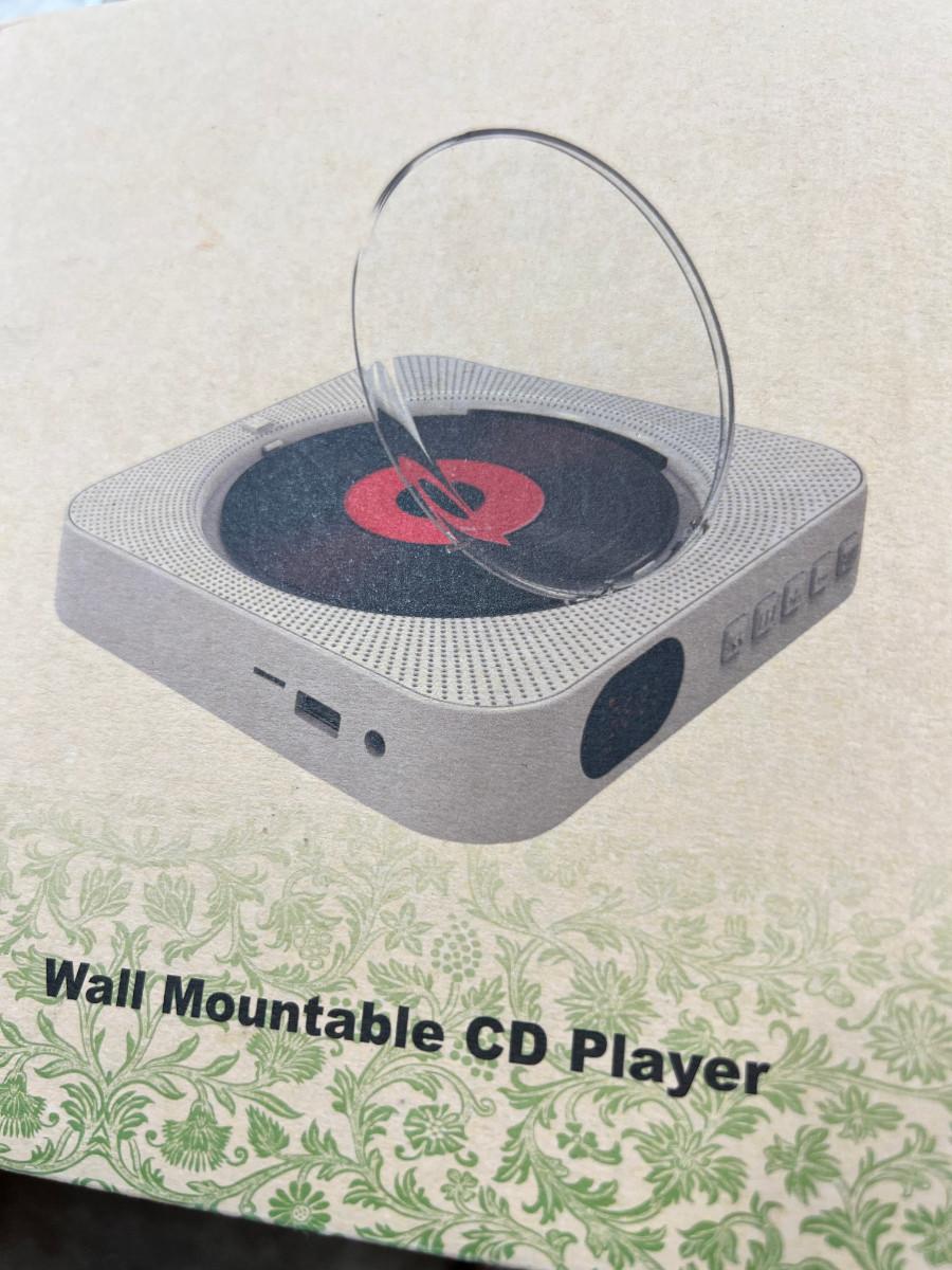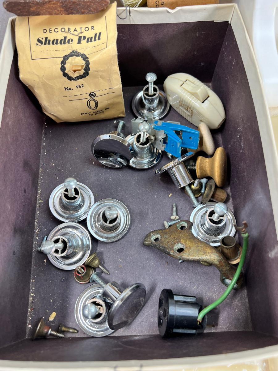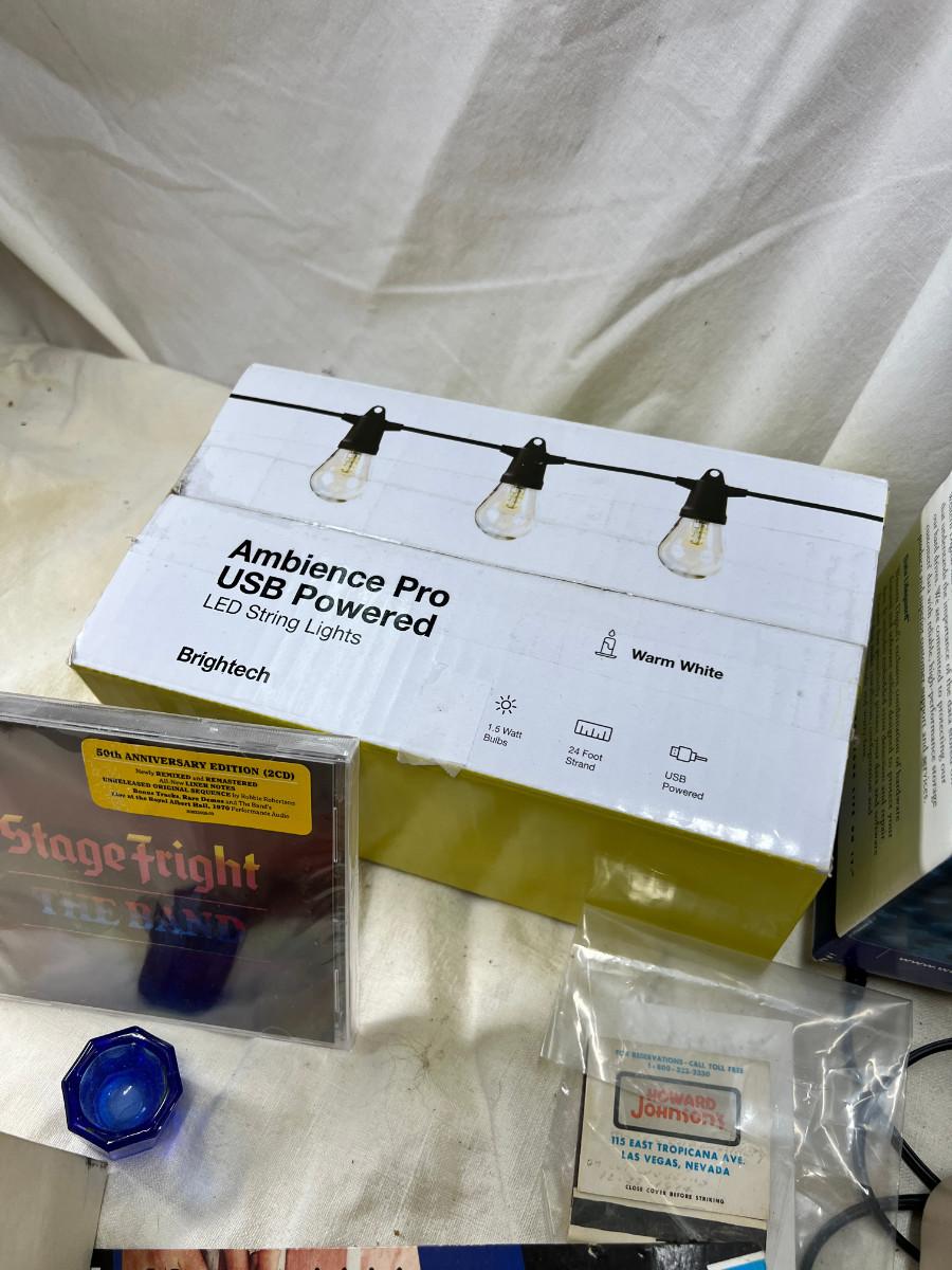 plastic covers in white and almond, Sony dream machine clock radio ( untested) Wall mounted CD player and CD working, NOS shower radio, 2 hard rives, plug strips, and various attachments.