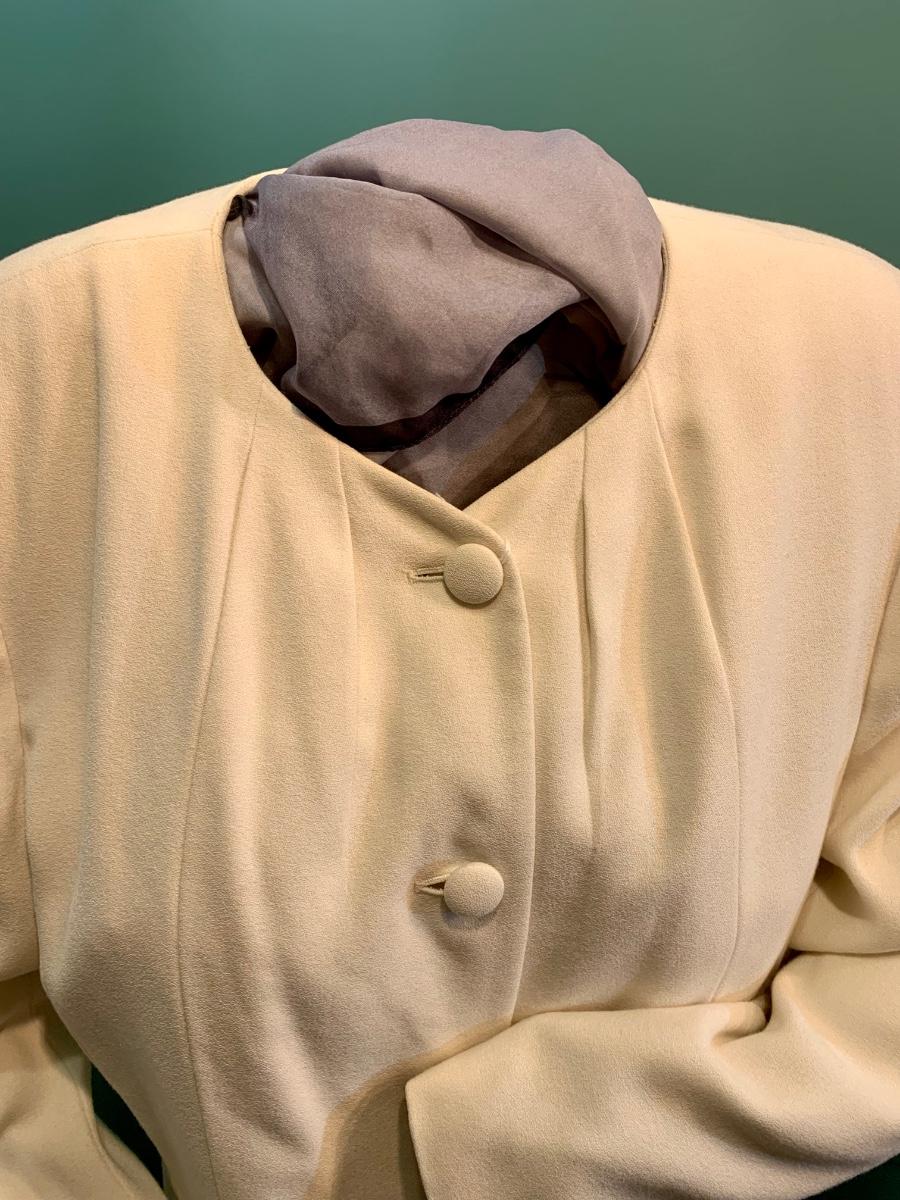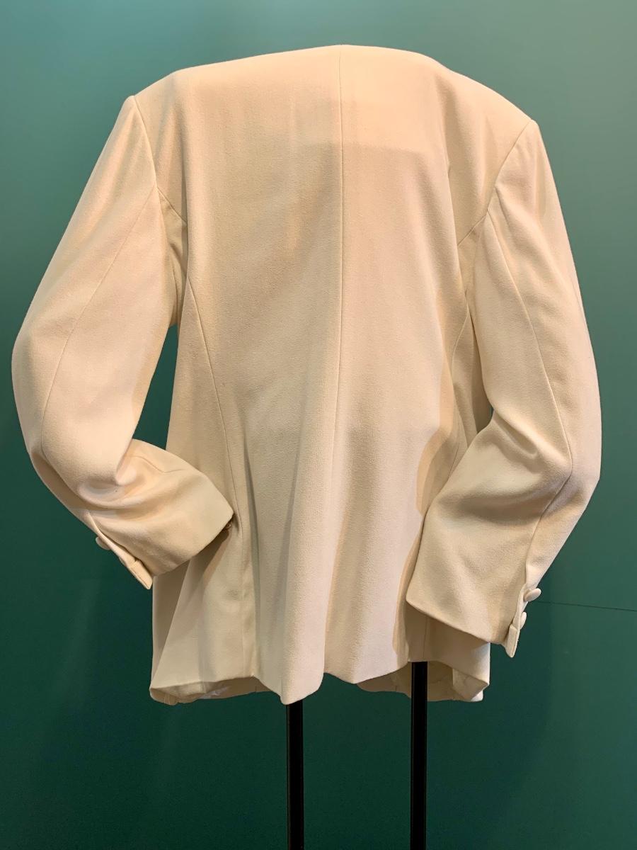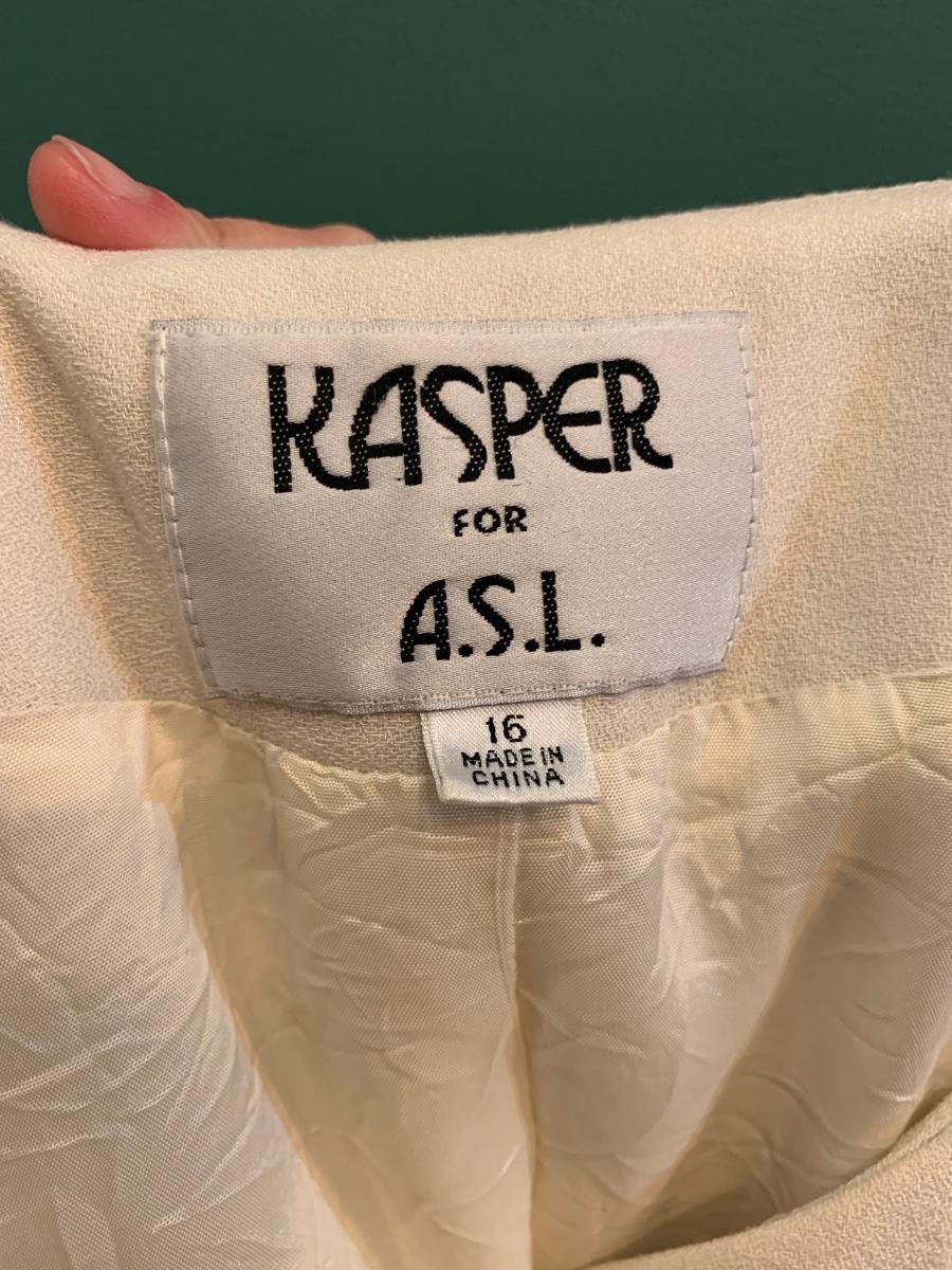 Introducing a timeless treasure for your collection: a Kaspar for ALS cream women's vintage 4-button blazer in size 16. This classic piece exudes elegance and sophistication, perfect for adding a touch of vintage charm to your wardrobe. Don't miss the chance to make this stylish blazer yours. Accessories not included.