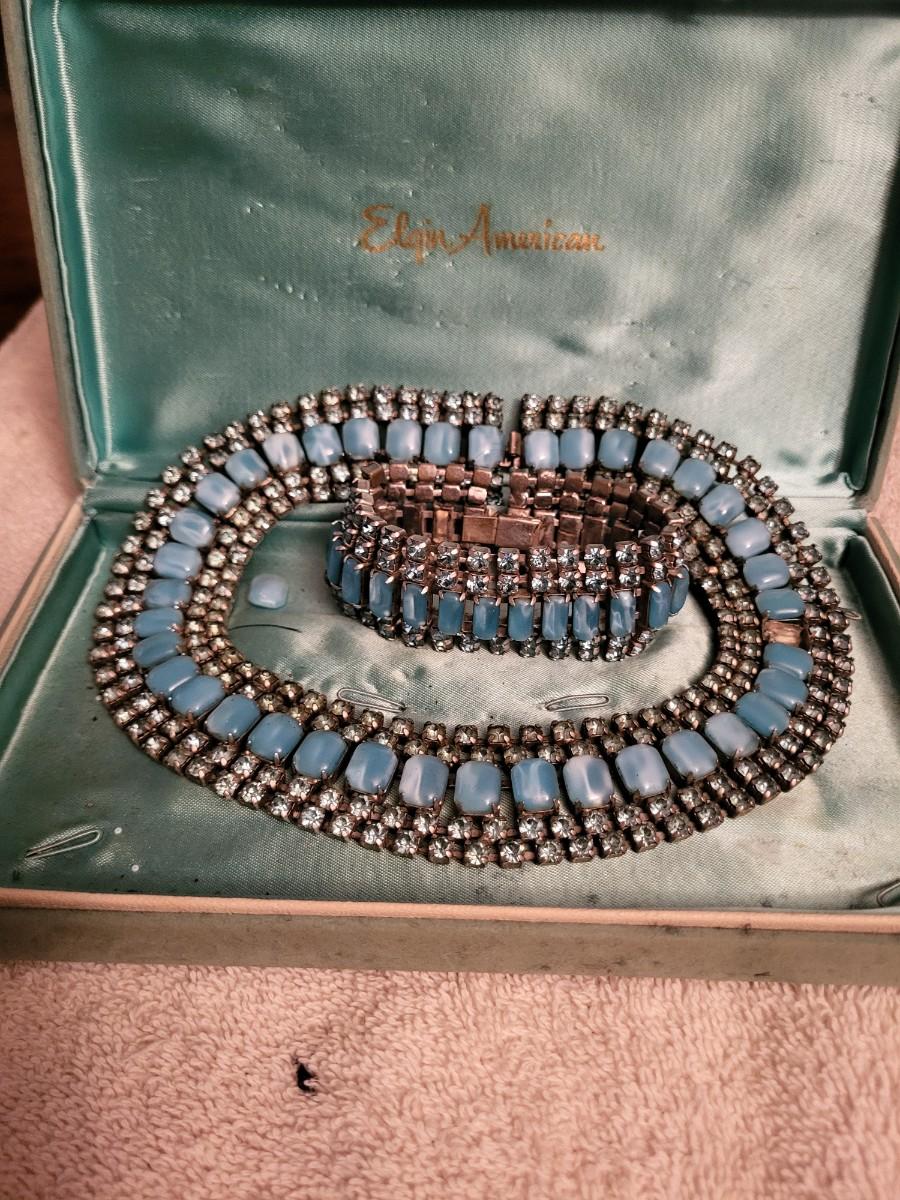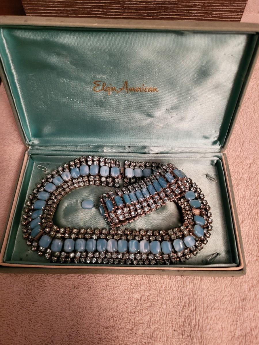 VINTAGE ELGIN AMERICAN NECKLACE AND BRACELET (1 LOOSE STONE. INCLUDED)