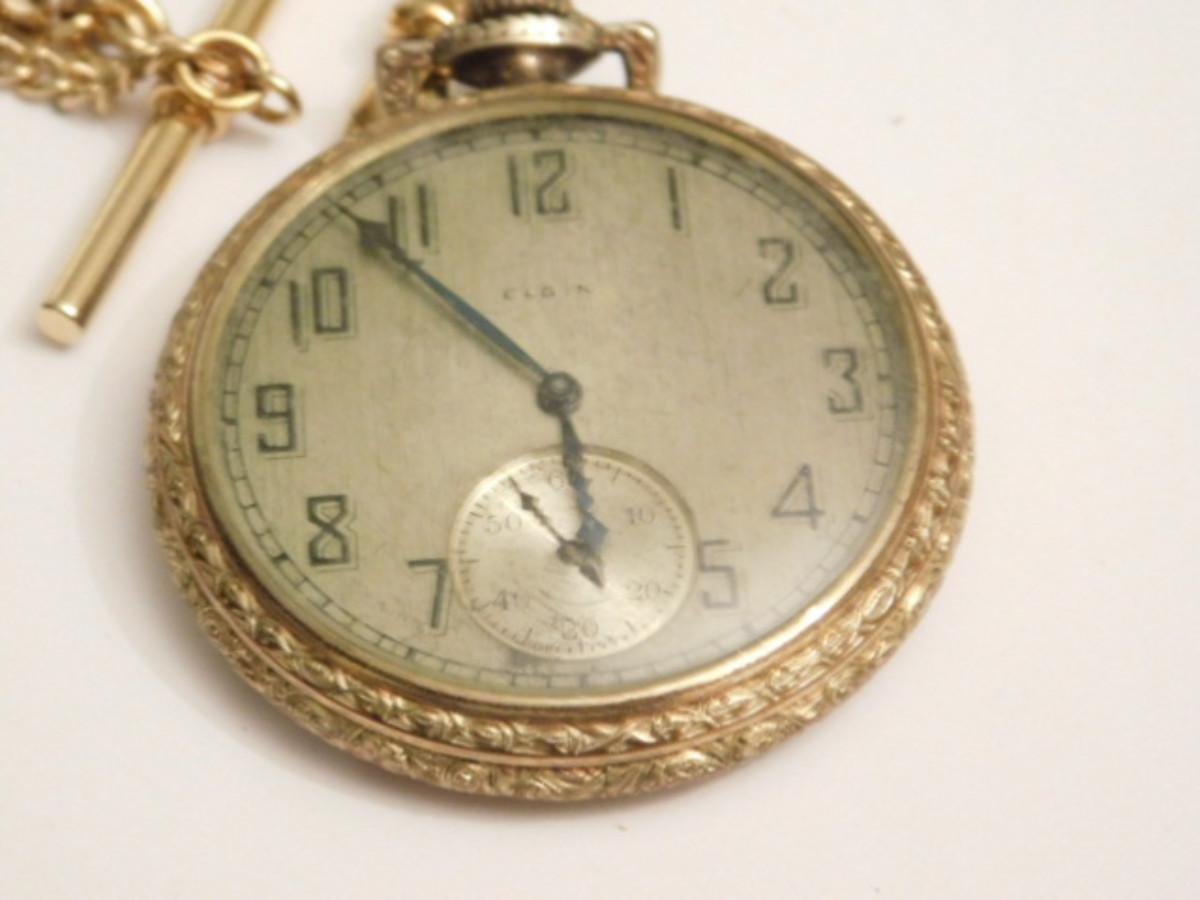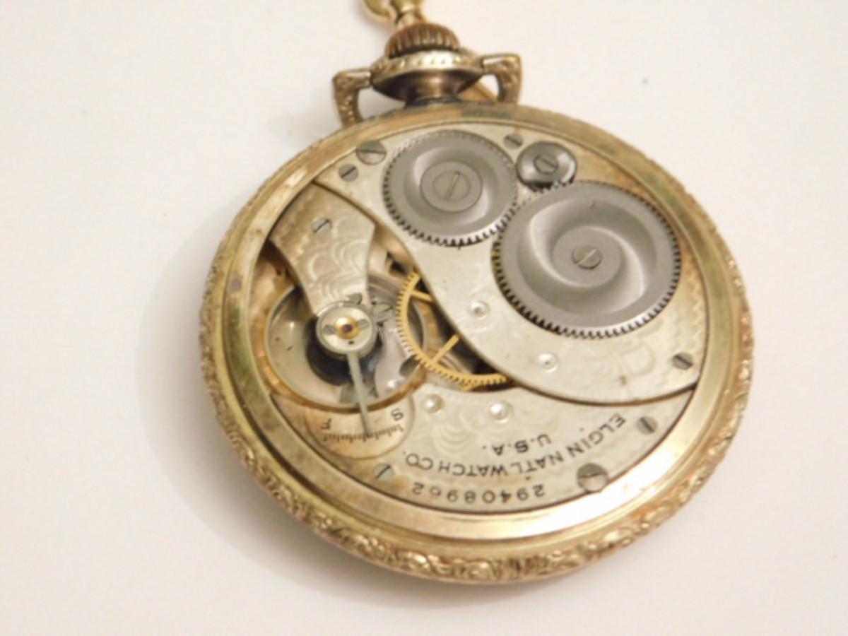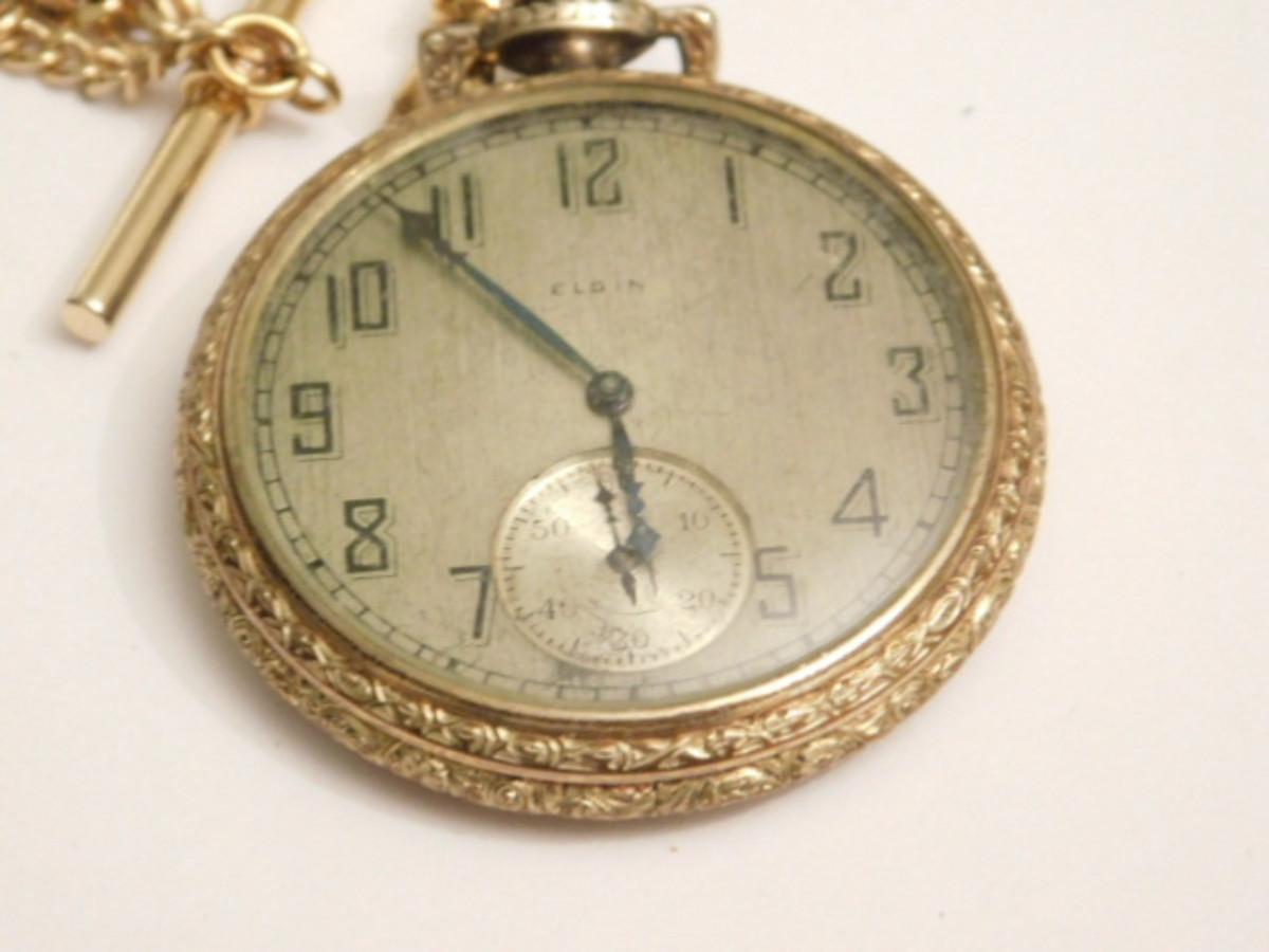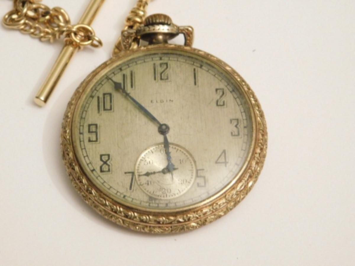 Vintage Elgin Natl. Watch Co. Pocket Watch with Gold Tone Plated Case and Chain