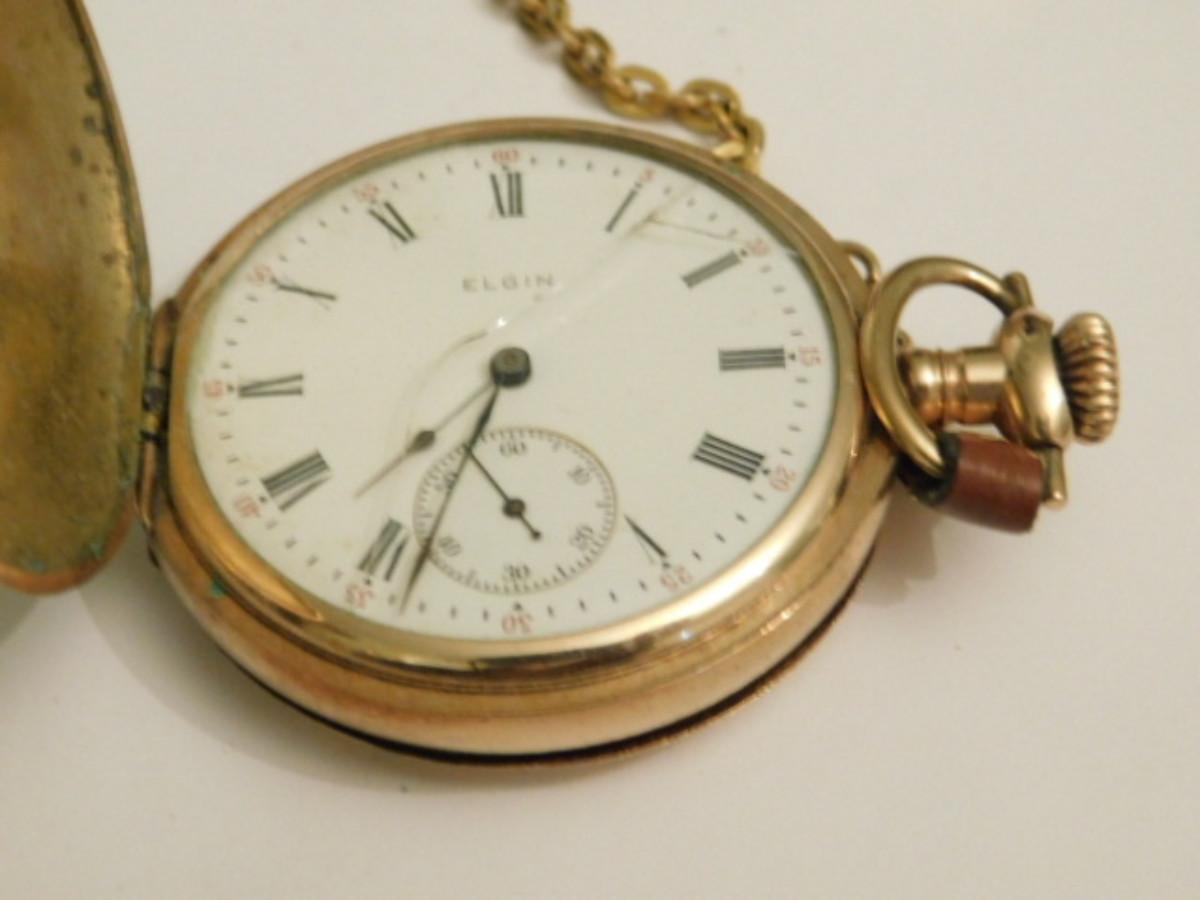 Vintage Elgin Natl. Watch Co. Pocket Watch with Gold Tone Plated Flip Case and Chain. Winds but will not move second hand