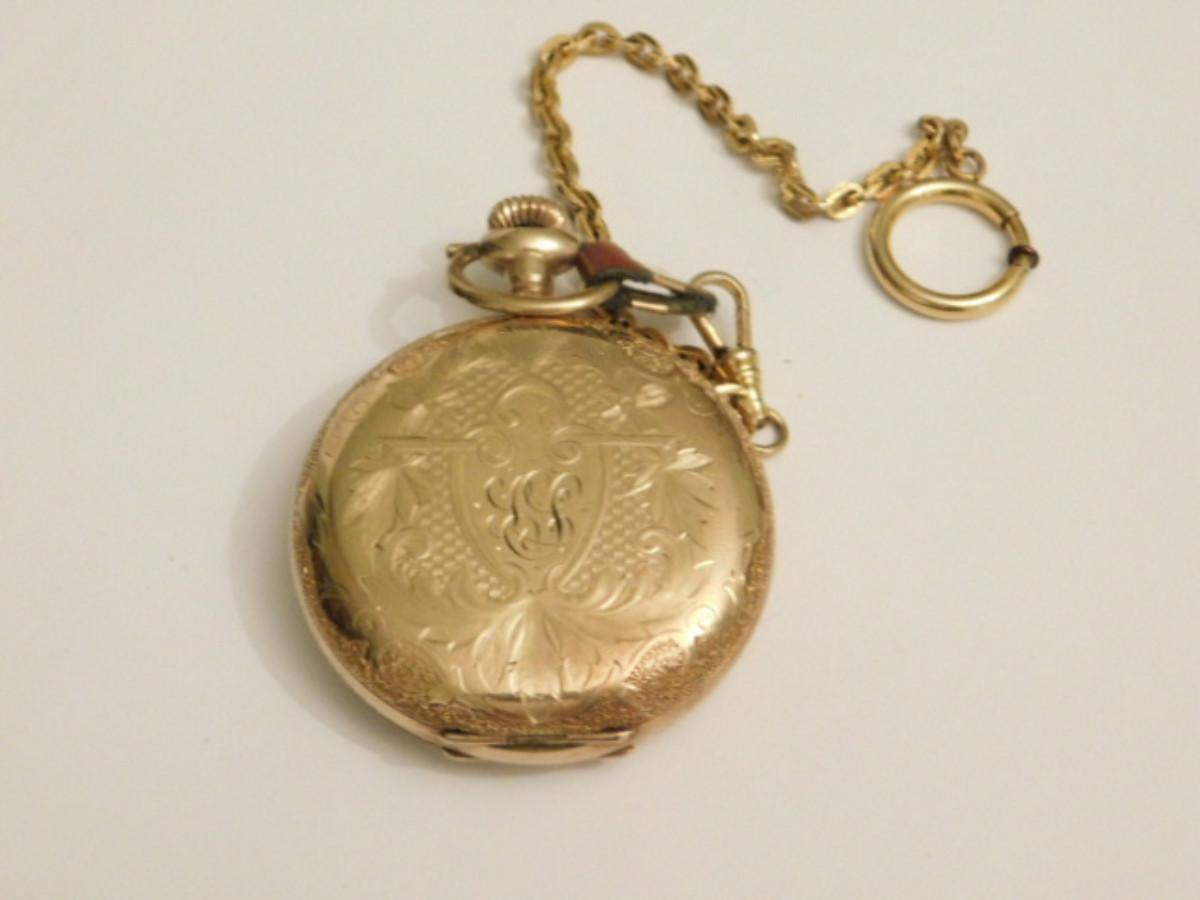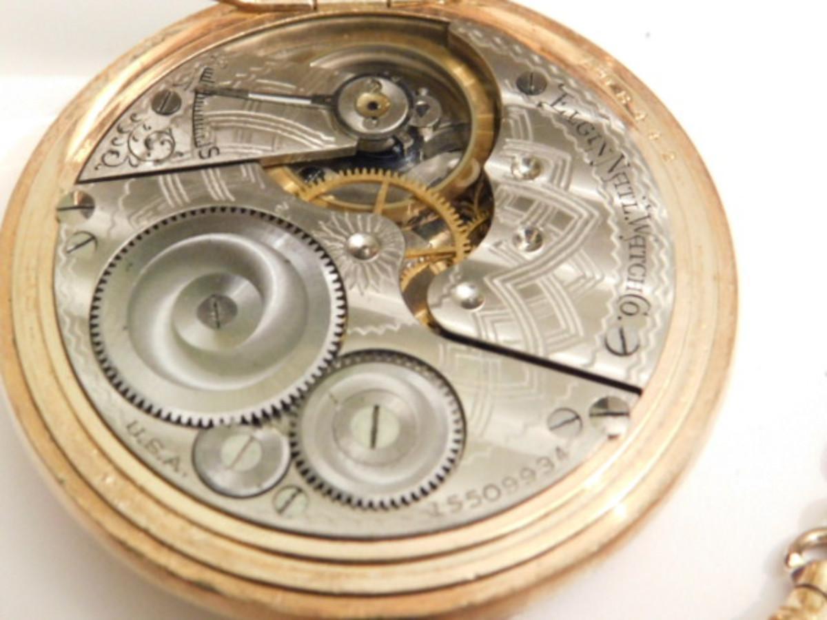 Vintage Elgin Natl. Watch Co. Pocket Watch with Gold Tone Plated Flip Case and Chain