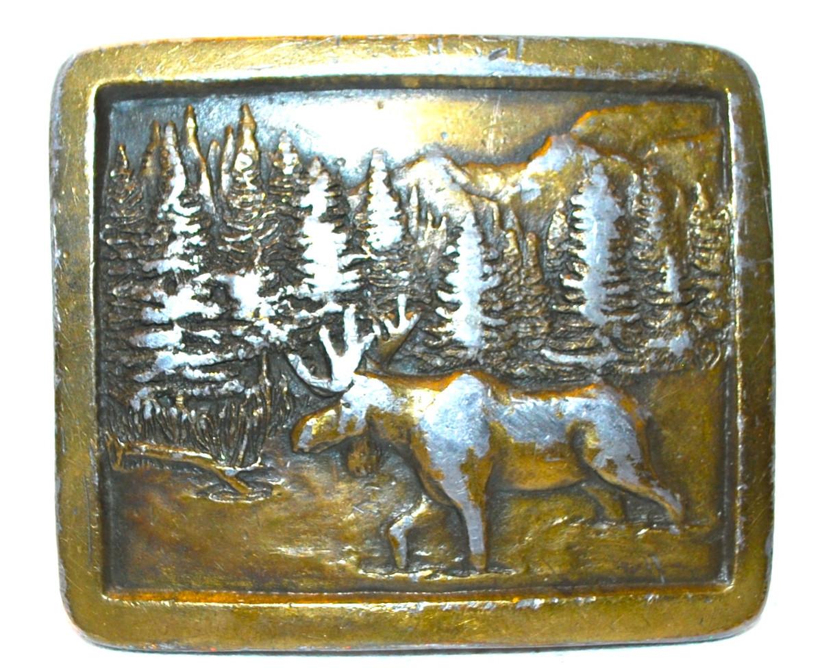 Vintage "Elk in the Forest" Belt Buckle 2¾" x 2¼"