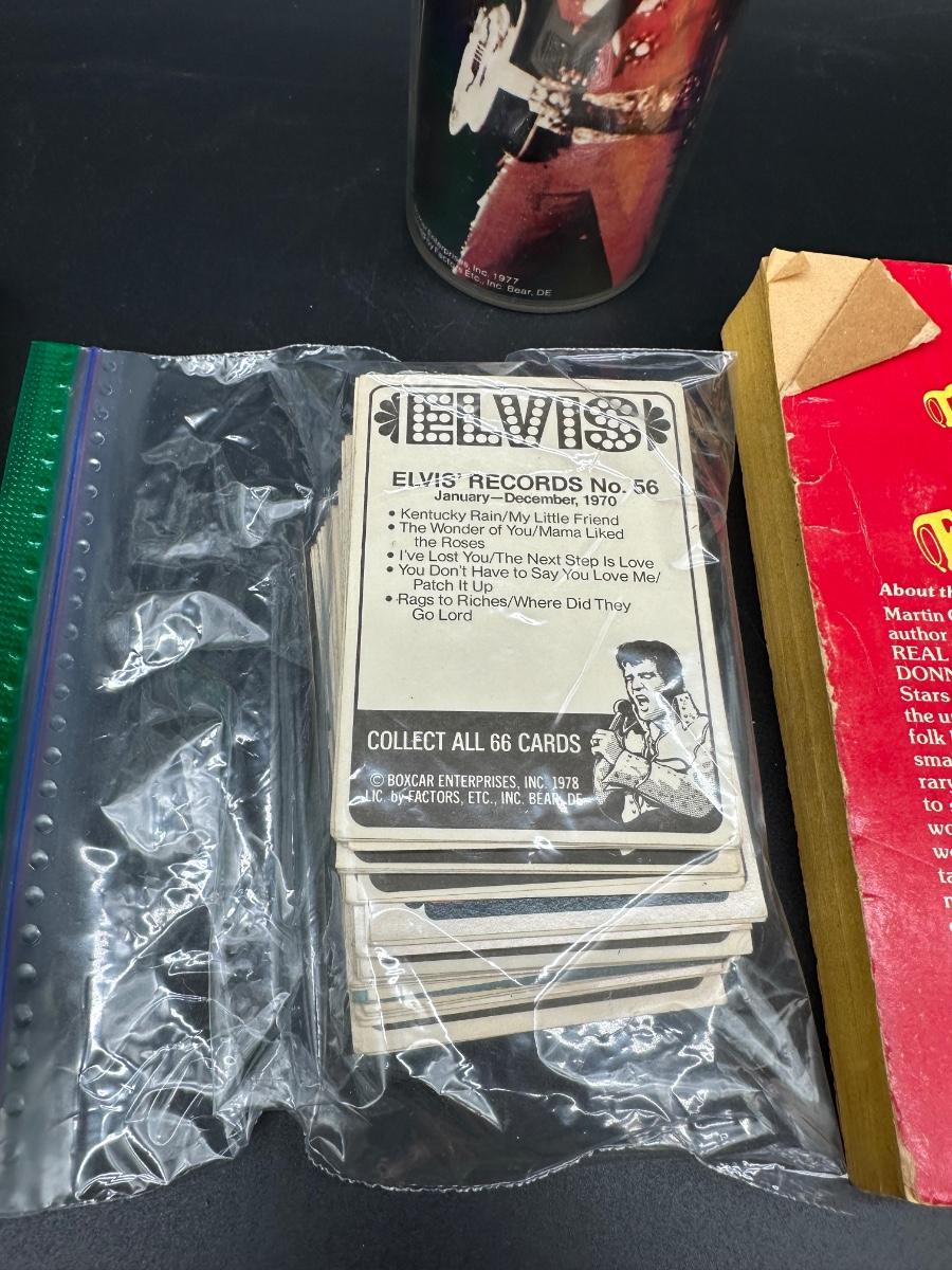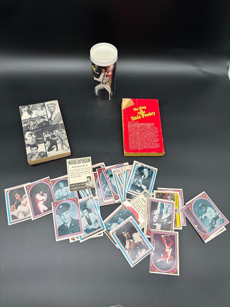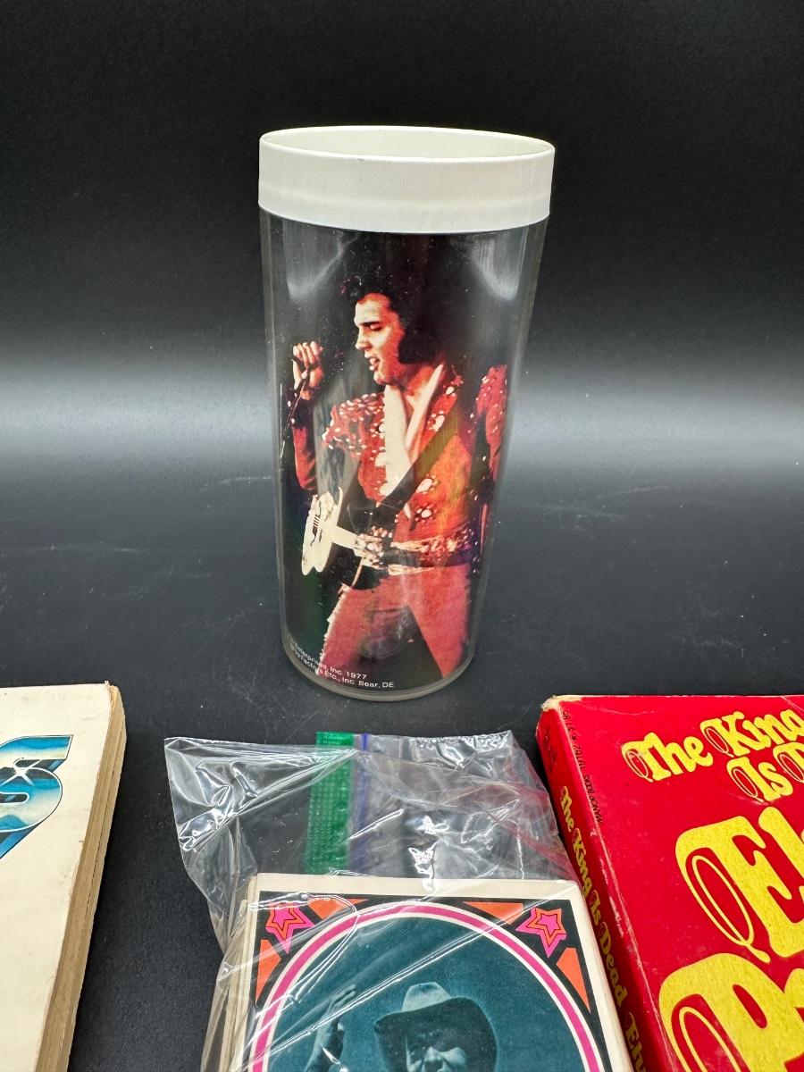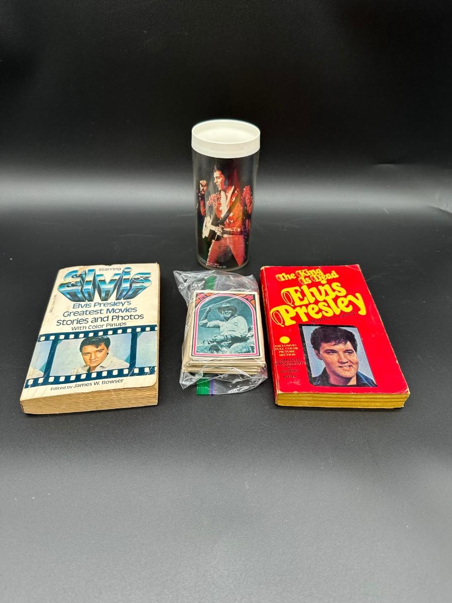 Vintage Elvis Presley Memorabilia Lot – Books, 1970s Trading Cards & Concert Tumbler