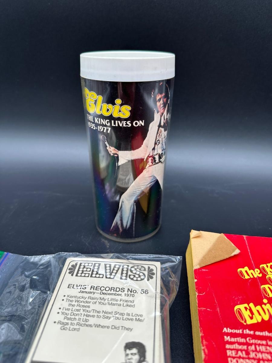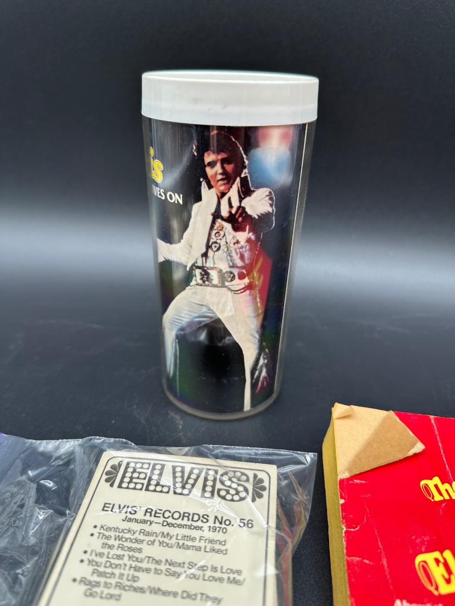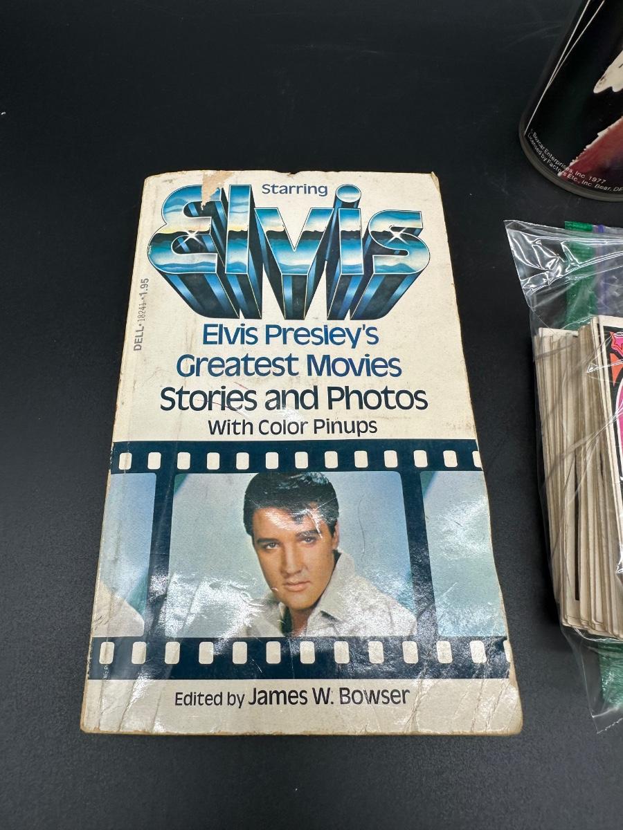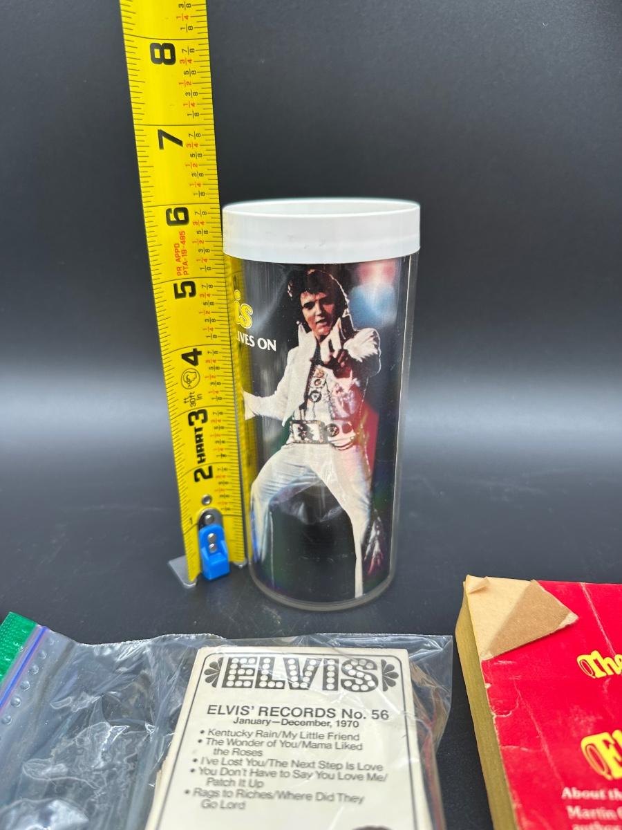 Vintage Elvis Presley Memorabilia Lot – Books, 1970s Trading Cards & Concert Tumbler