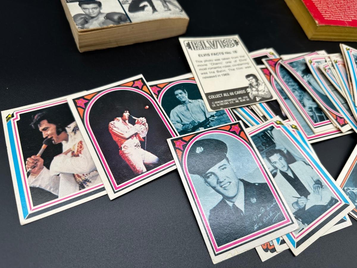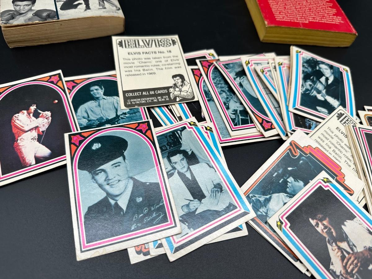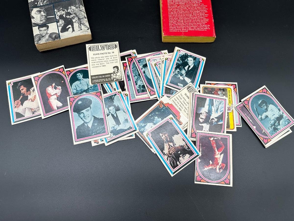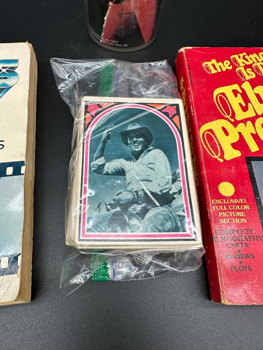 Vintage Elvis Presley Memorabilia Lot – Books, 1970s Trading Cards & Concert Tumbler