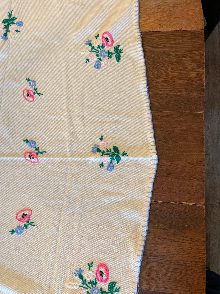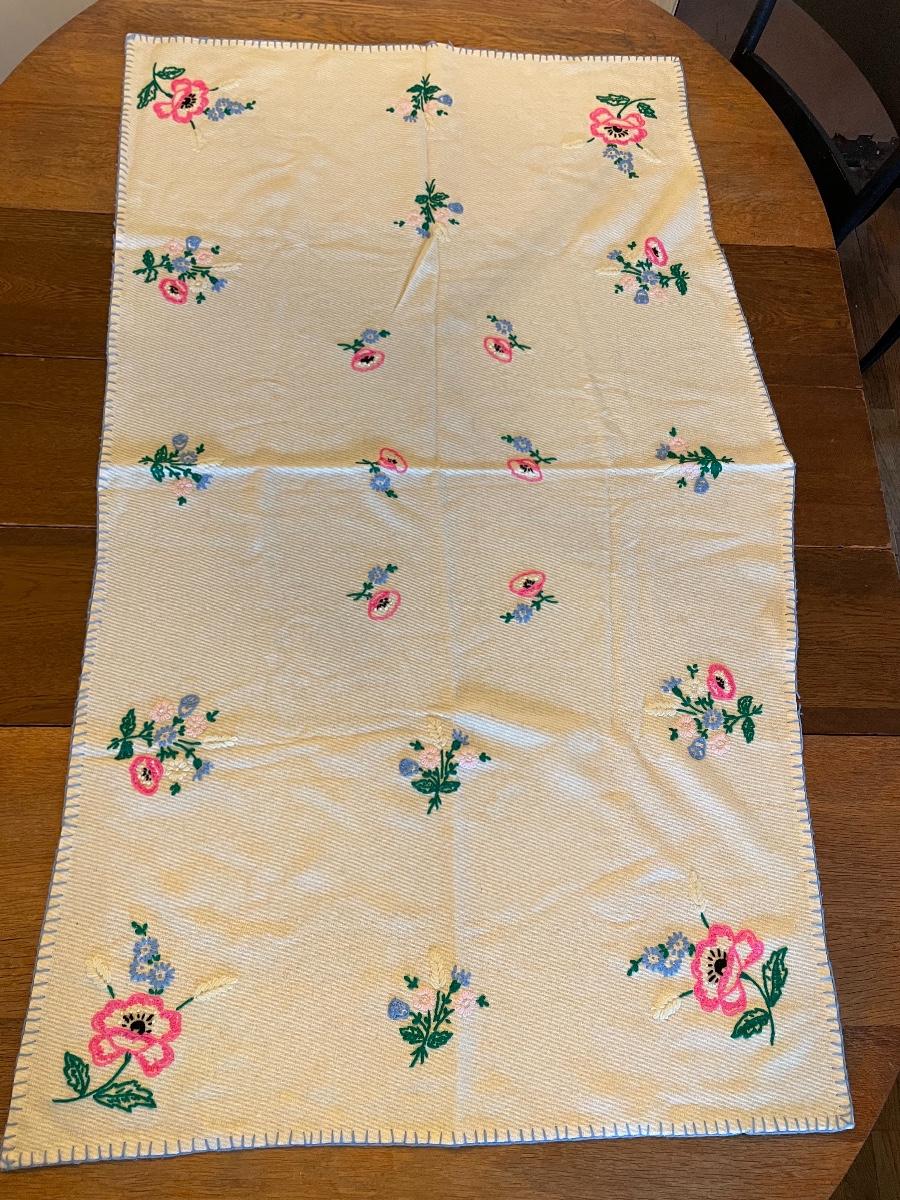 VINTAGE EMBROIDERED FLORAL BLANKET
