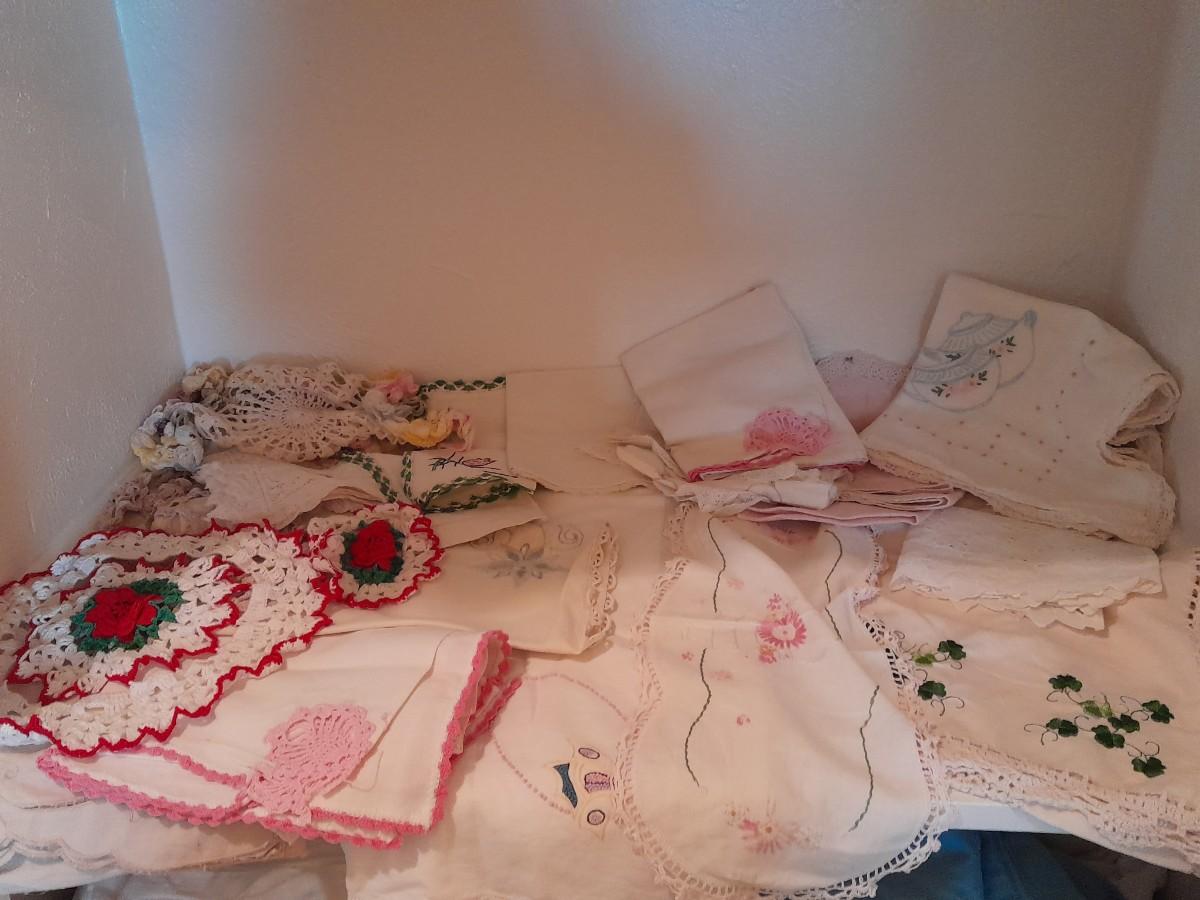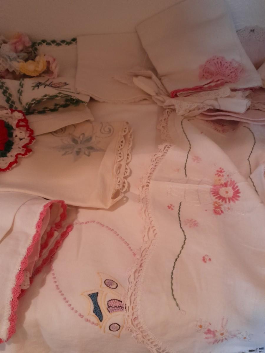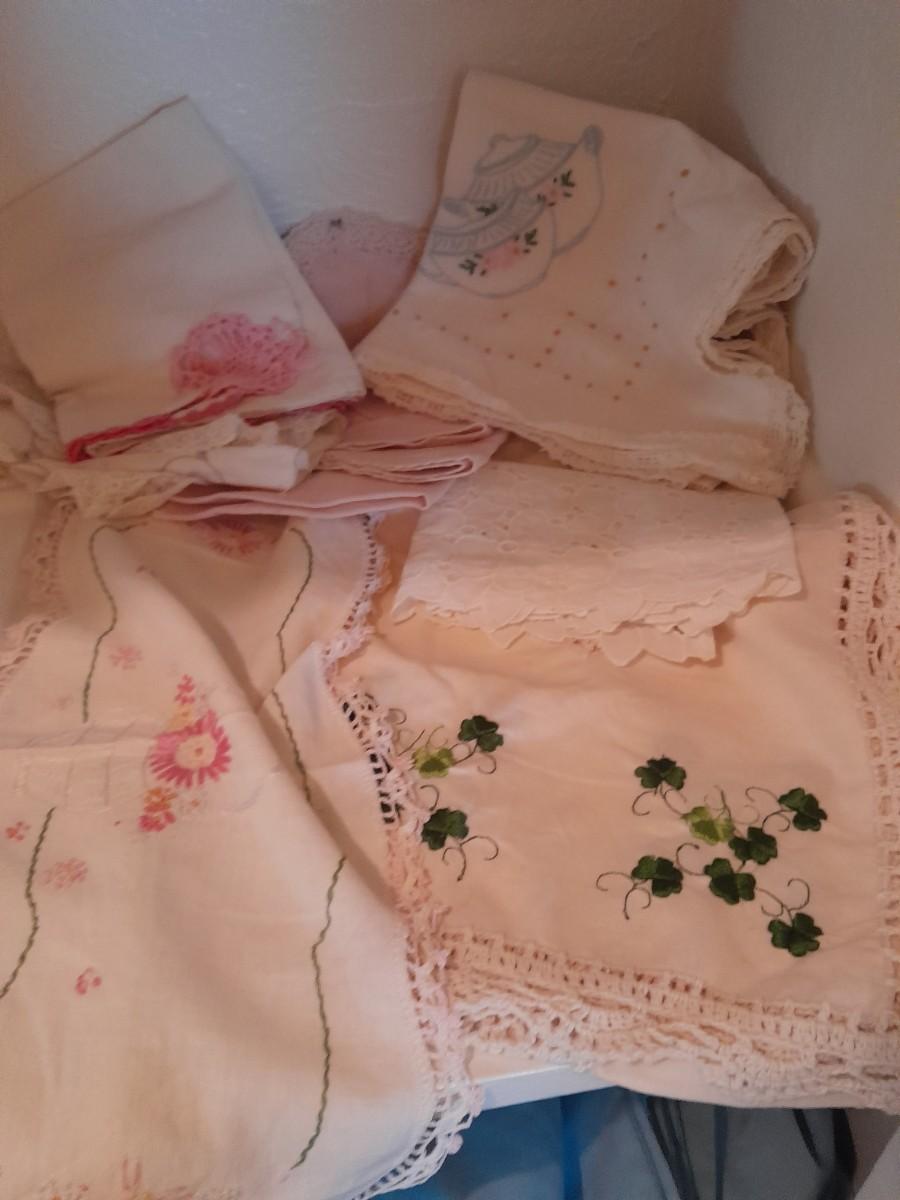 VINTAGE EMBROIDERED LINENS AND DOILIES