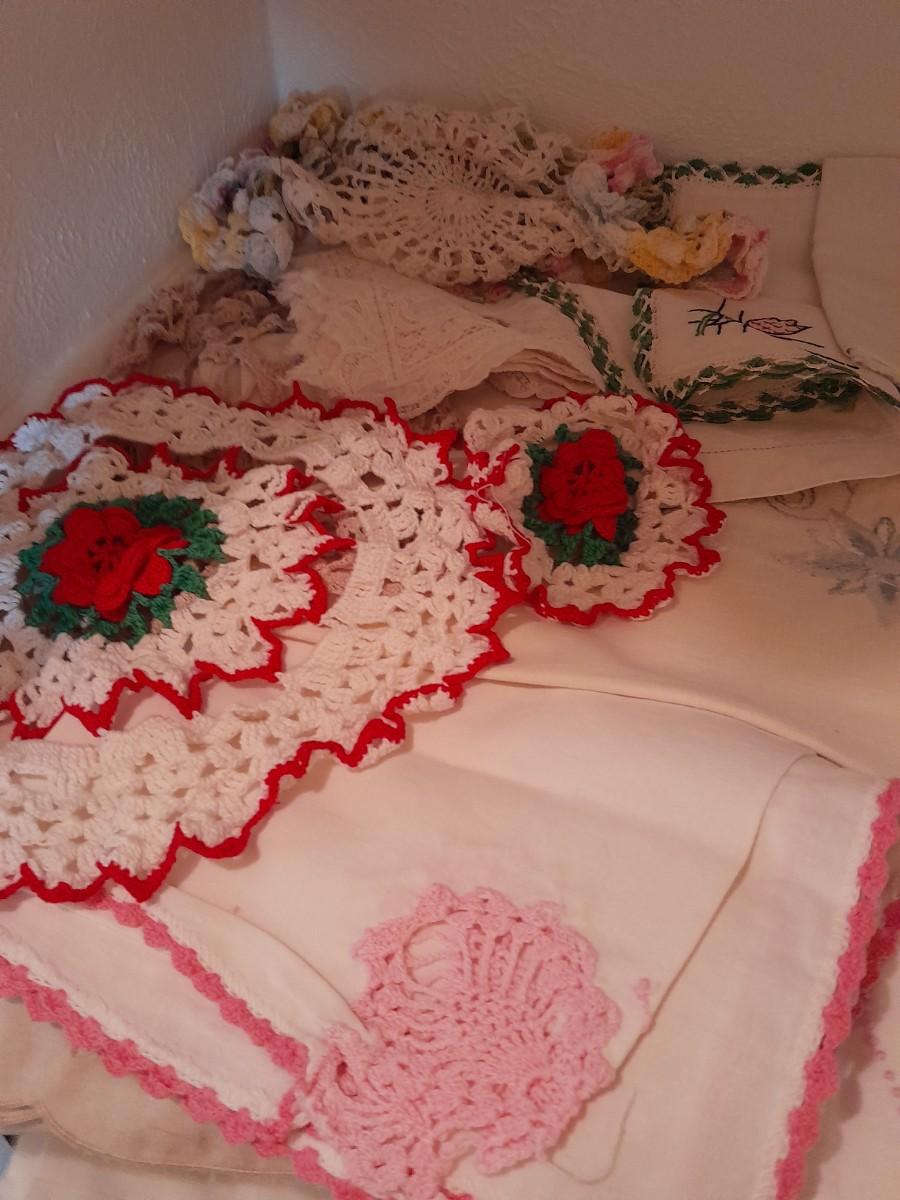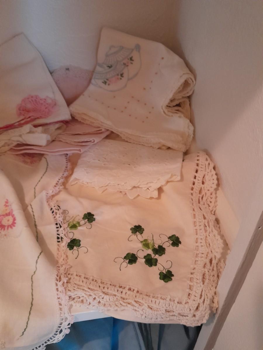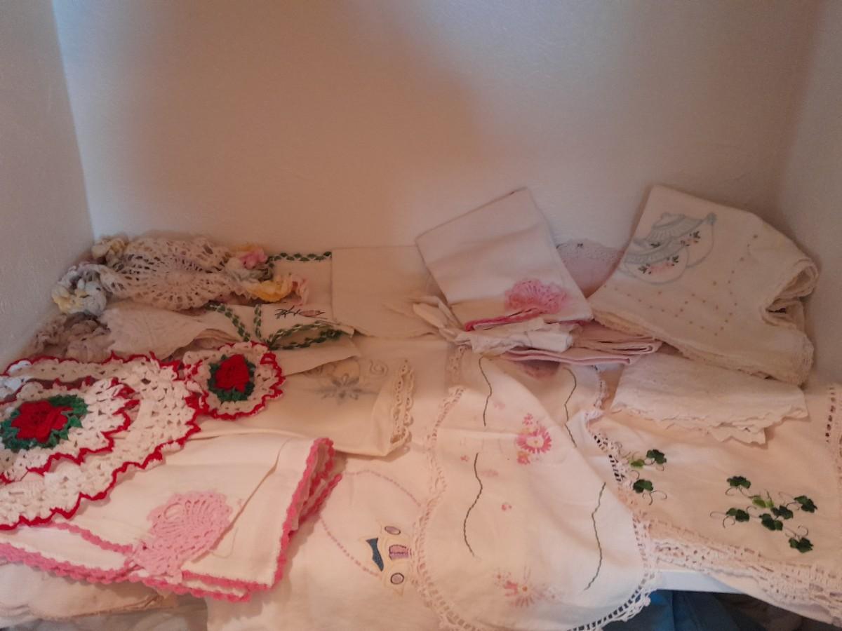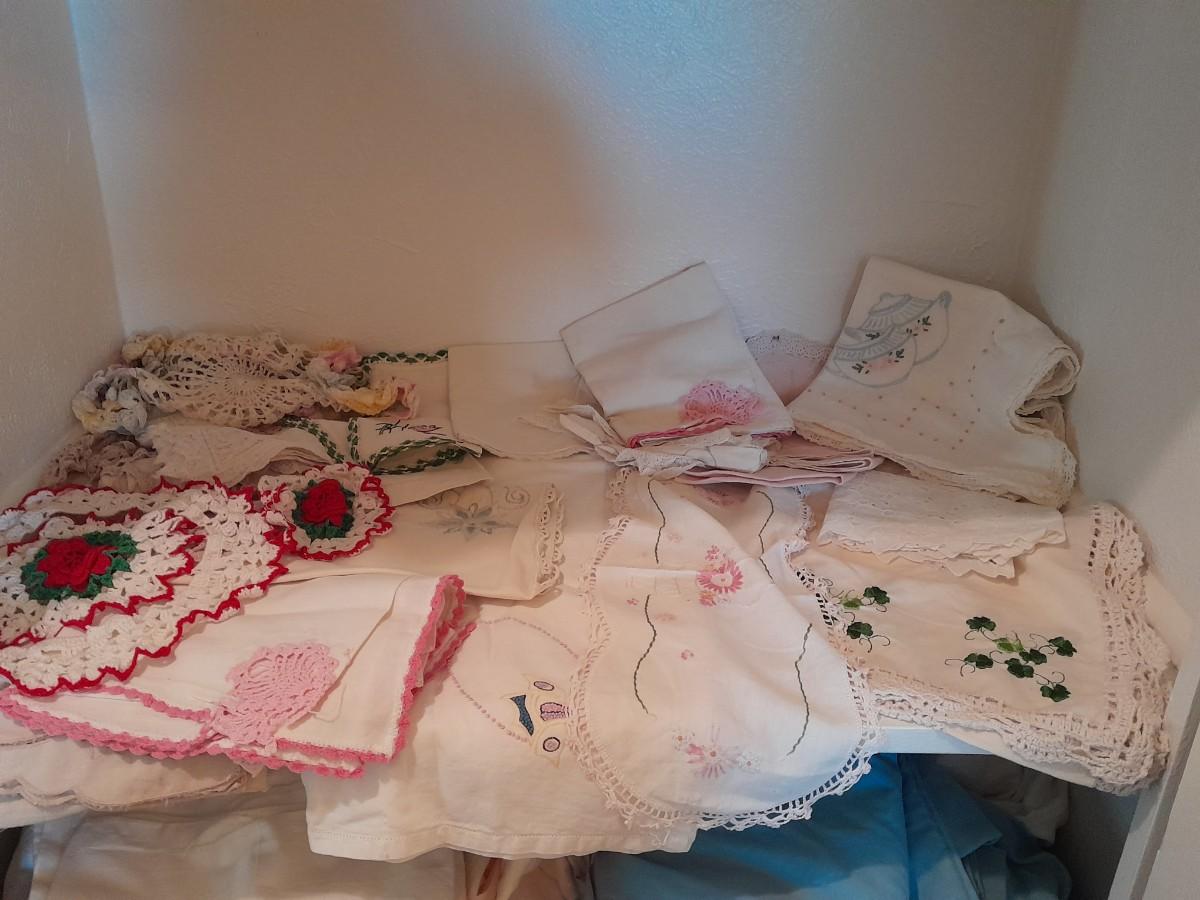 VINTAGE EMBROIDERED LINENS AND DOILIES