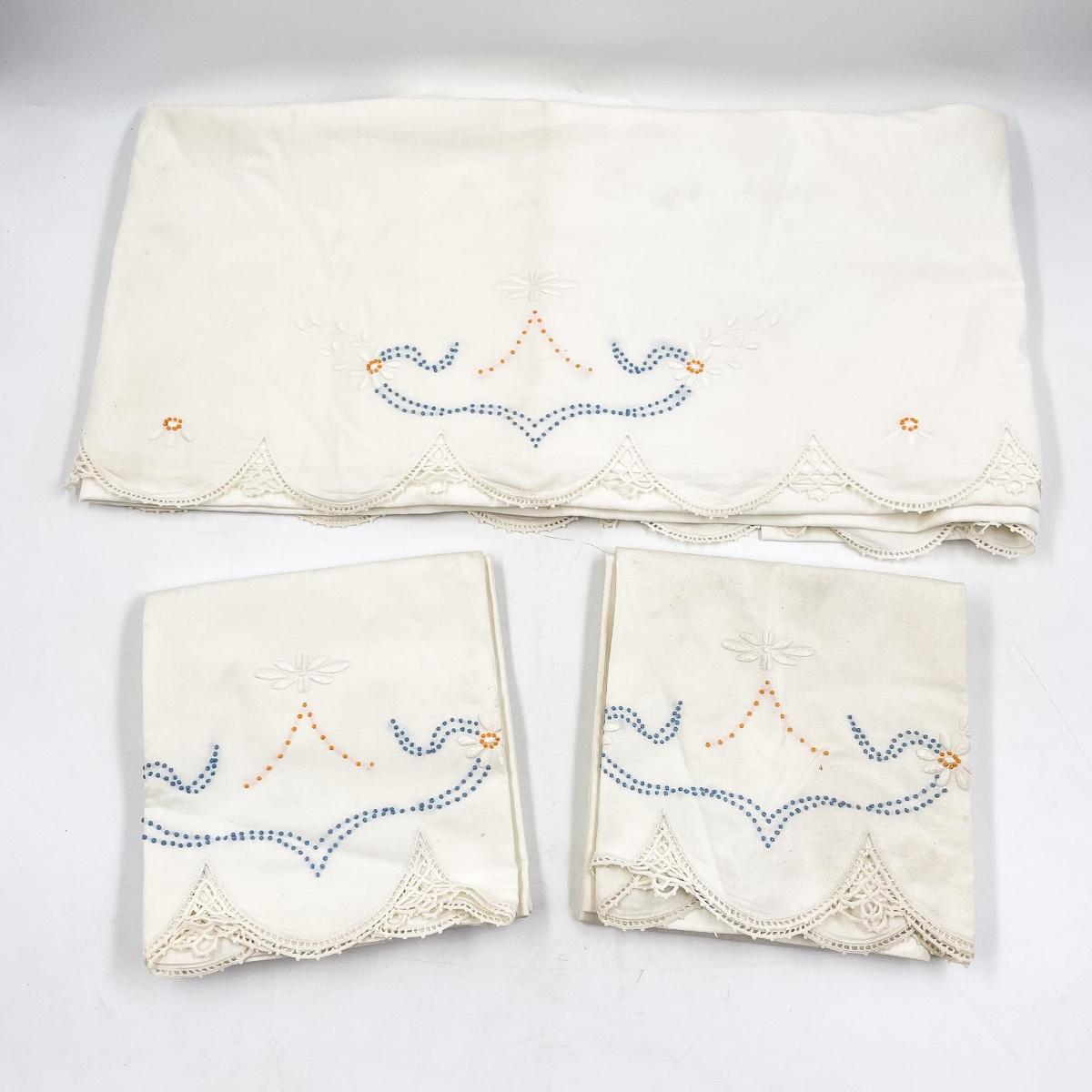 VINTAGE EMBROIDERED PILLOWCASES AND FLAT SHEET