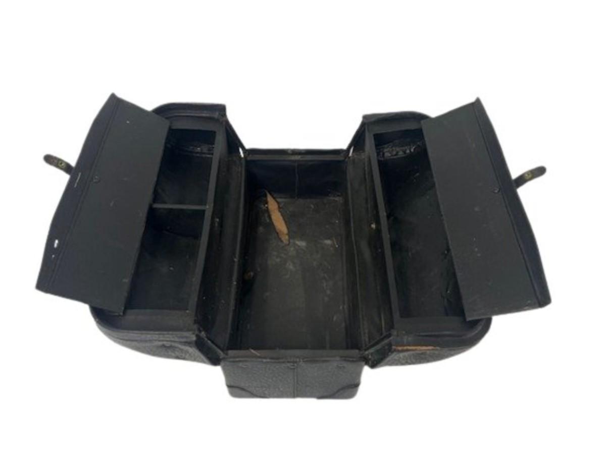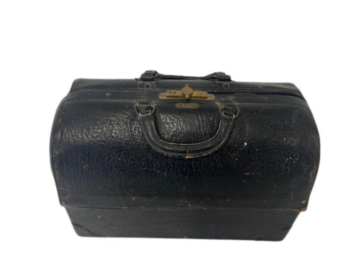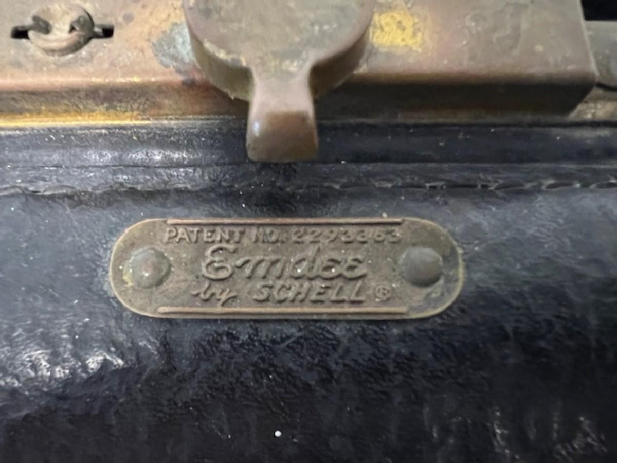Patent #2293363. Durable black cowhide leather. Measurement: 17" x 8" x 12". [KA]