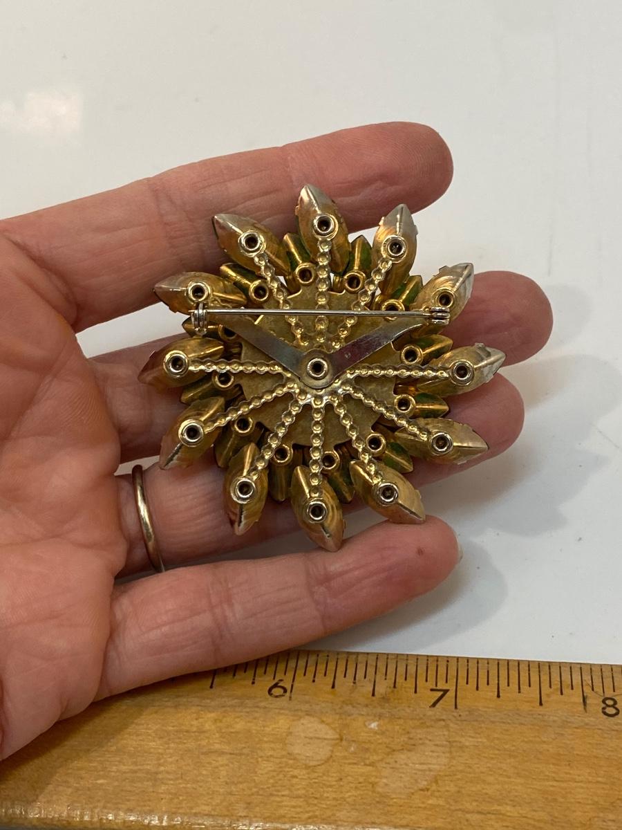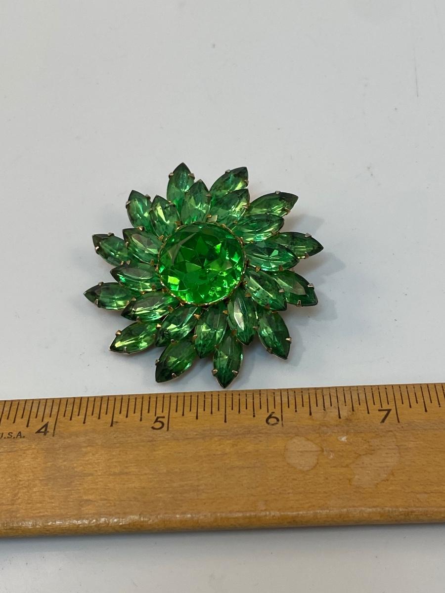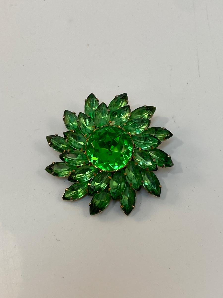 Vintage Emeral Kelly Green Rhinestone Flower Swirl Pin Brooch