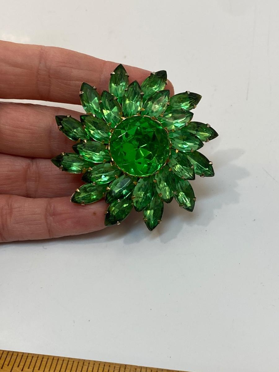 Vintage Emeral Kelly Green Rhinestone Flower Swirl Pin Brooch. Beautiful green rhinestones. Unbranded.